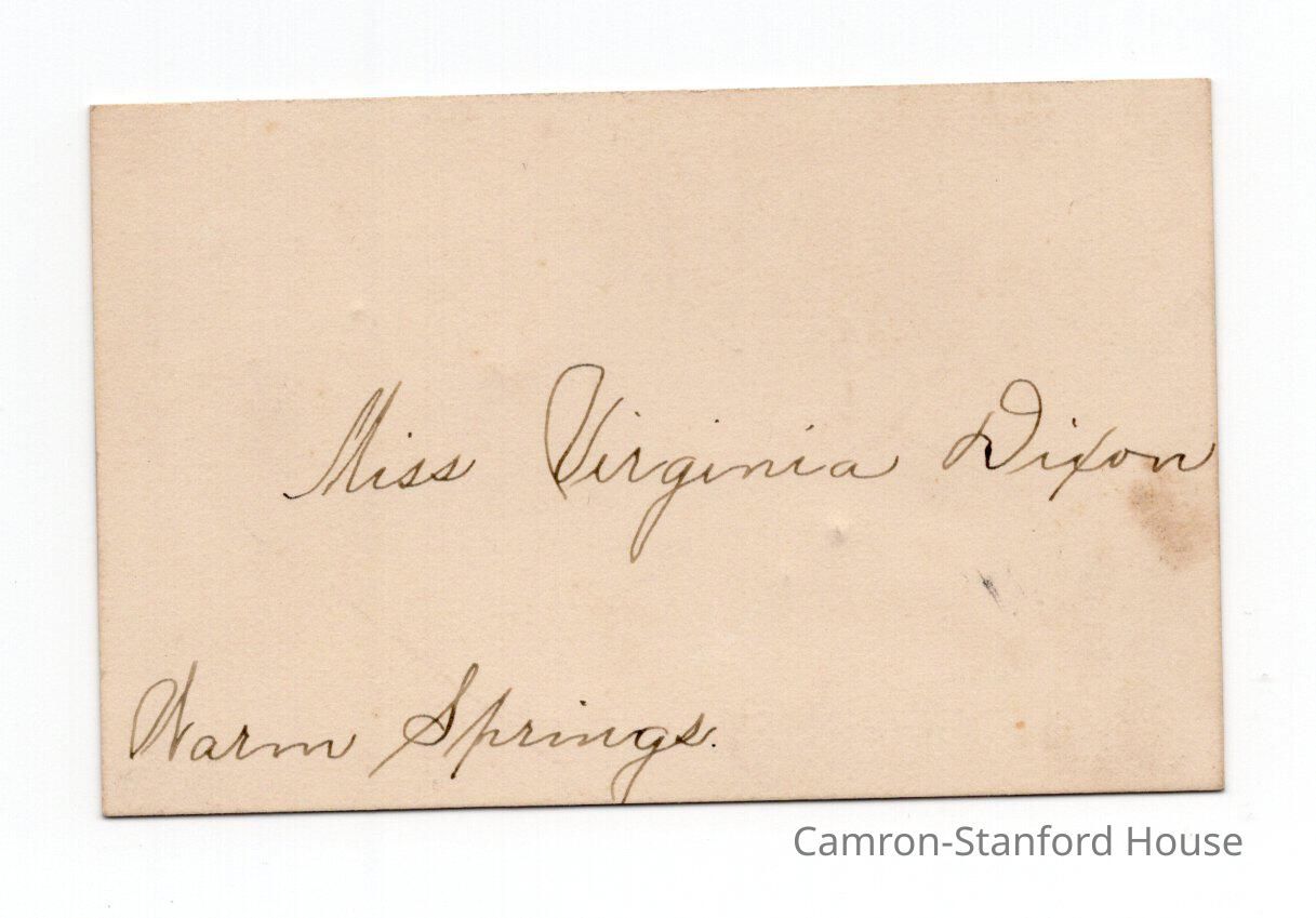 Calling card for Miss Virginia Dixon of Warm Springs.