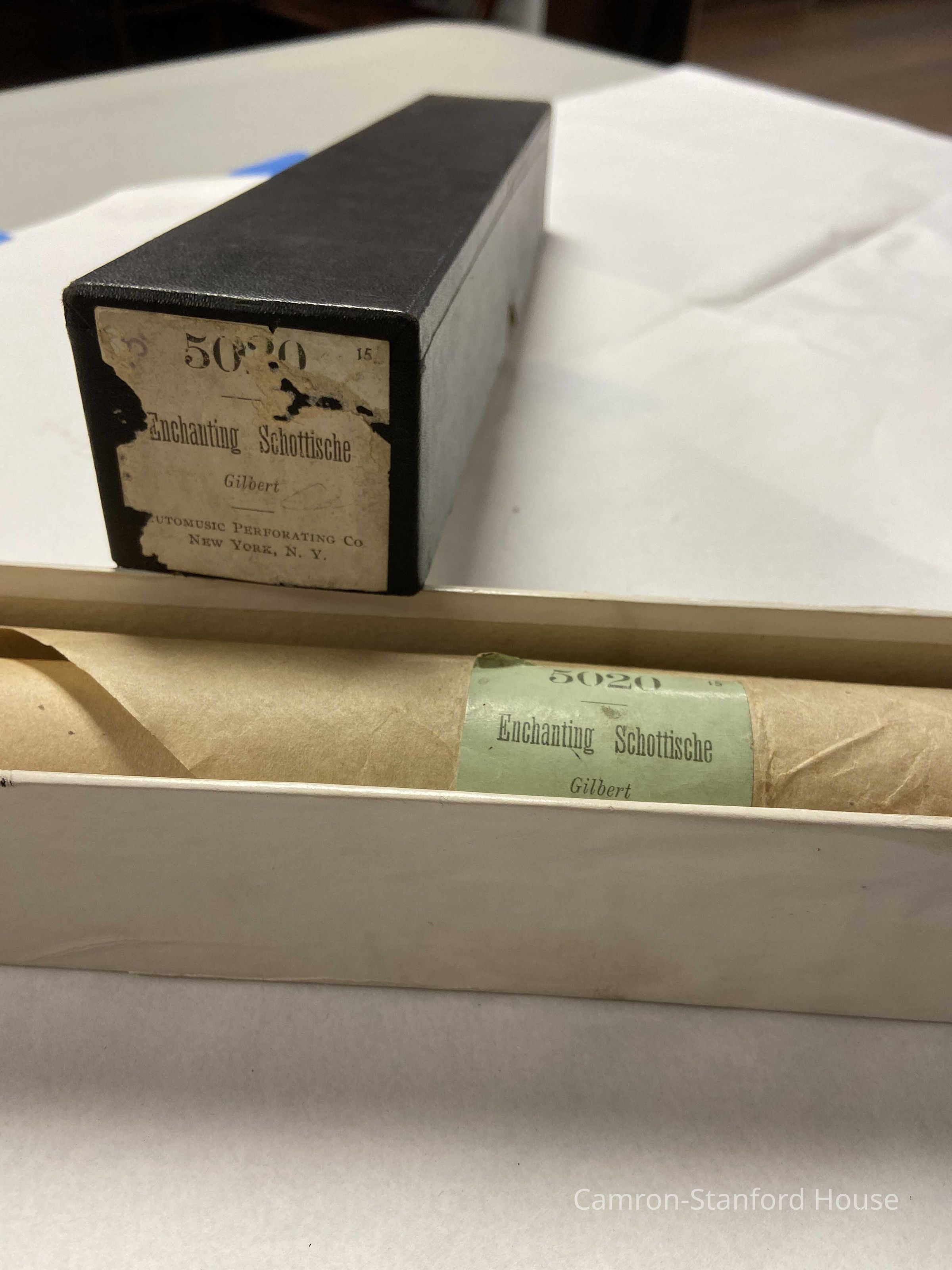 Music roll used with a player piano. Song is titled "Enchanting Schottische""