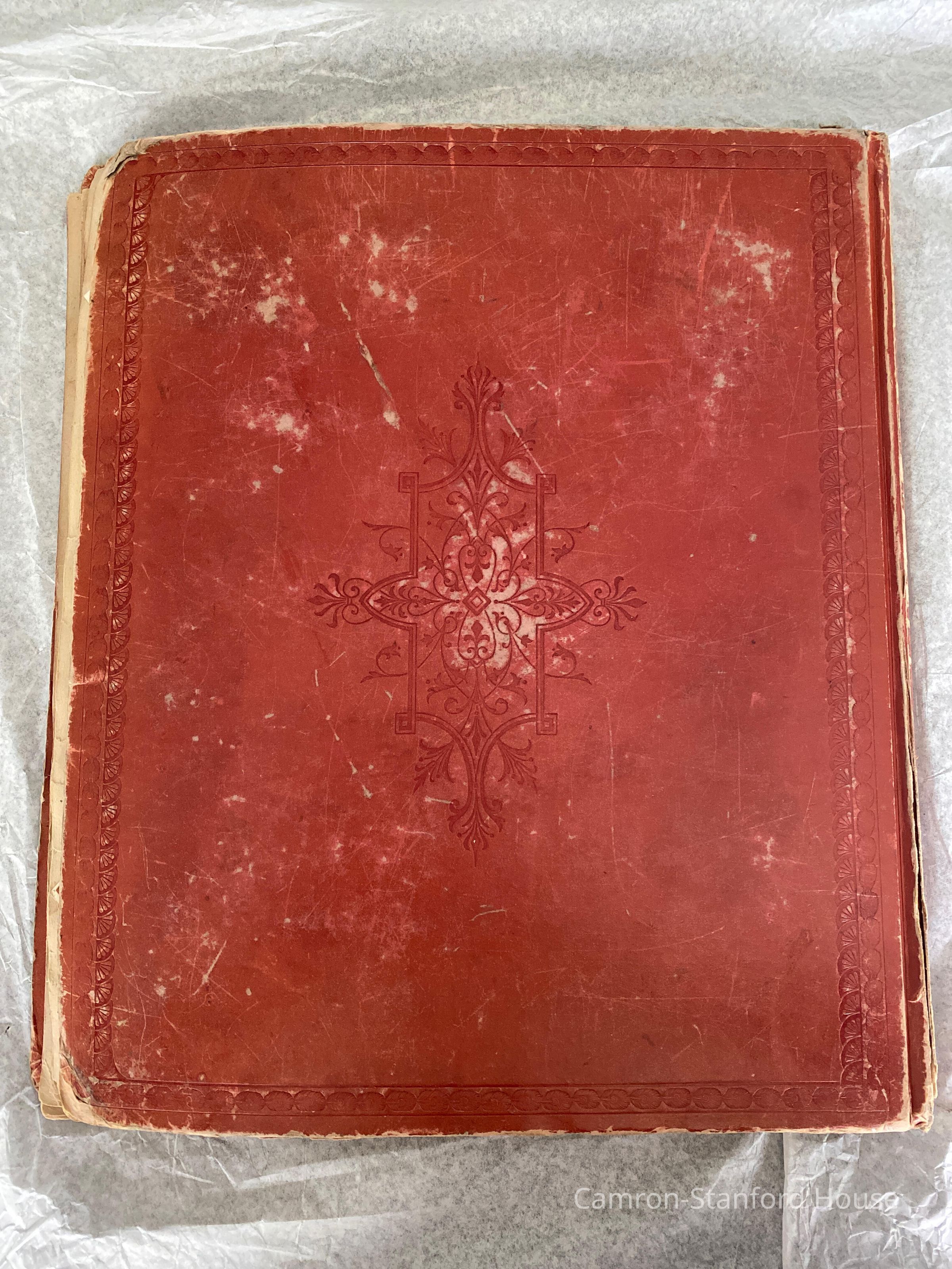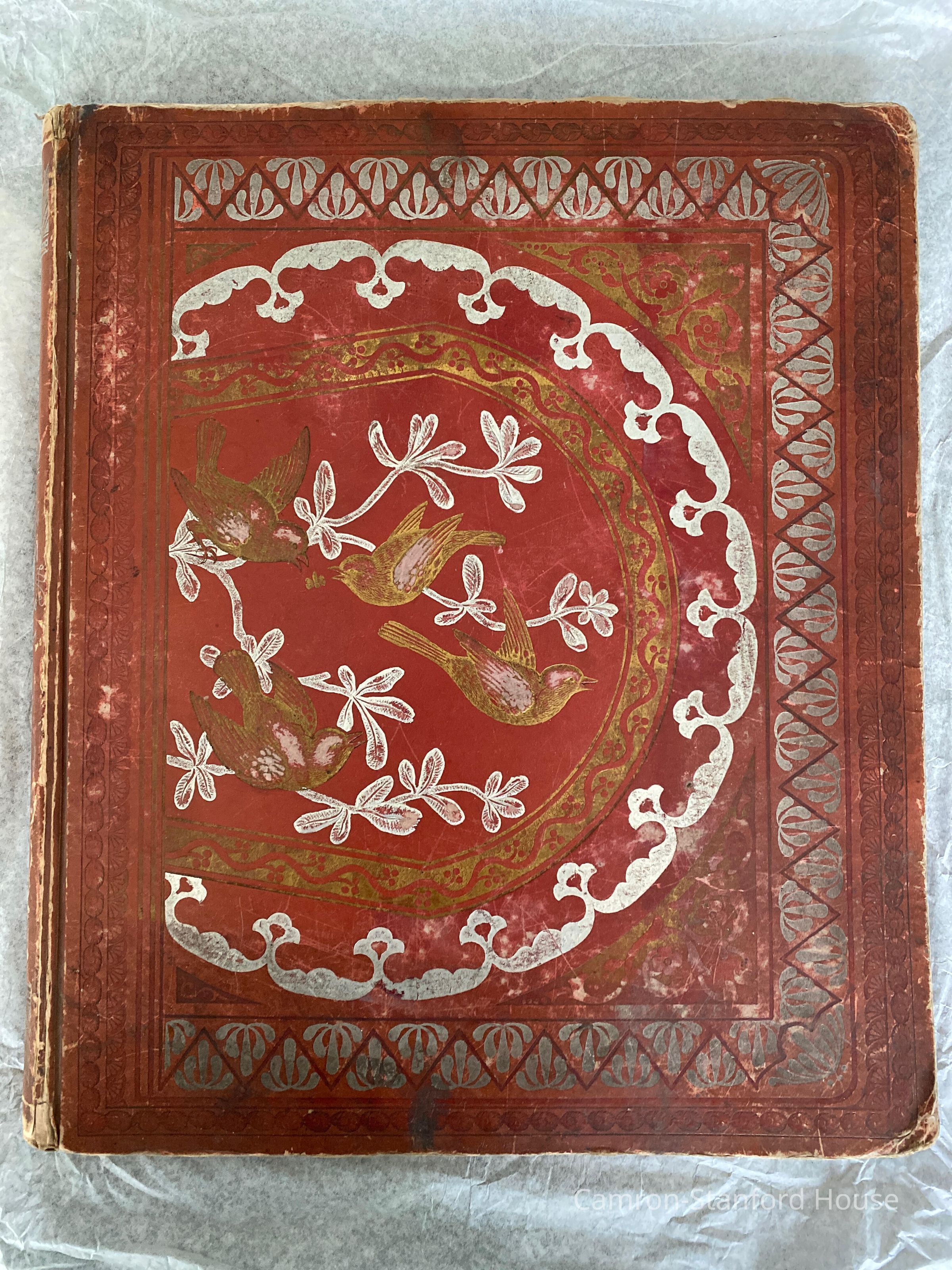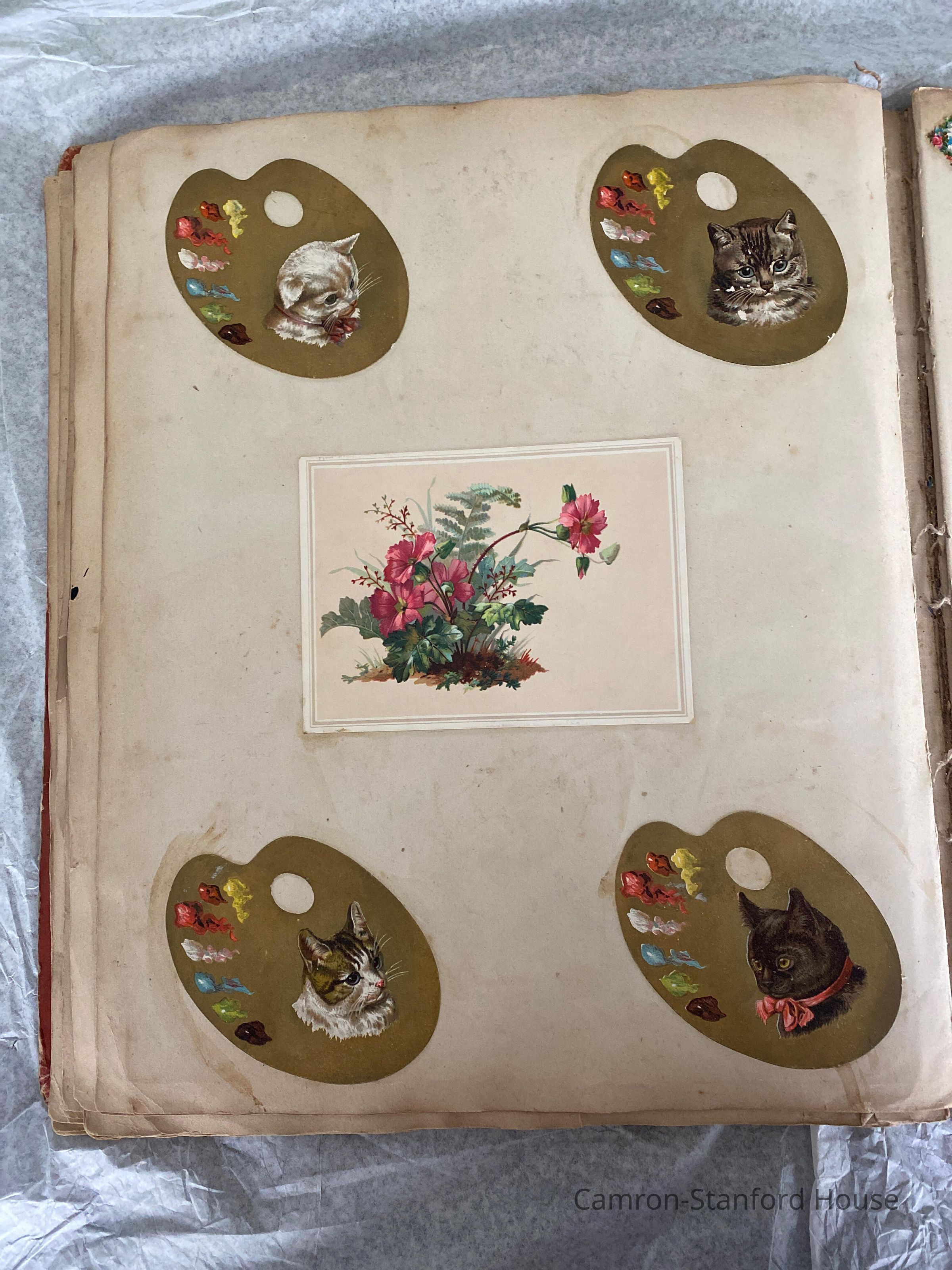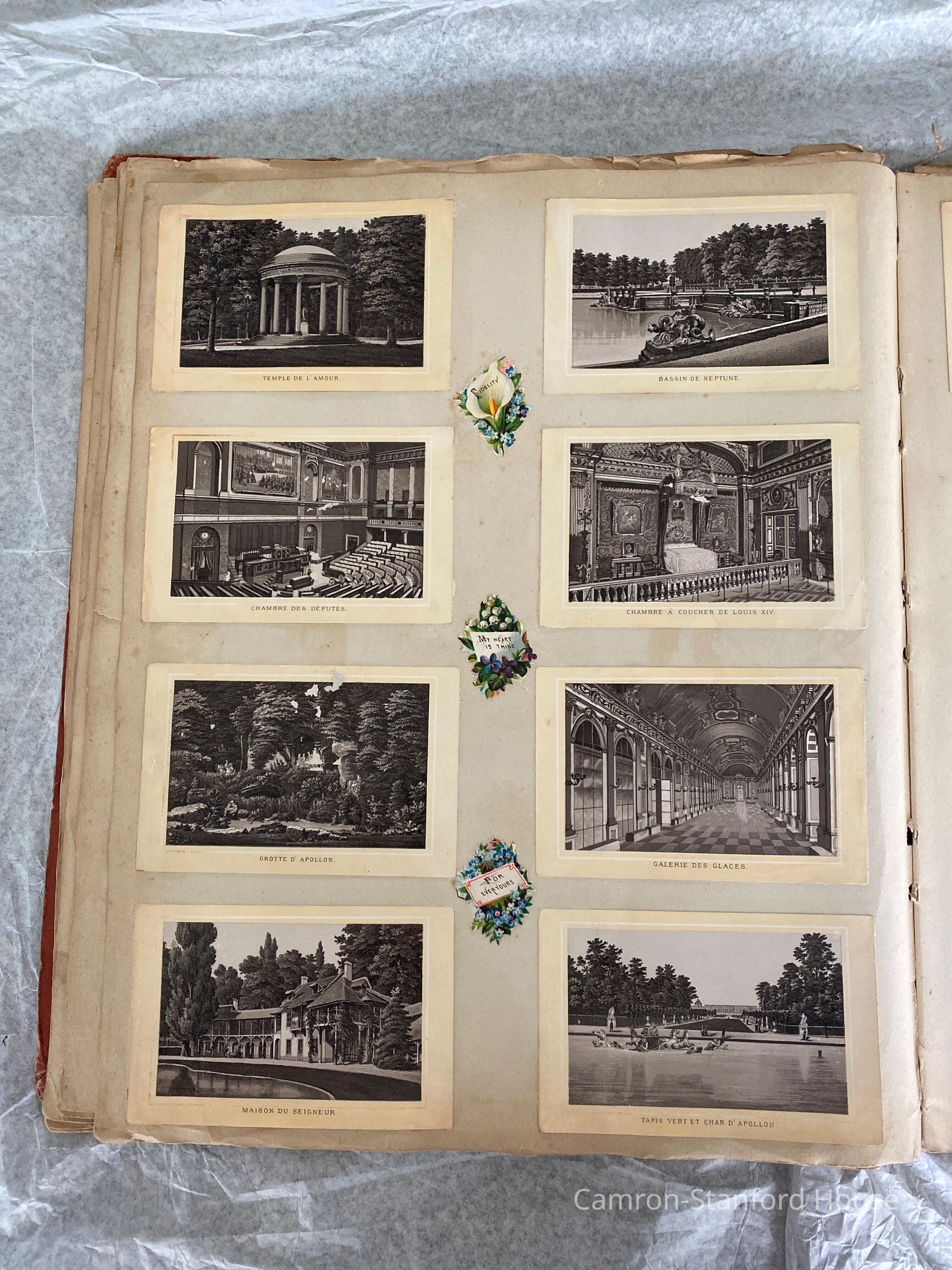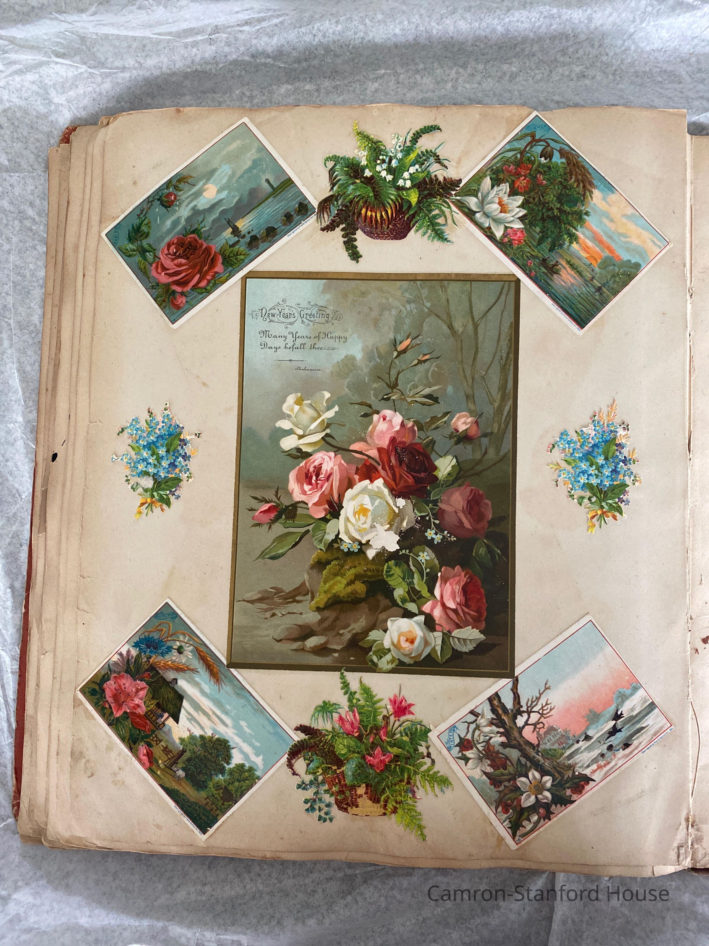 A scrapbook containing over five hundred 19th century trade cards, postcards, and other printed advertisements and ephemera. The majority of the pieces on the pages of this scrapbook are advertisements from San Francisco businesses.