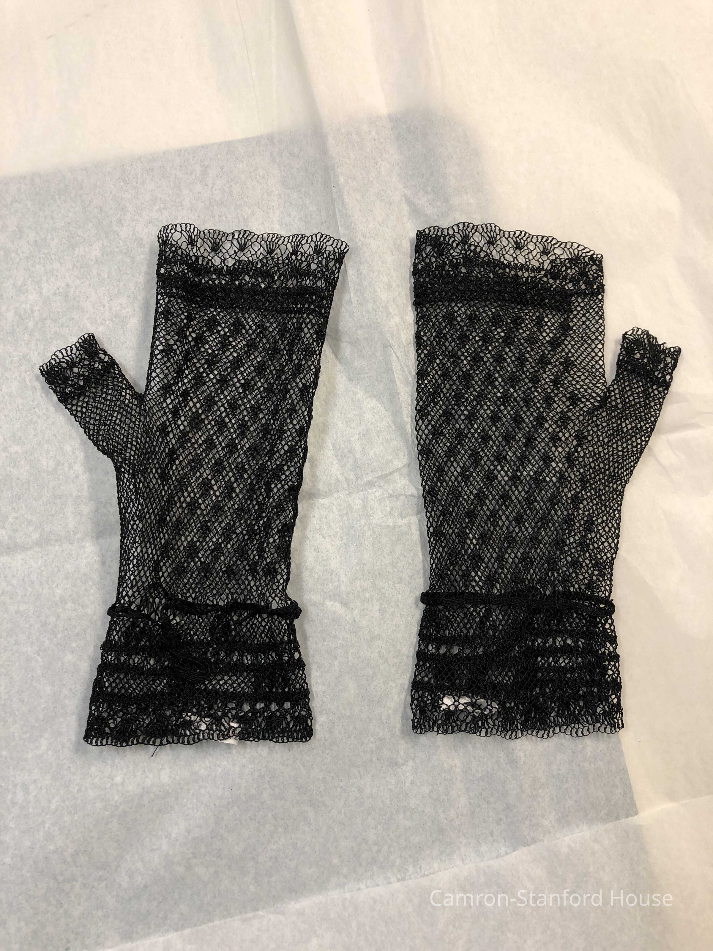 Pair of black lace gauntlets (fingerless gloves), likely owned by Matilda Hewes or Franklina C. Gray (later Bartlett).