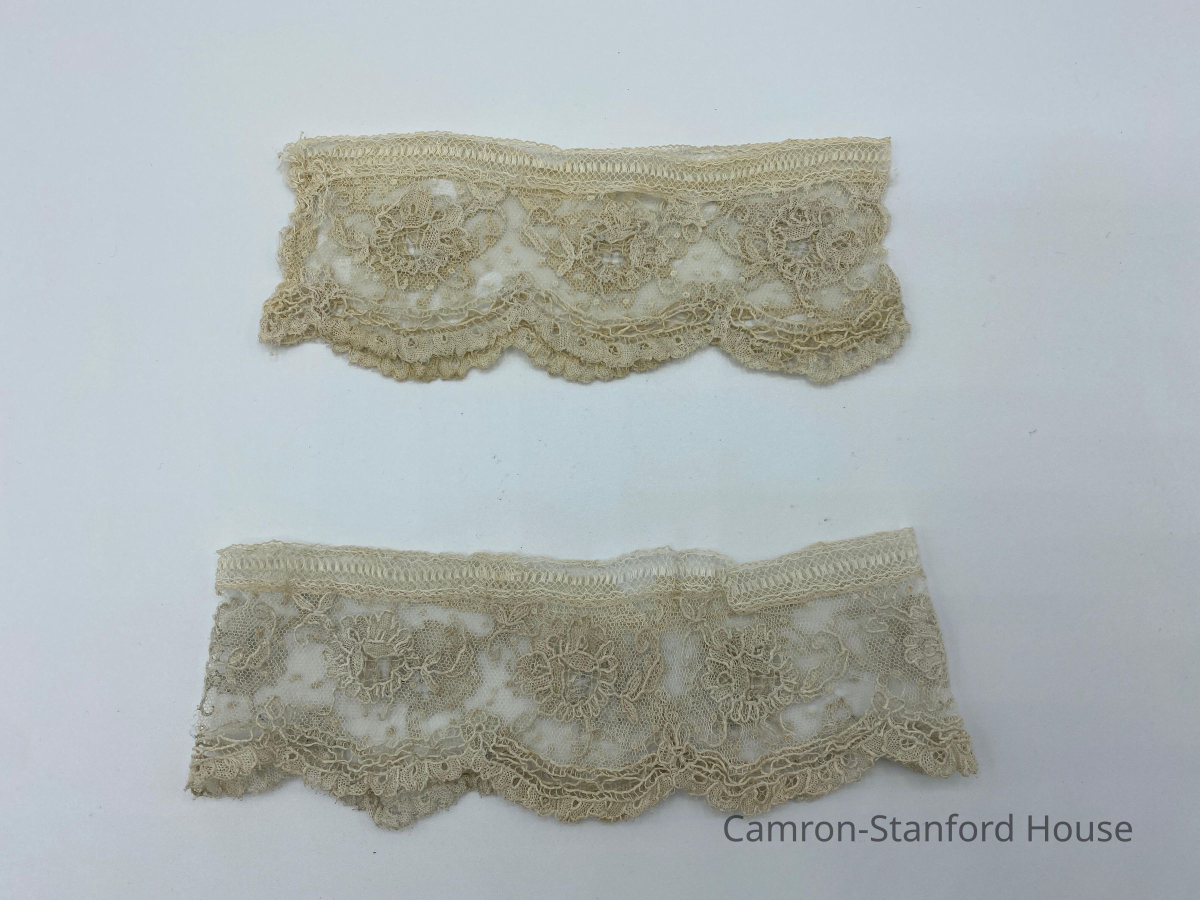 Cream colored lace cuffs. Floral pattern with scalloped edge.