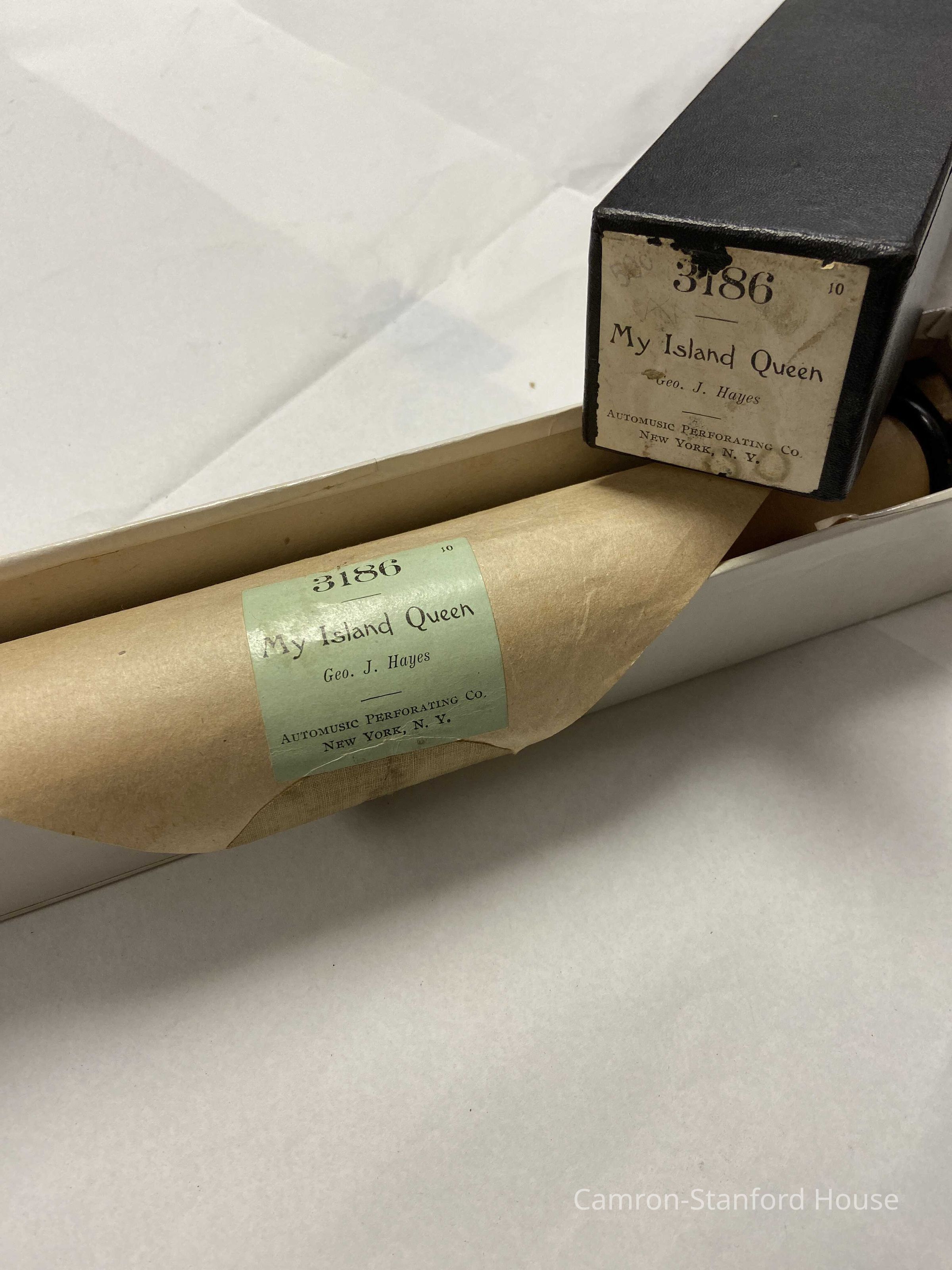 Music roll used with a player piano. Song is titled "My Island Queen"
