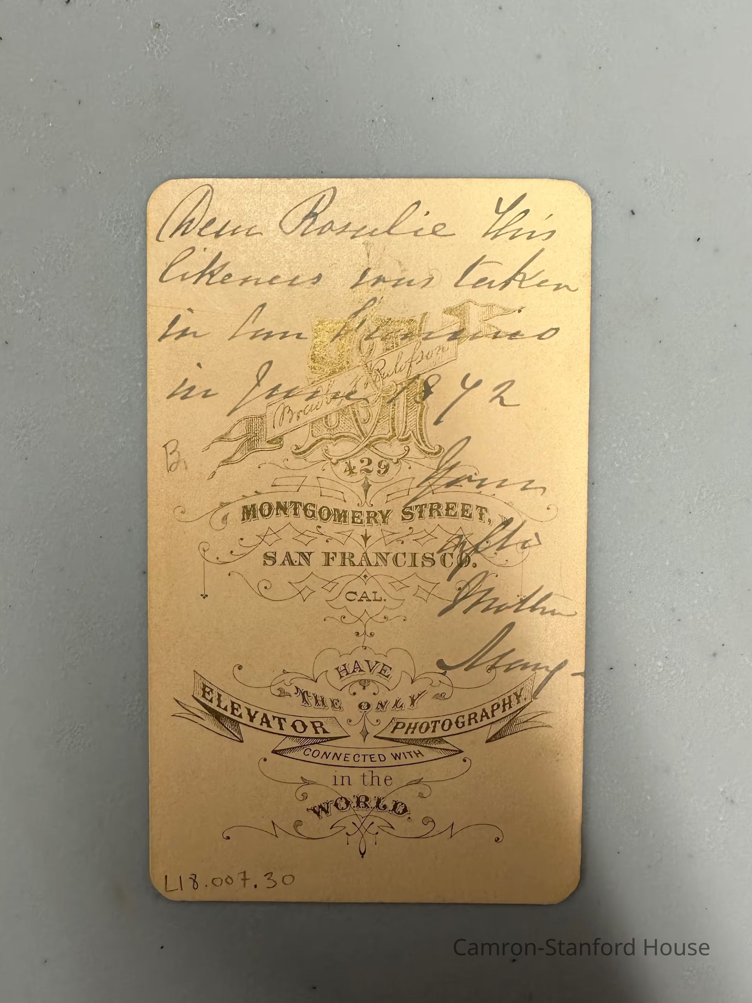 Dear Rosalie this likeness was taken in San Francisco in June 1872. [Illegible] after Mother Mary