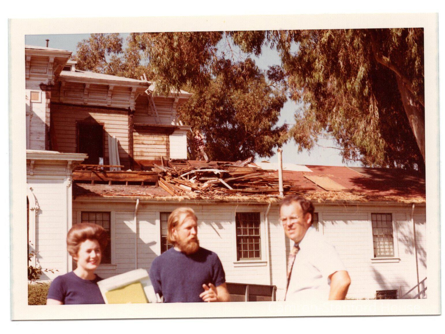 Board members Frankie Rhodes (L), Richard Ehienberger (m), and Bill Shaw (r) before 1973 demolition and painting. The Public Museum's rear addition is still visible.
