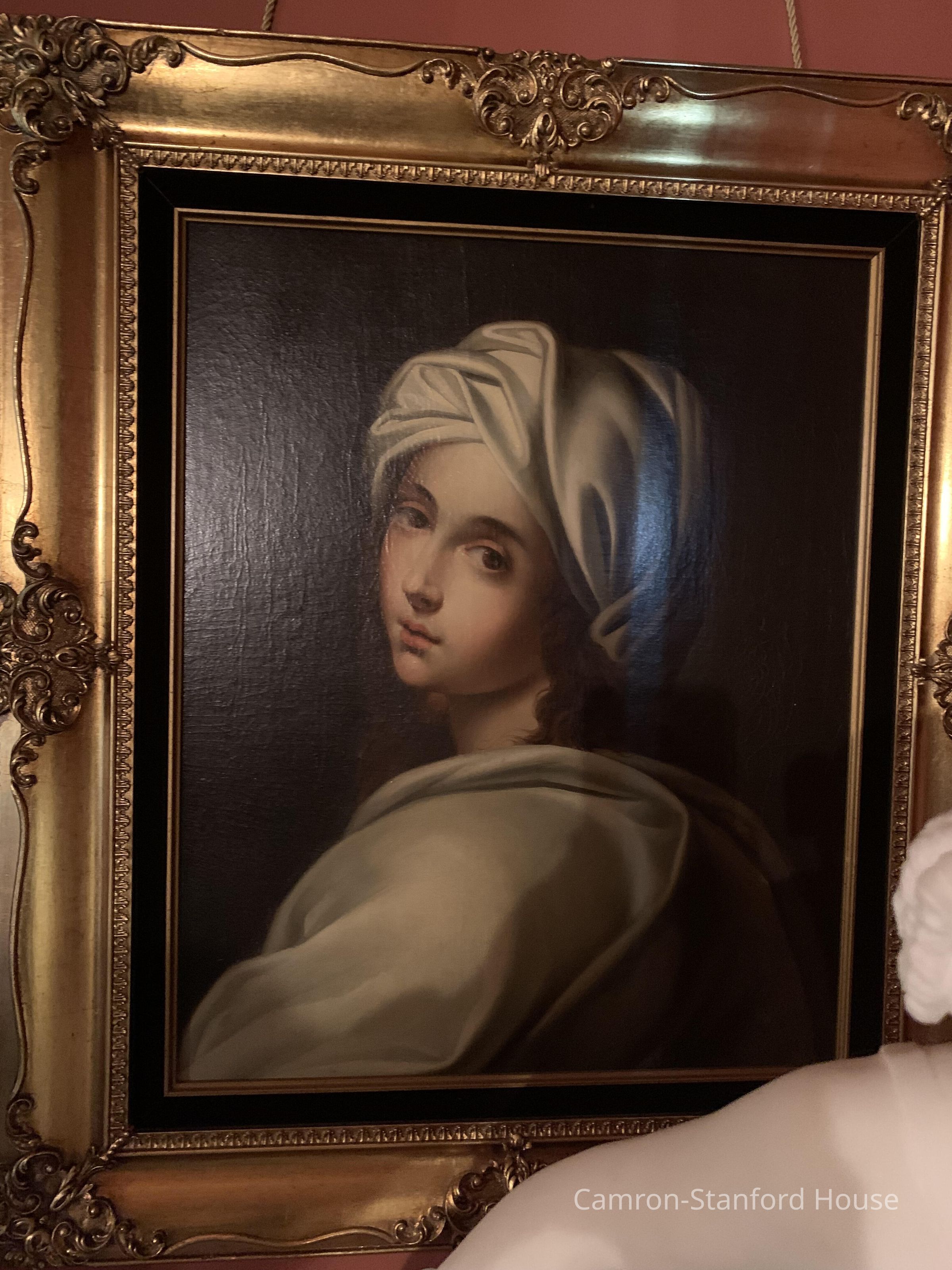 Portrait of Beatrice Cenci. This painting is a copy of the original by Ginevra Cantofoli. The original was once attributed to Guido Reni. The painting was collected during the Hewes party Grand Tour of Europe 1875-1877.