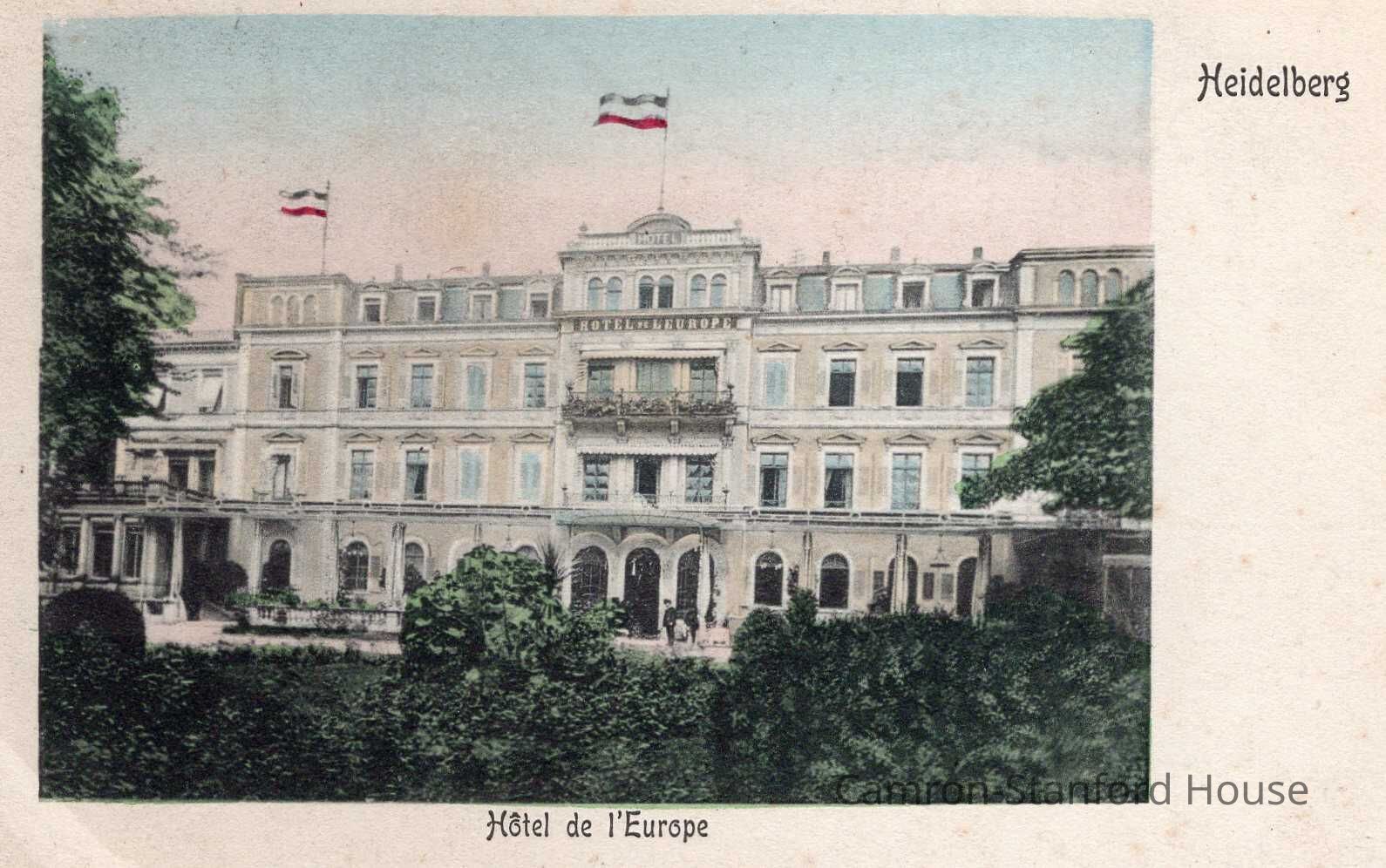 Color postcard with image of Hotel de l'Europe in Heidelberg.