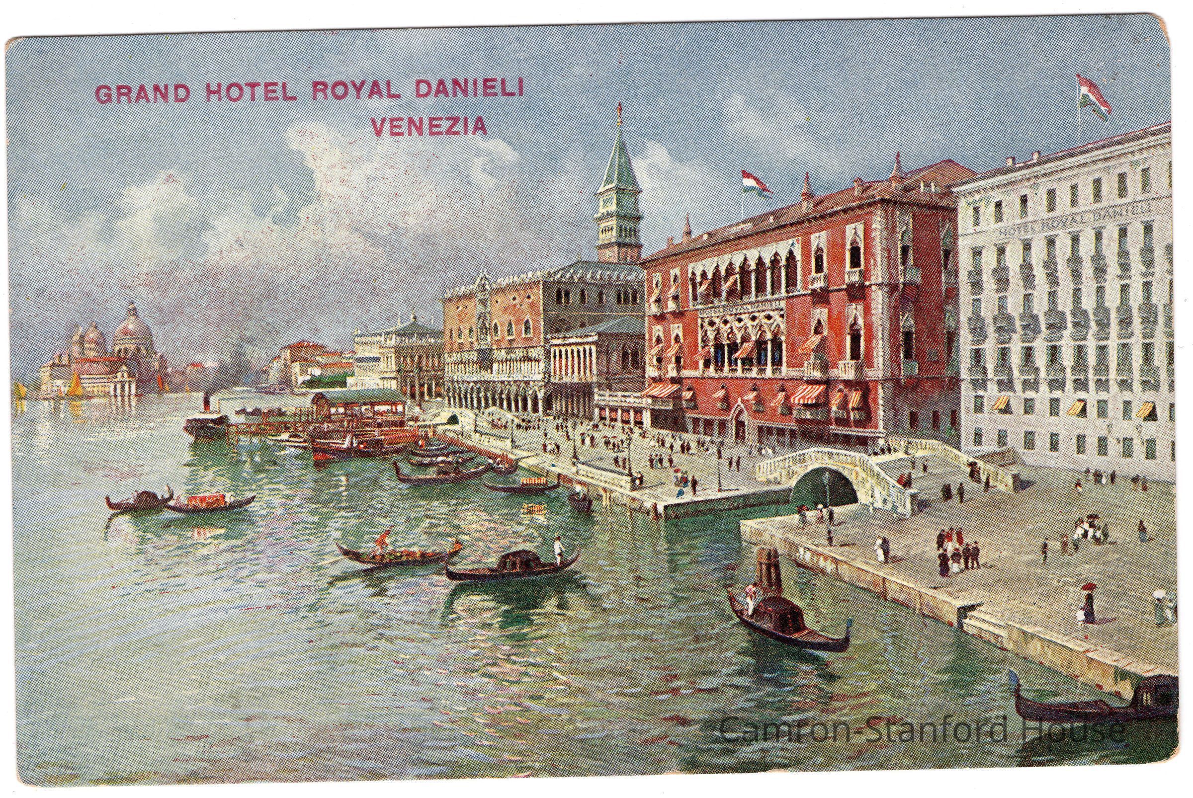 Postcard from Hotel Royal Danieli Venezia, showing a scene from Venice waterfront.