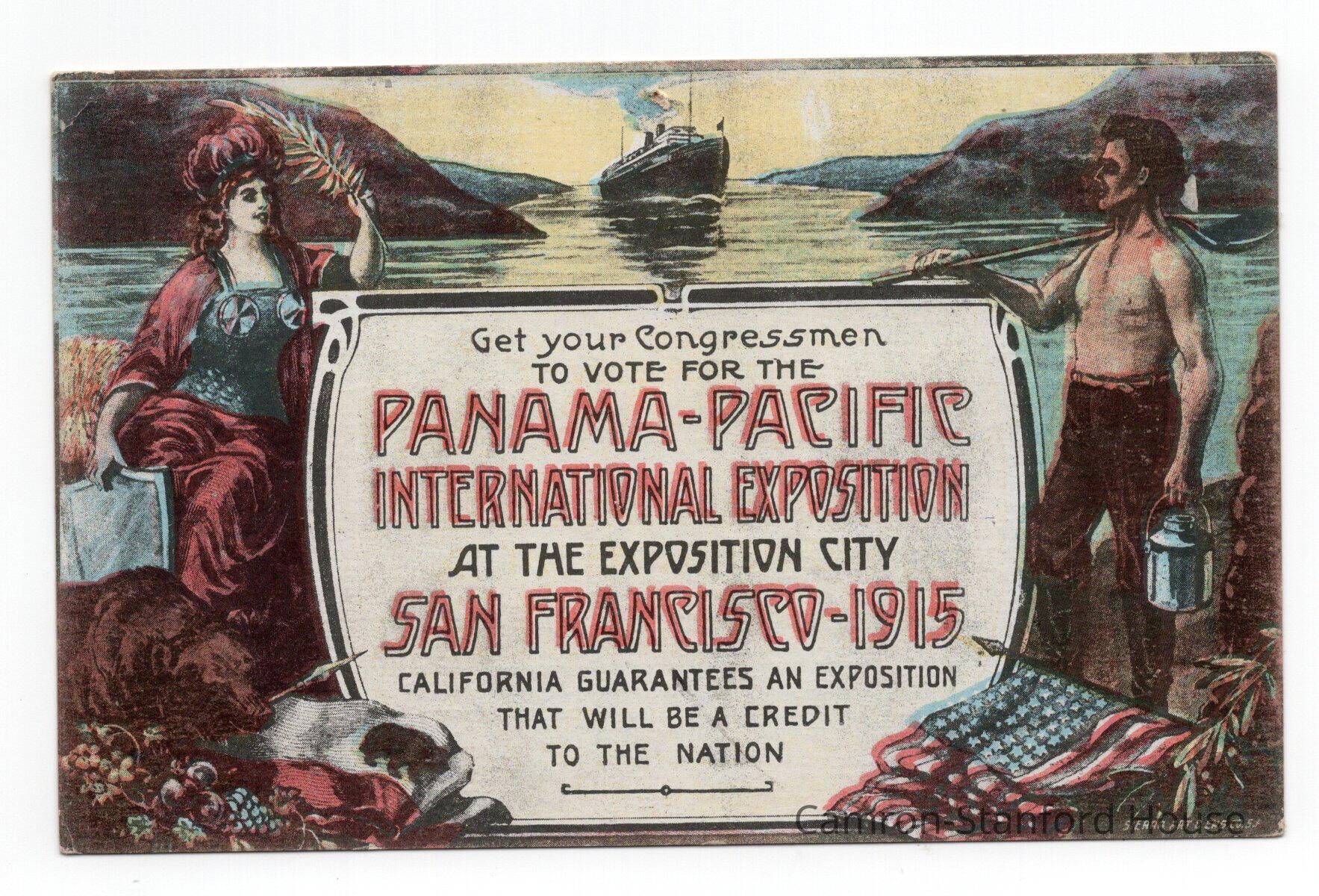 Postcard encouraging recipients to urge their congressperson to vote in favor of hosting the 1915 Panama Pacific International Exposition in San Francisco.