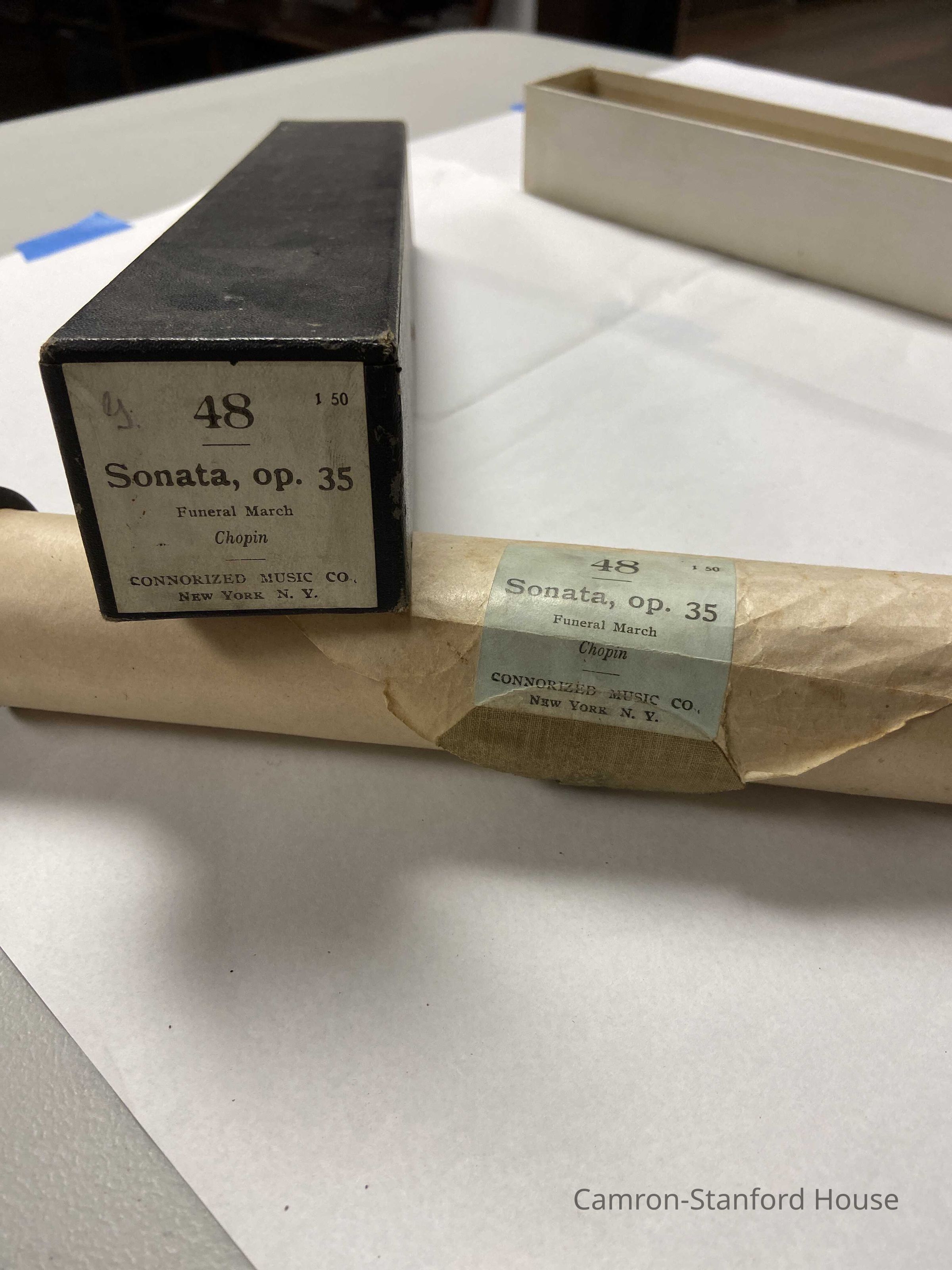 Music roll used with a player piano. Song is titled "Sonata, op 35"