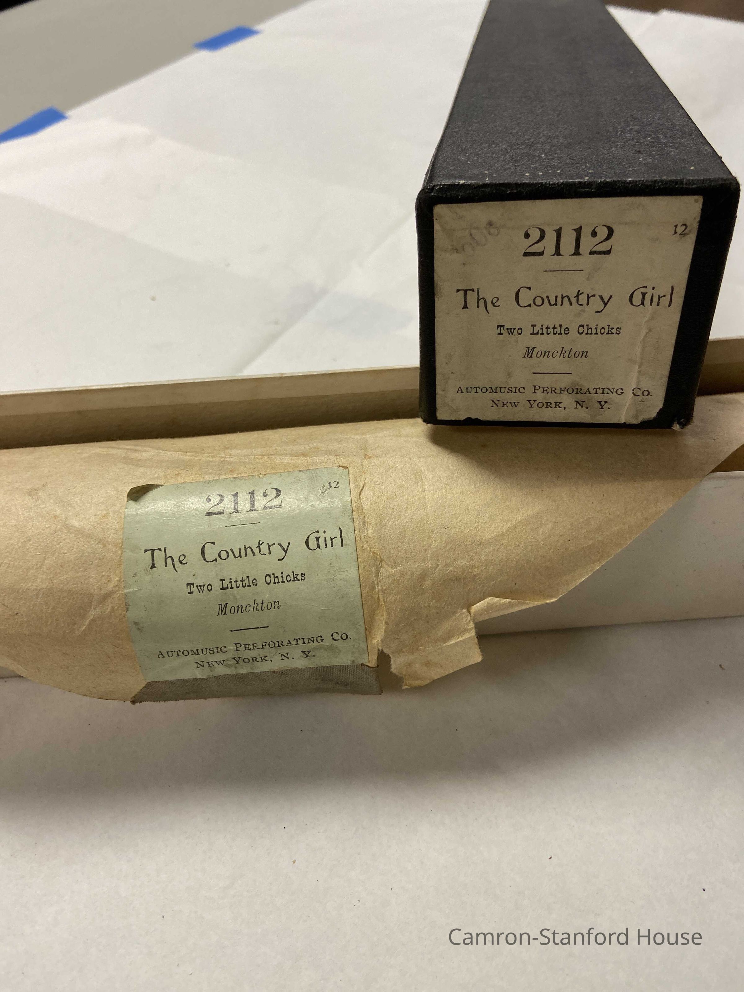Music roll used with a player piano. Song is titled "Country Girl (Two Little Chicks)"