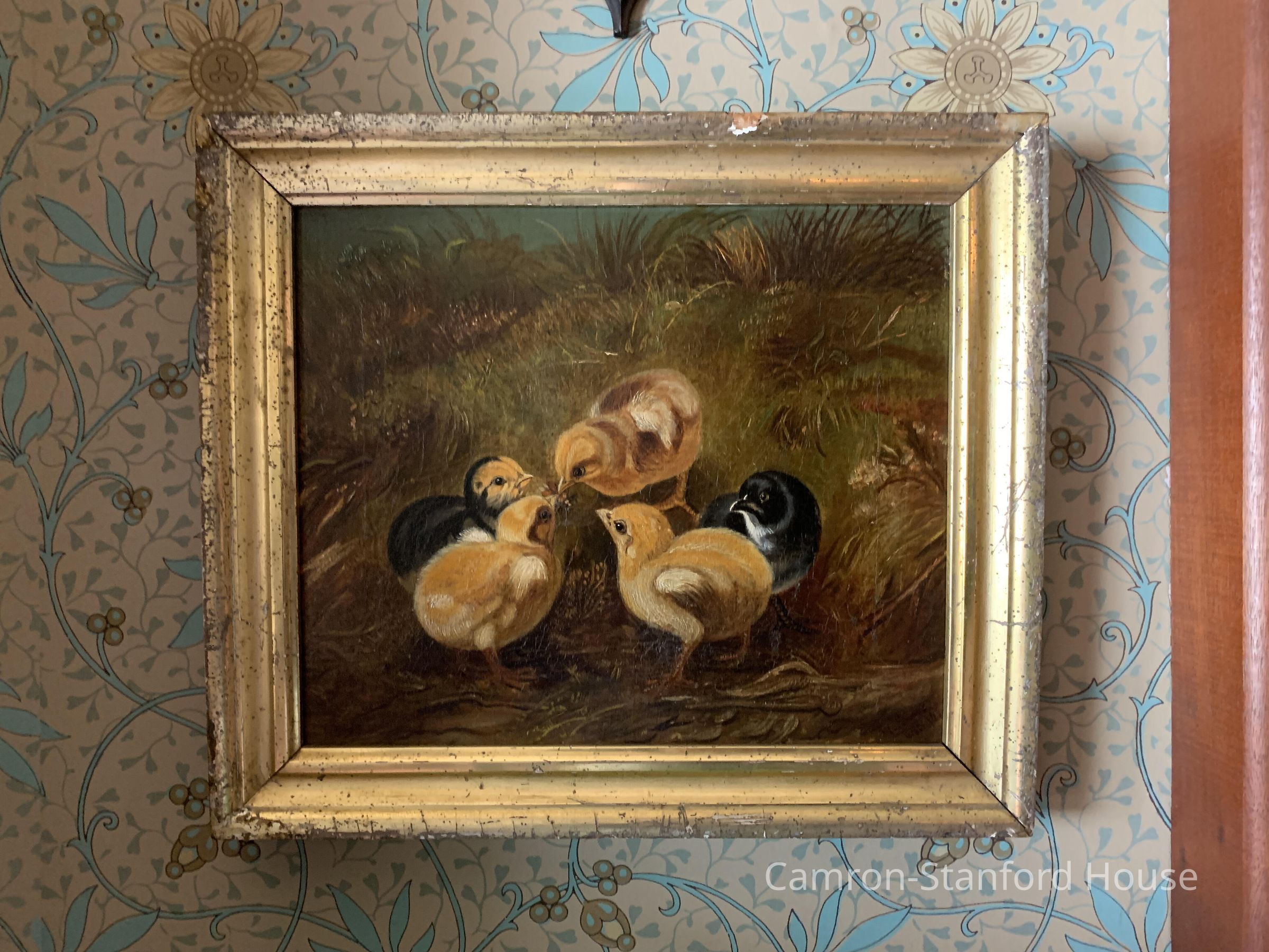 Small painting of five chicks.