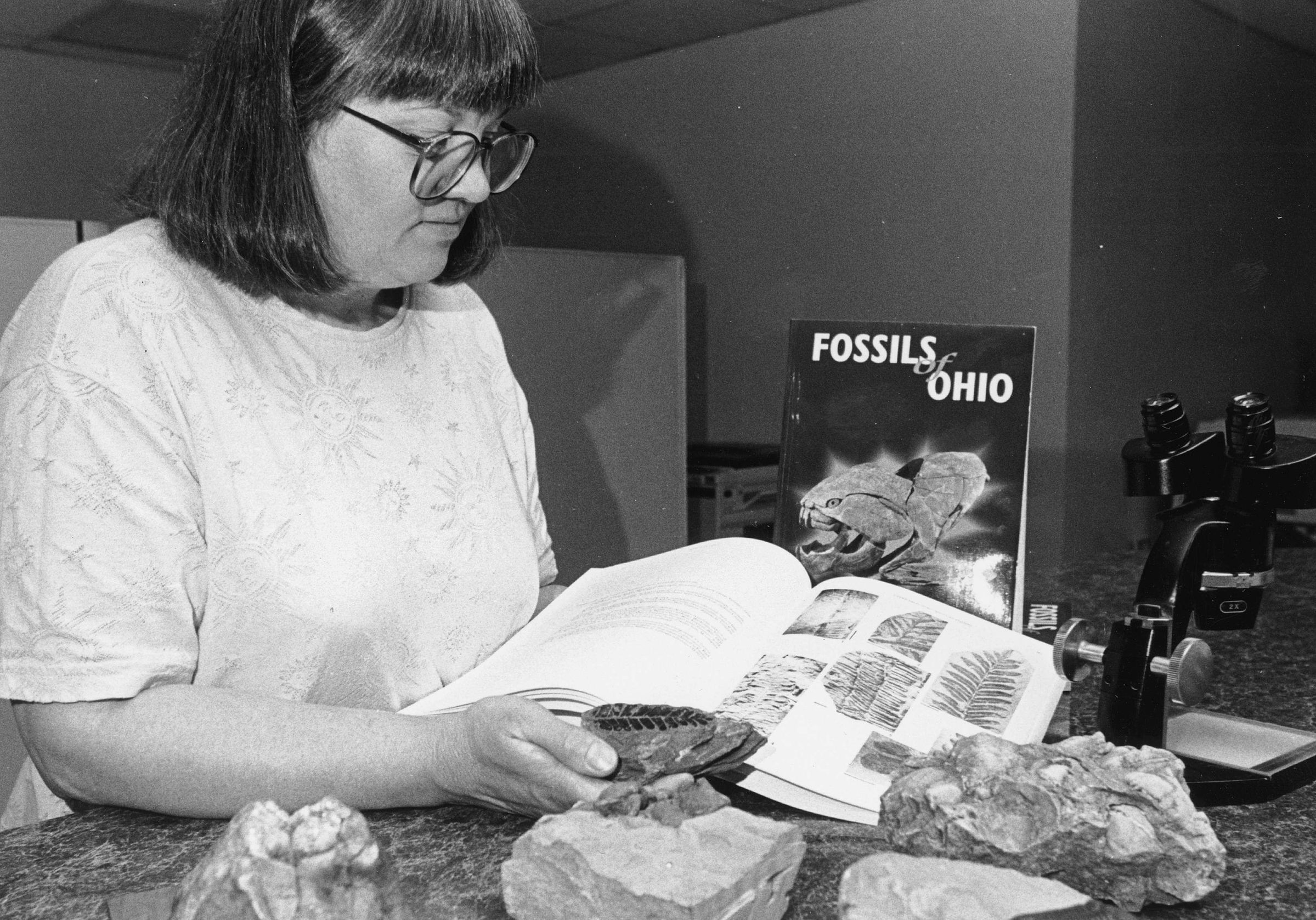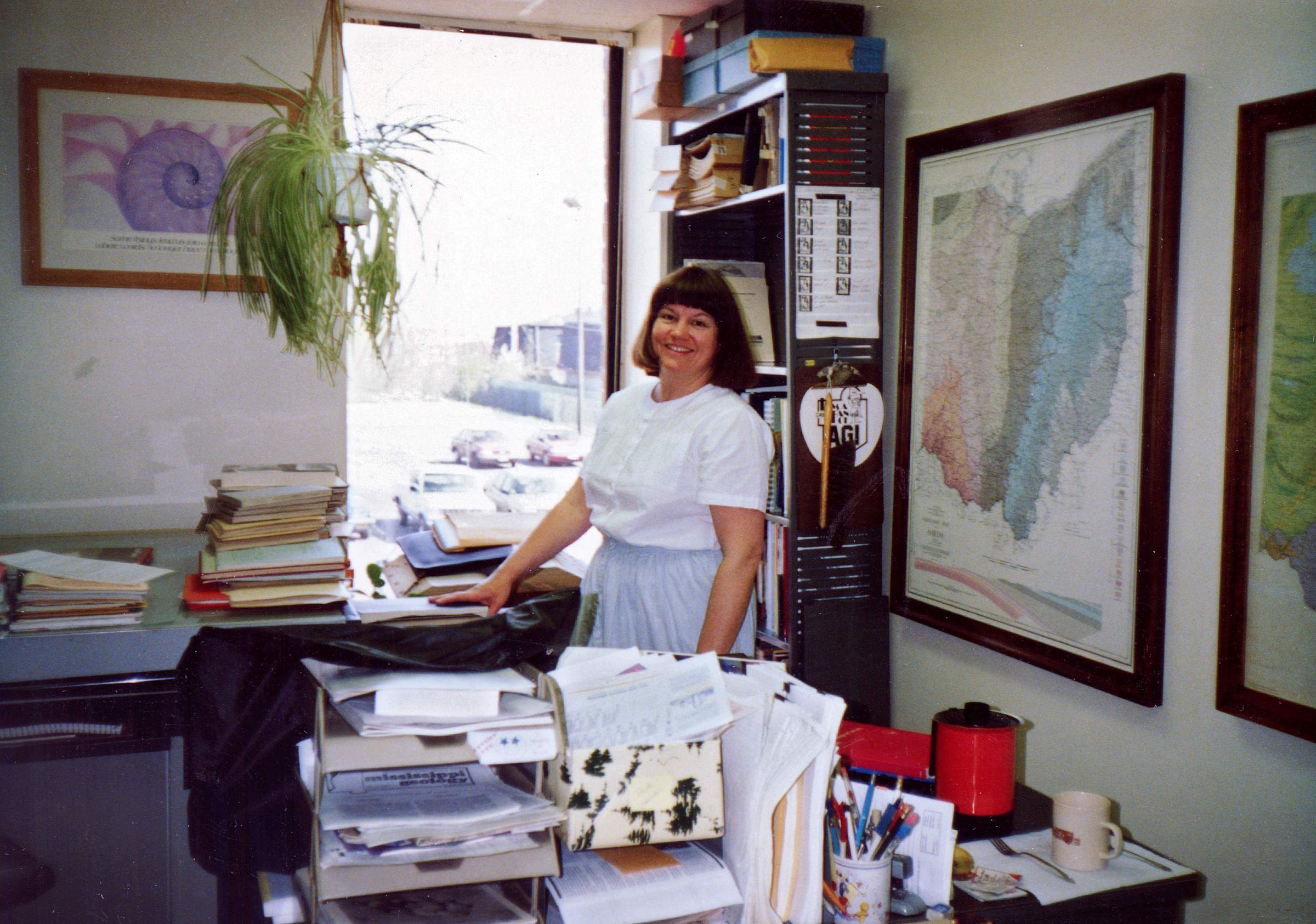 She was promoted to editor in 1978. During her time as editor, she contributed to a large number of Survey publications, maps, posters, abstracts, and papers, including Fossils of Ohio and the first edition of Minerals of Ohio.