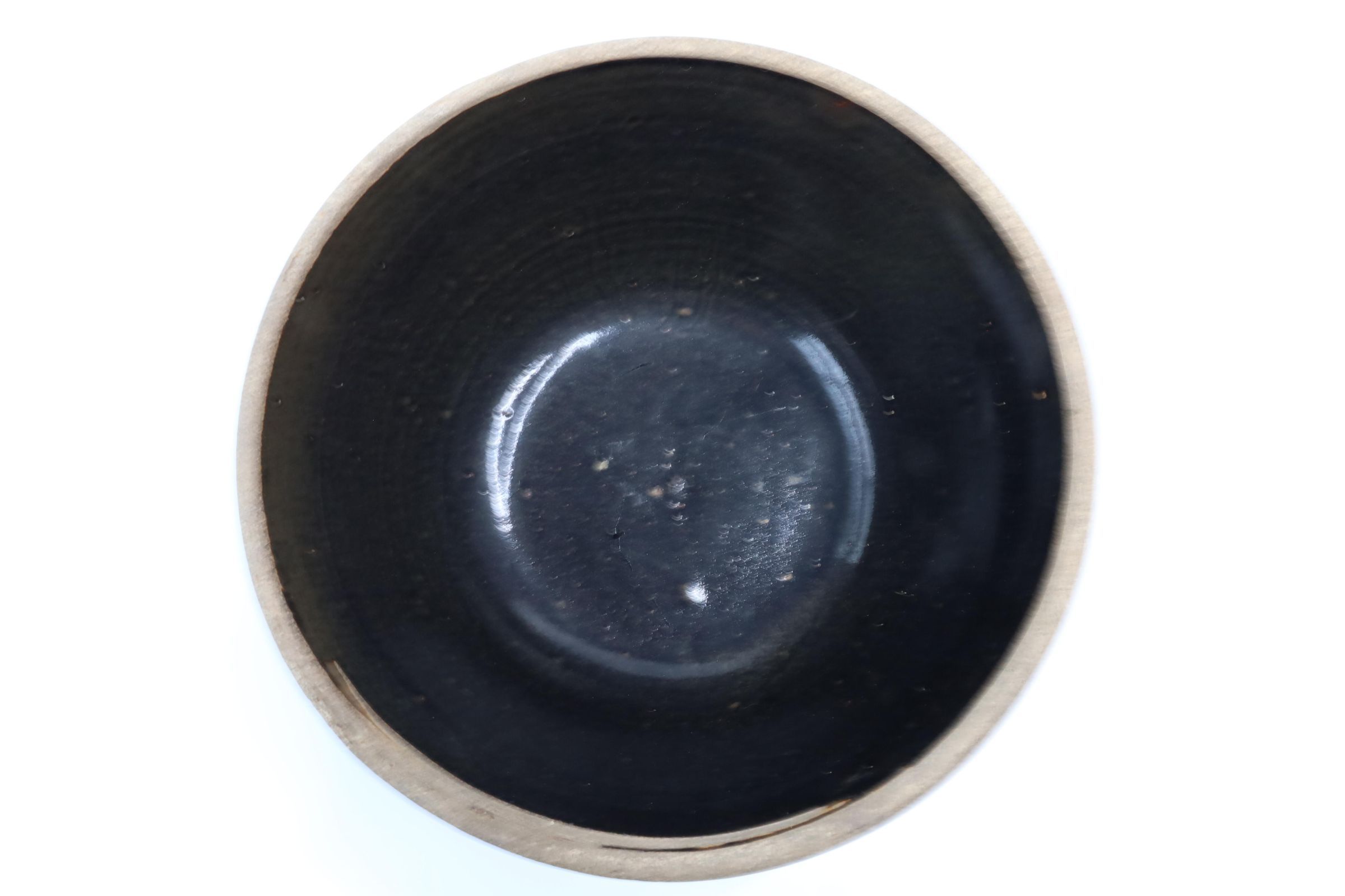 This 8-inch brown glazed wide-band raised bottom crock pottery shows luminous colors that change when seen from different angles.