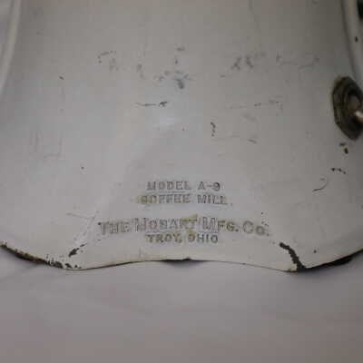 Discontinued in 1947, Hobart Manufacturing Company manufactured the KitchenAid Model A-9 coffee mill in Troy, Ohio. KitchenAid mills were the height of the market in the 1930s and 1940s. The A-10, a similar model to this one, is considered the first home coffee mill on the market.Location