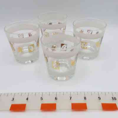 Set of four E-Z Por golden frost pattern glasses. The glasses feature both frosted sections and a gold leaf design.