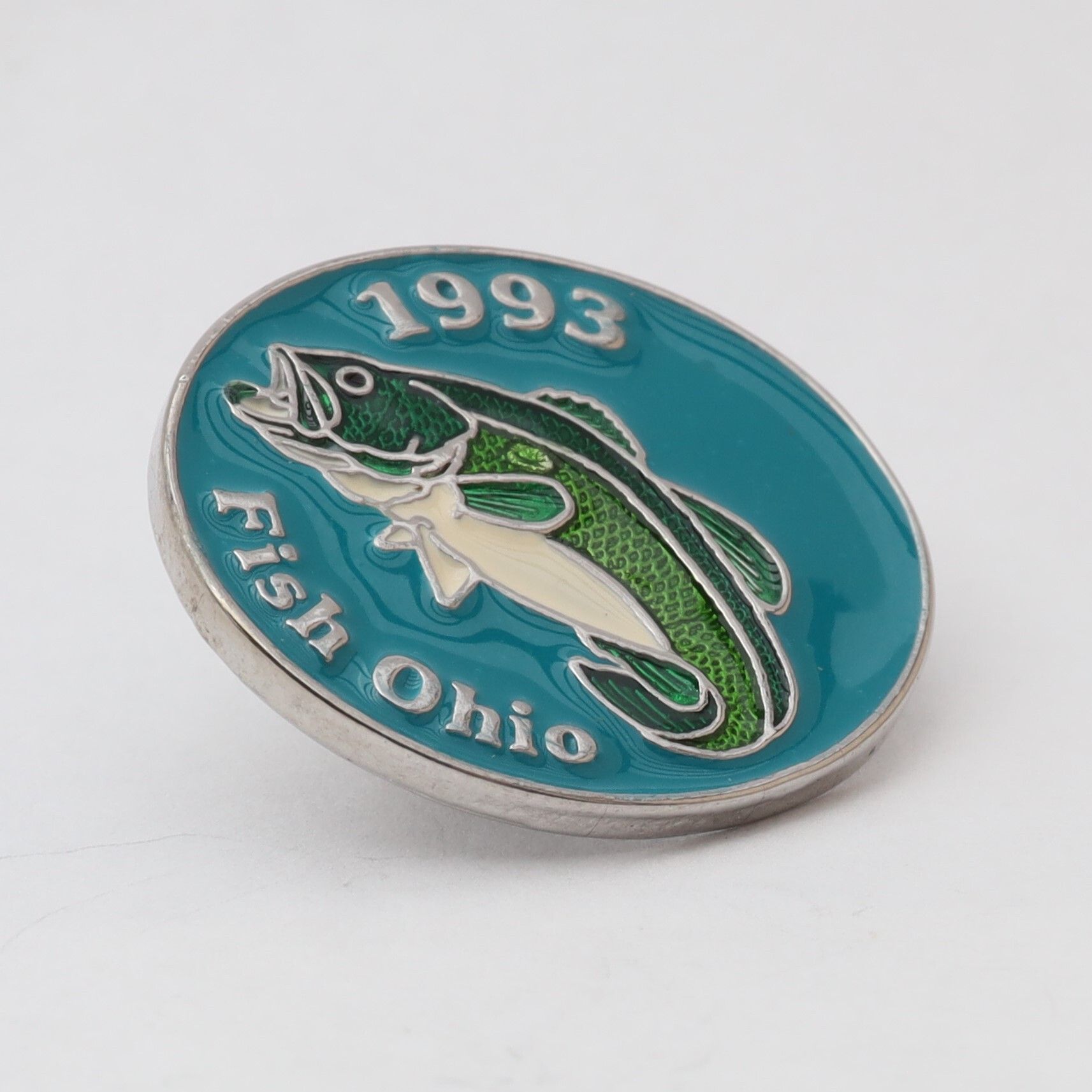 Prototype of the 1993 Fish Ohio pin featuring largemouth bass.Context