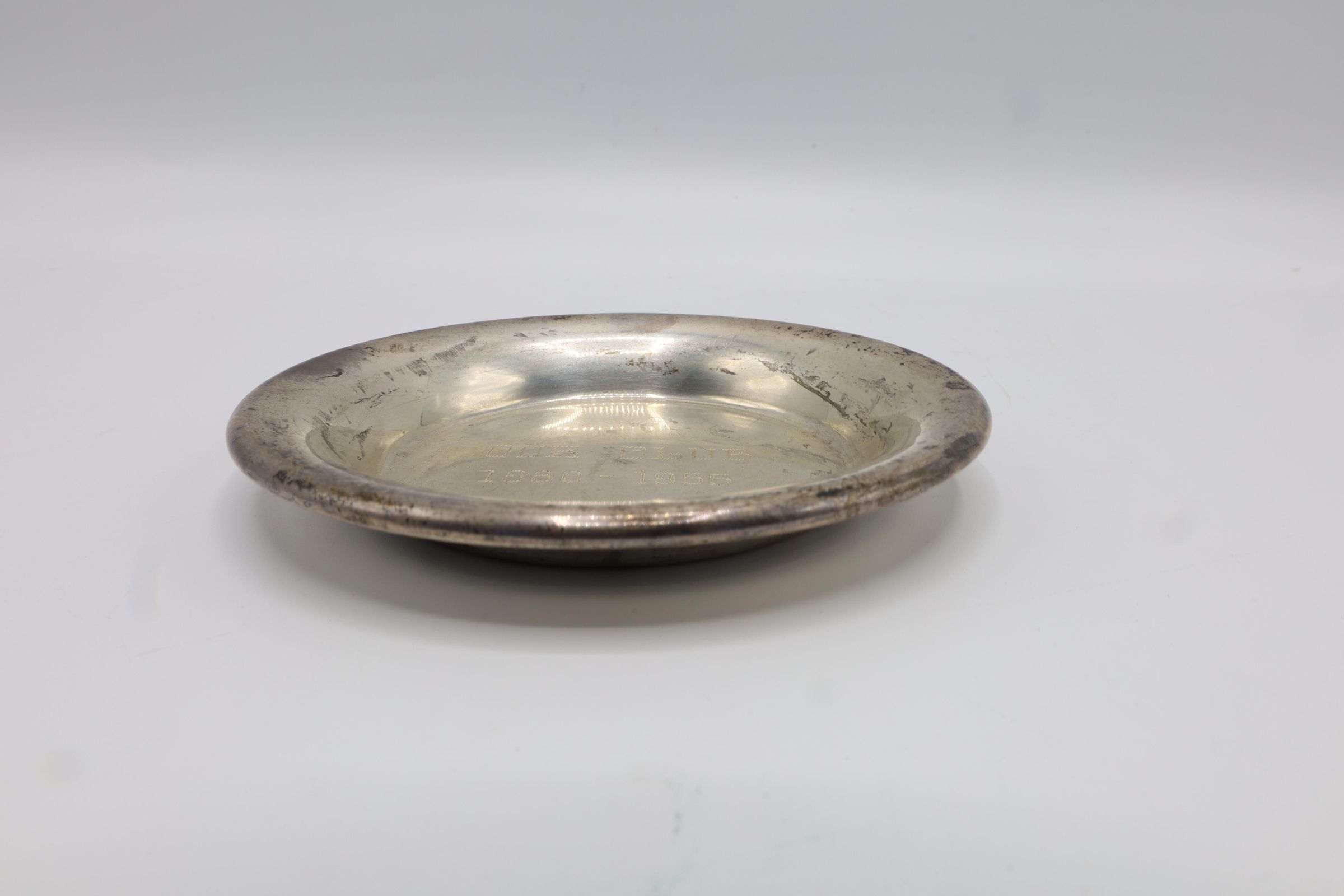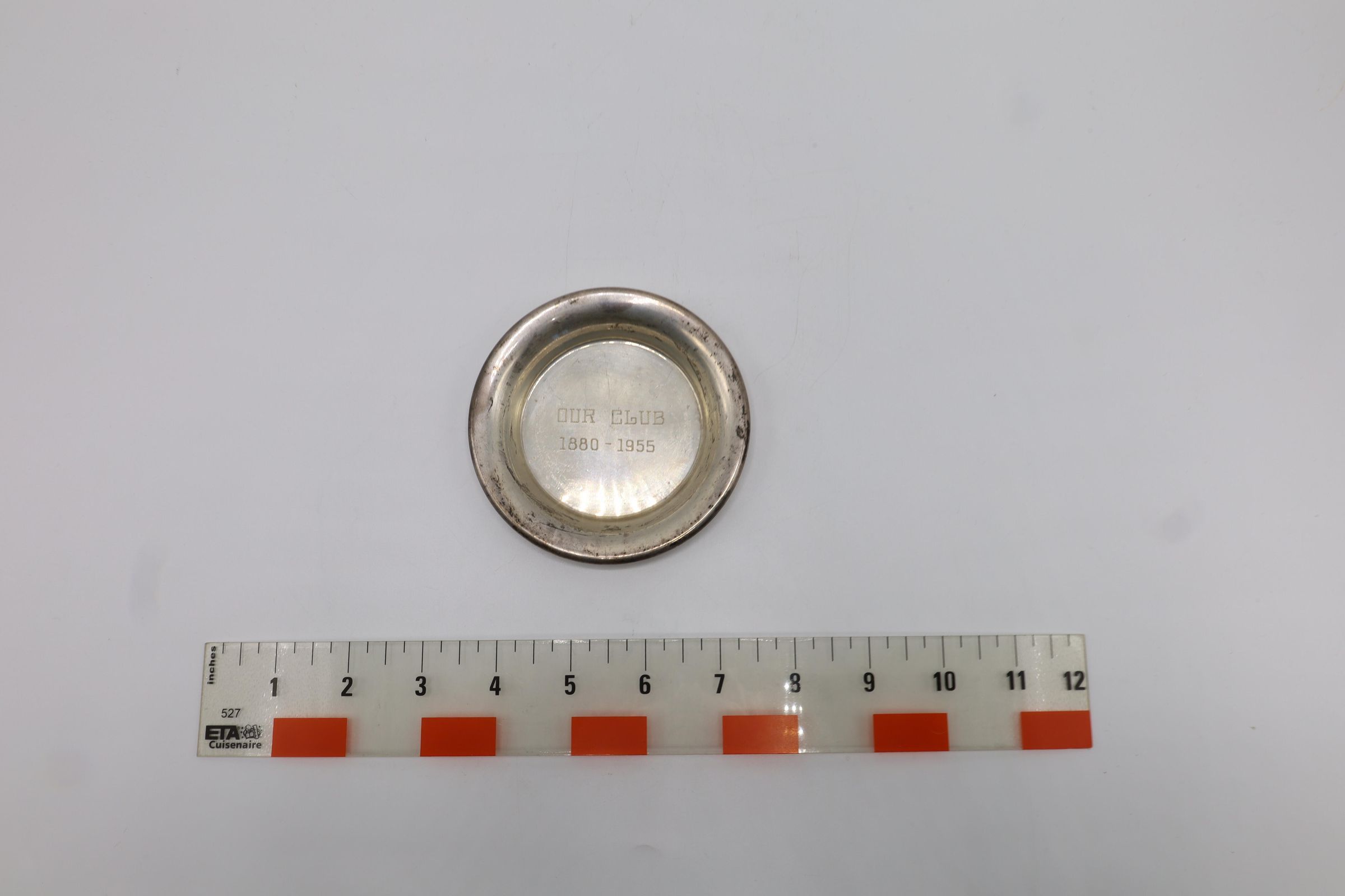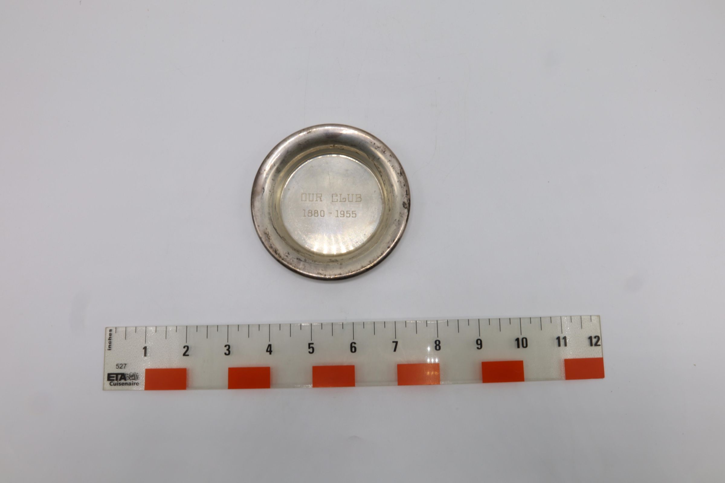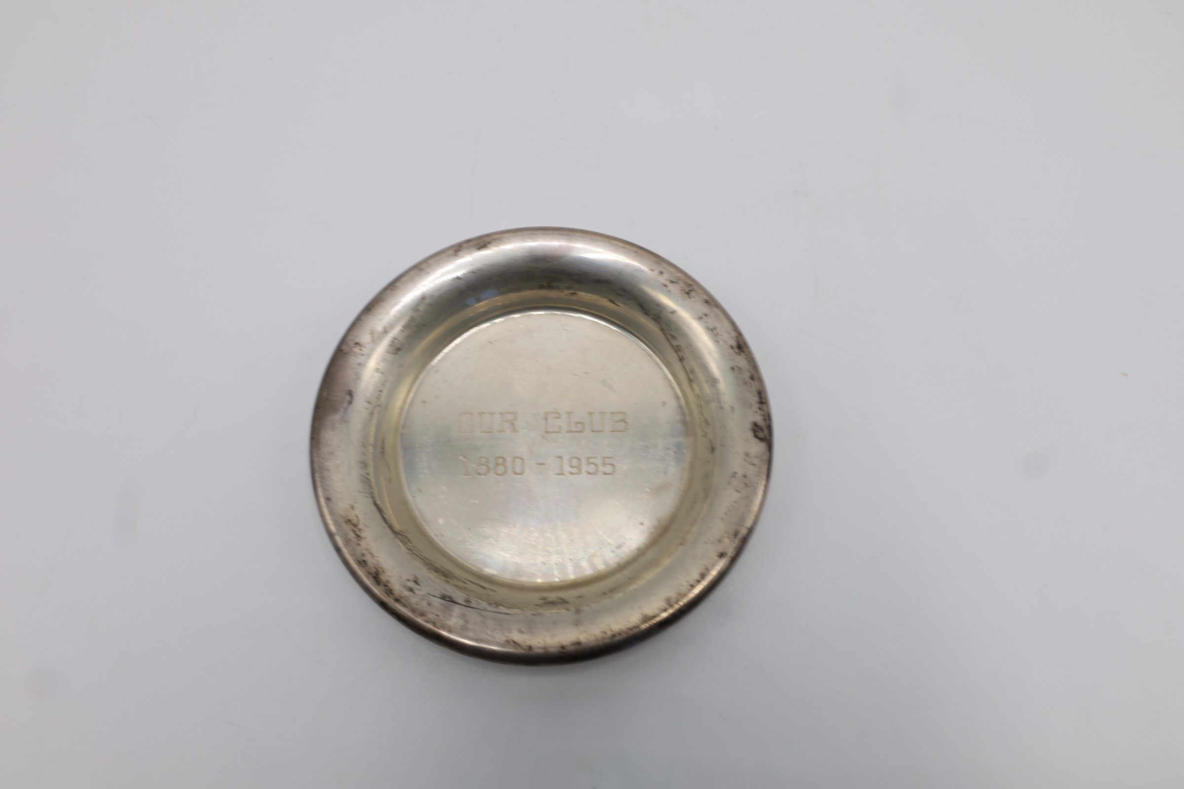 This small sterling silver plate or ashtray is inscribed "'OUR CLUB' 1880-1955."