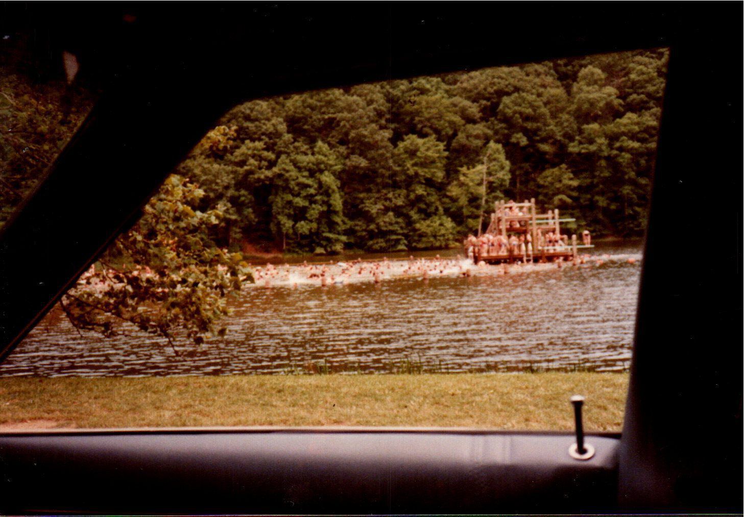 Swimmers inundate the diving pier and swimming area of Pike Lake during the 1983 Labor Day Weekend.
