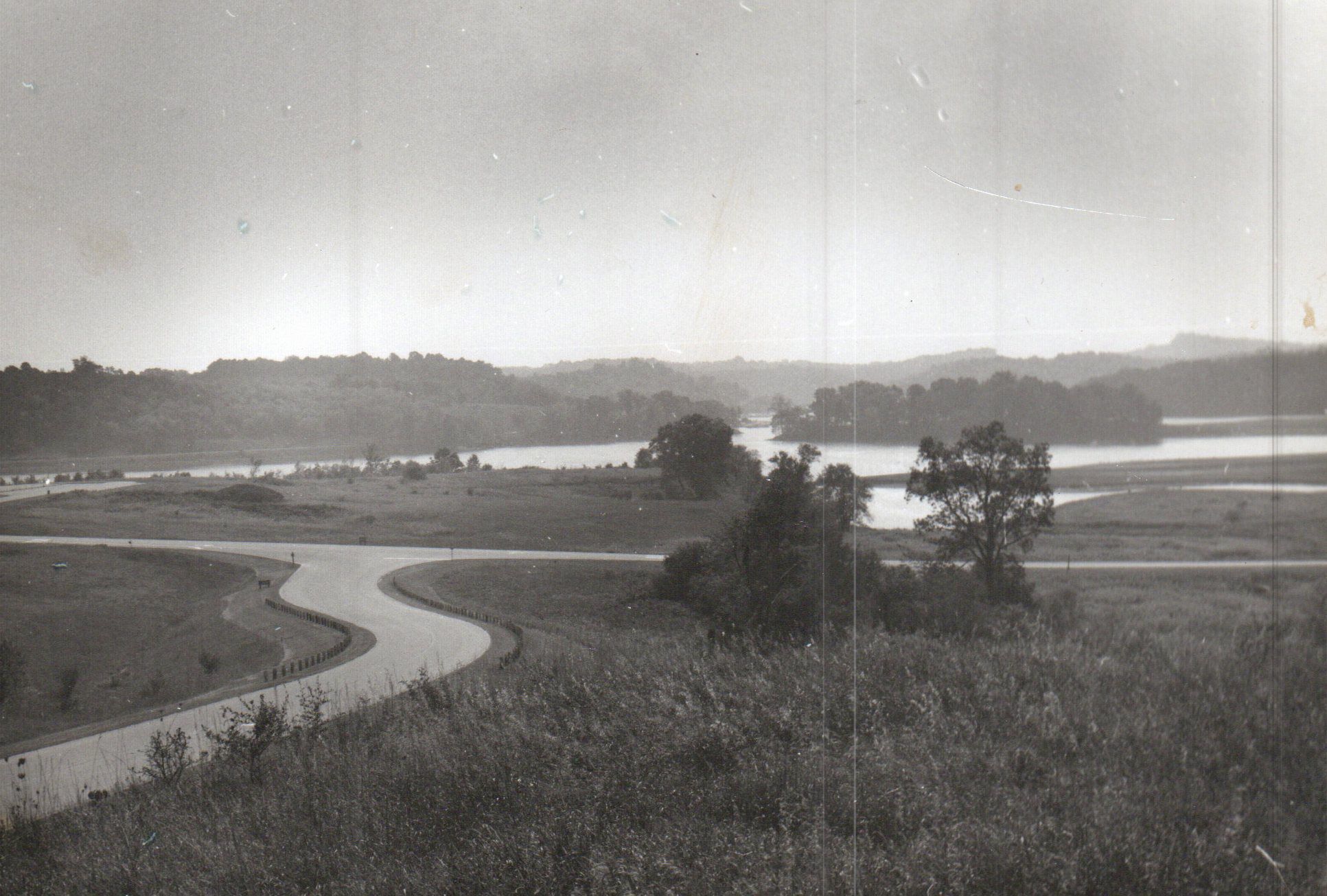 An expansive photograph of Salt Fork Lake State Park including roadways, meadow, forests, and Salt Fork Lake in the background.