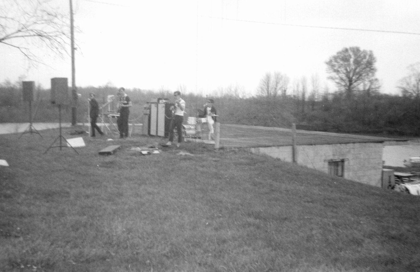 A rock-and-roll band performs on the grass above the concession building at Delaware State Park in July of 1967.
