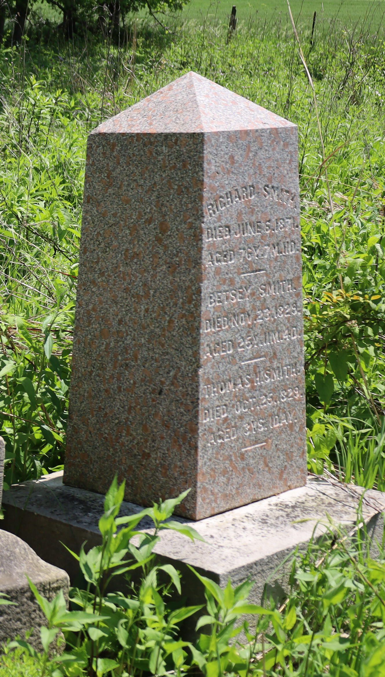 BETSEY SMITH Died Nov. 23. 1829 Aged 25Y. 11M. 4D. (Middle of Tombstone)