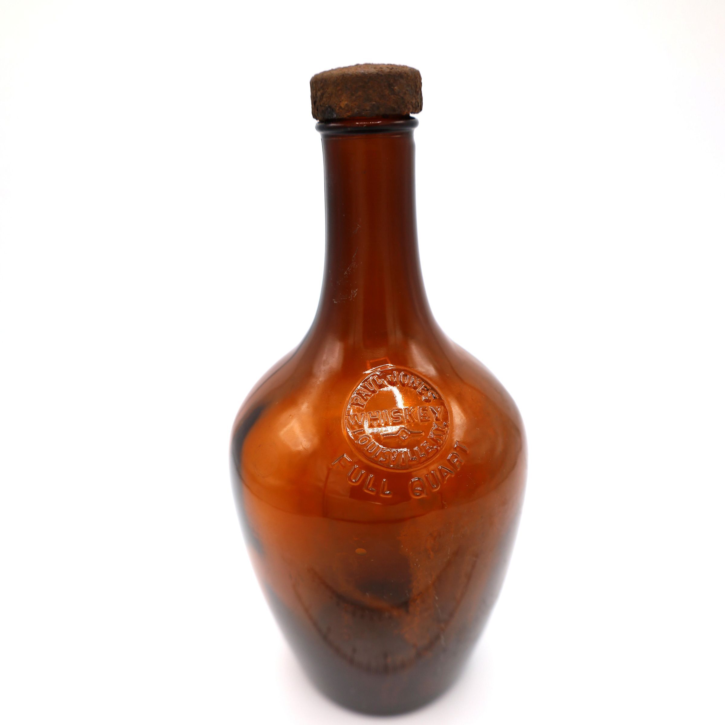 This is a brown glass bottle. The maker's mark on the shoulder of the bottle reads: Paul Jones / Whiskey Louisville, KY / Full Quart.Location
