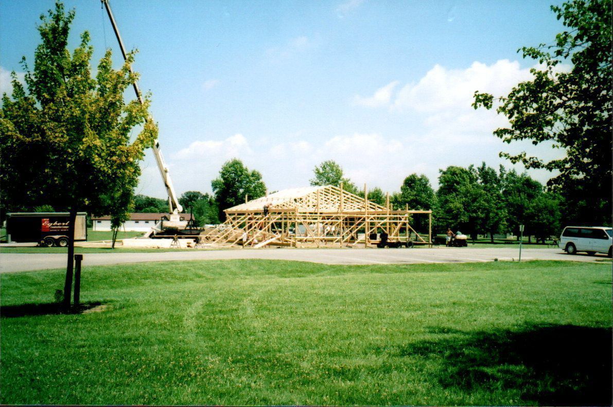 Workers have erected the framework for a new building at Indian Lake State Park.