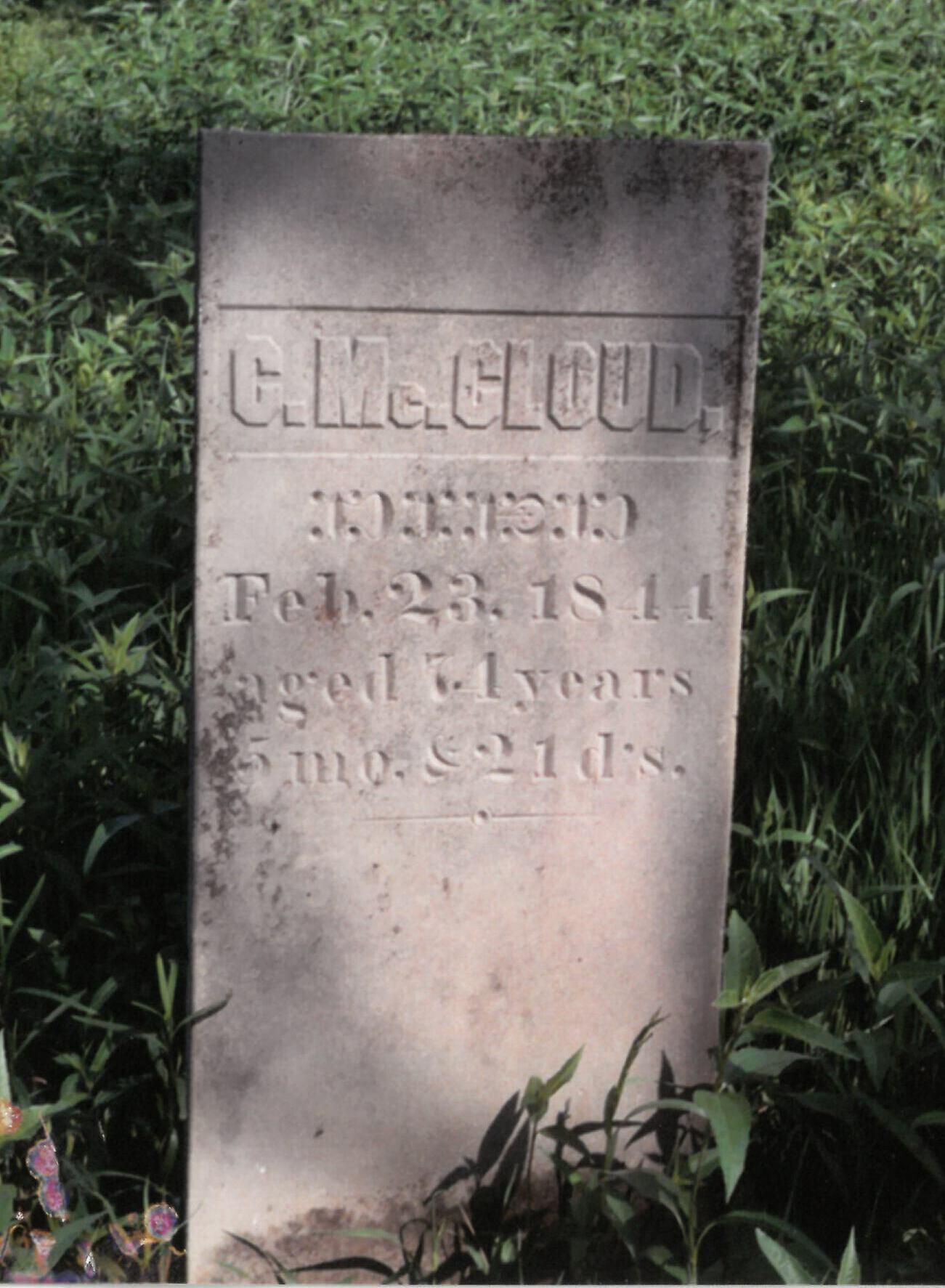 Charles McCloud Sr. bought a farm and settled in Darby Township in the year 1814. Charles Sr. was the father of many daughters and two sons, Charles Jr., and Curtis. He died at his son-in-law's in 1844.