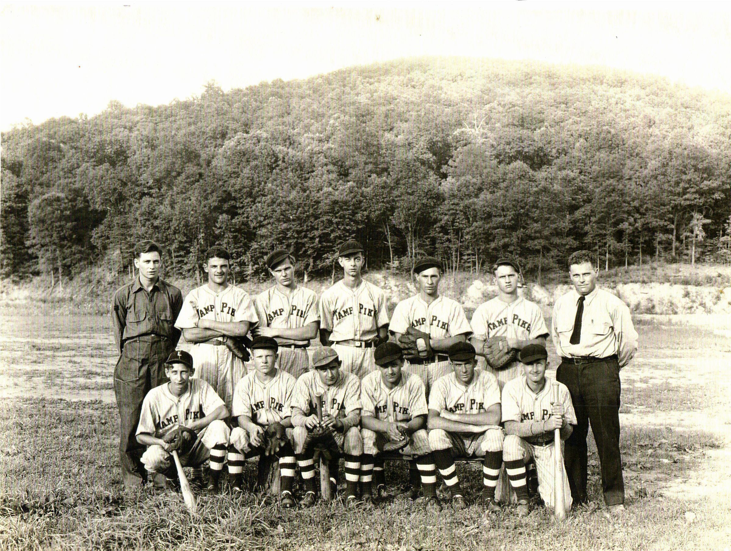 Civilian Conservation Corps (CCC) Company 503's baseball team poses for a photograph. Company 503 was stationed at Camp Pike near Morgantown. They reforested Pike State Forest and developed the infrastructure in what became Pike Lake State Park. The CCC afforded enrollees educational and recreational opportunities--including participating in a baseball team.