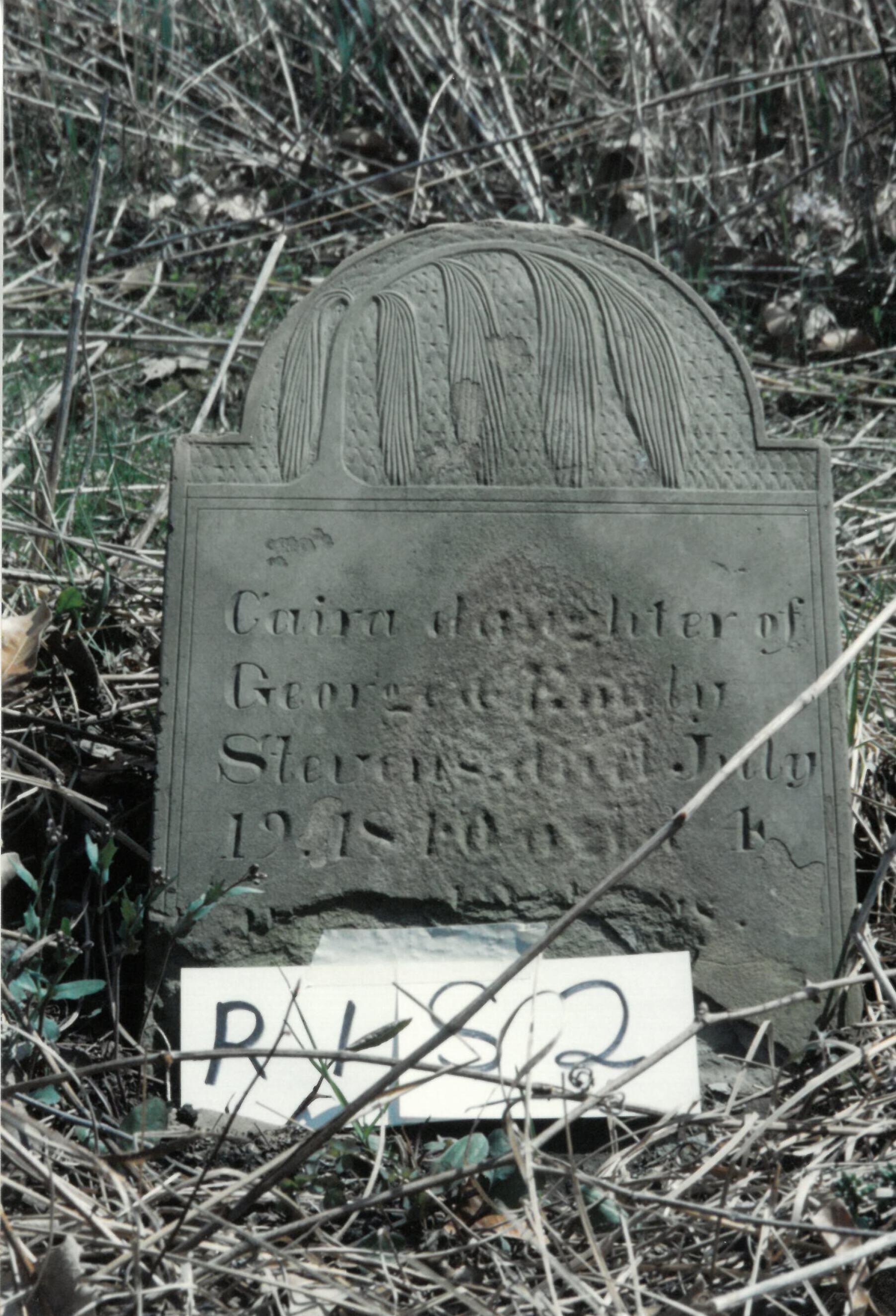 Caria daughter of George & Emily Stevens died July 19. 1840 Aged 4