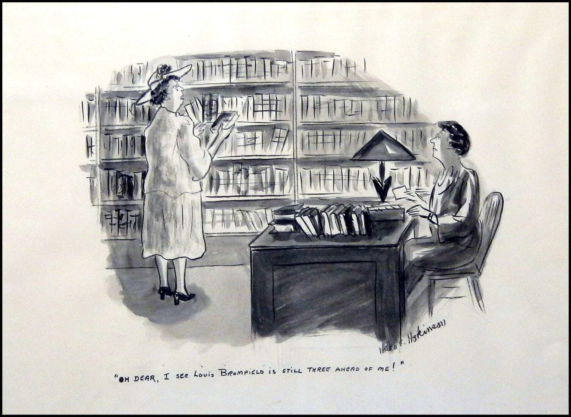 Louis Bromfield acquired three of these original Hokinson Women cartoons. They hang on the walls of the Big House to this day. On November 1, 1949, Helen Hokinson's airliner collided with a surplus Navy fighter plane on a training flight over Washington D. C. There were no survivors. Helen Hokinson was only 53 years old and still at the height of her career when she died.