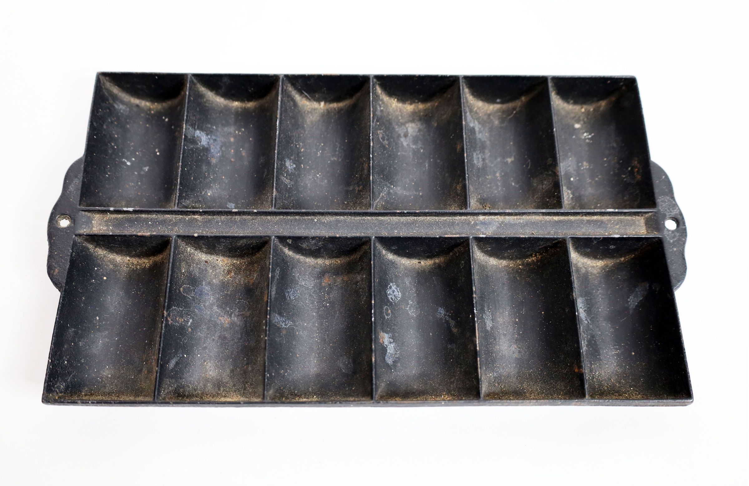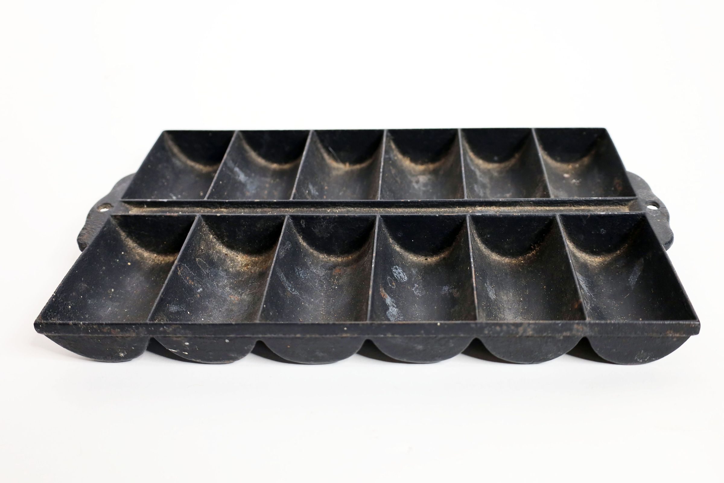 Cast iron pan for making individual cornbread servings. Age and maker unknown.