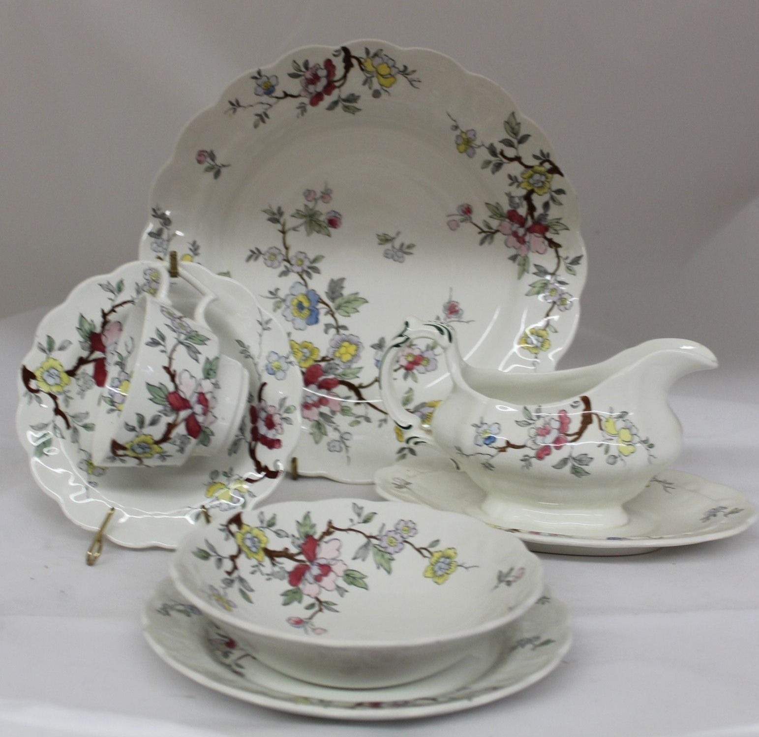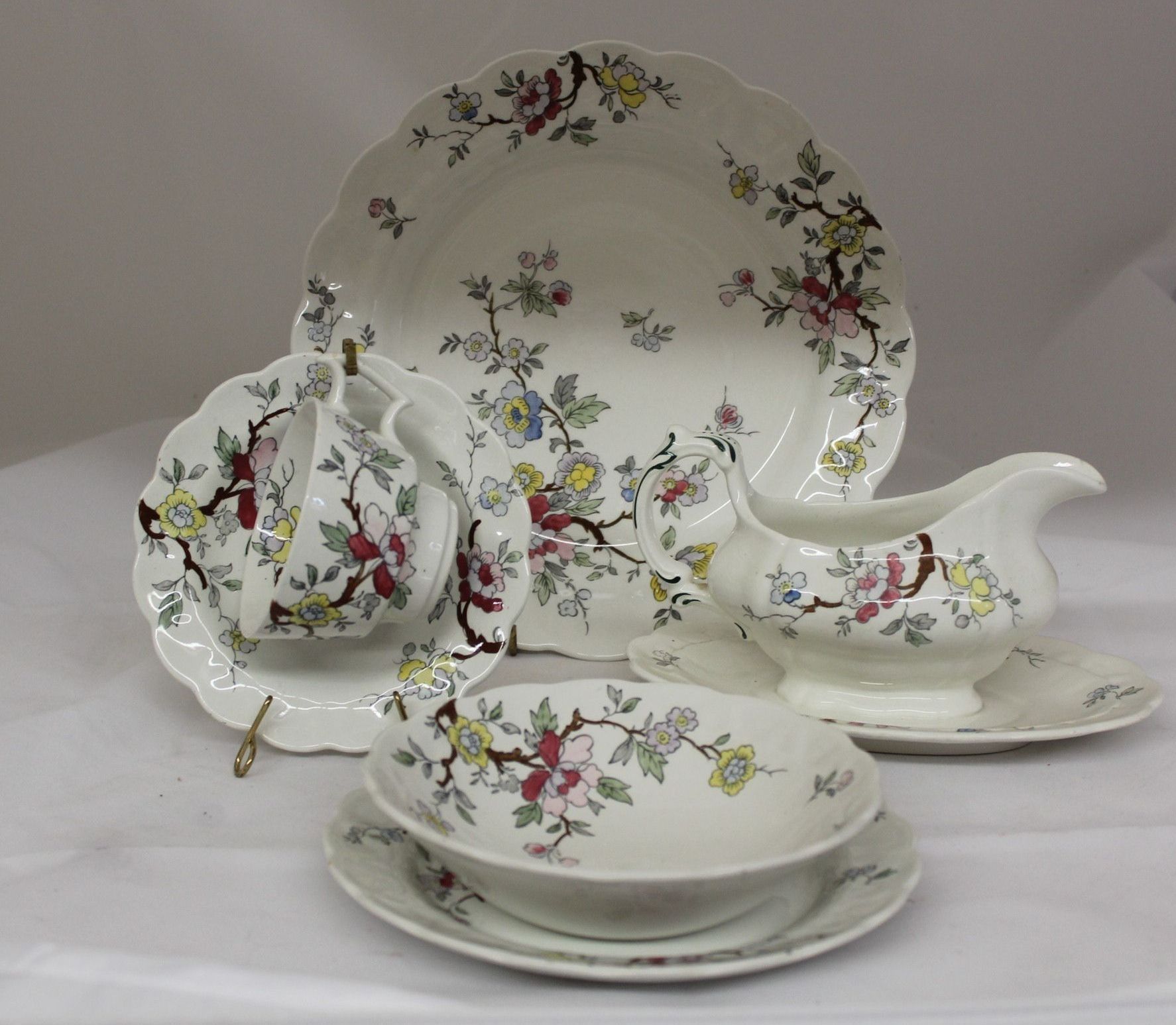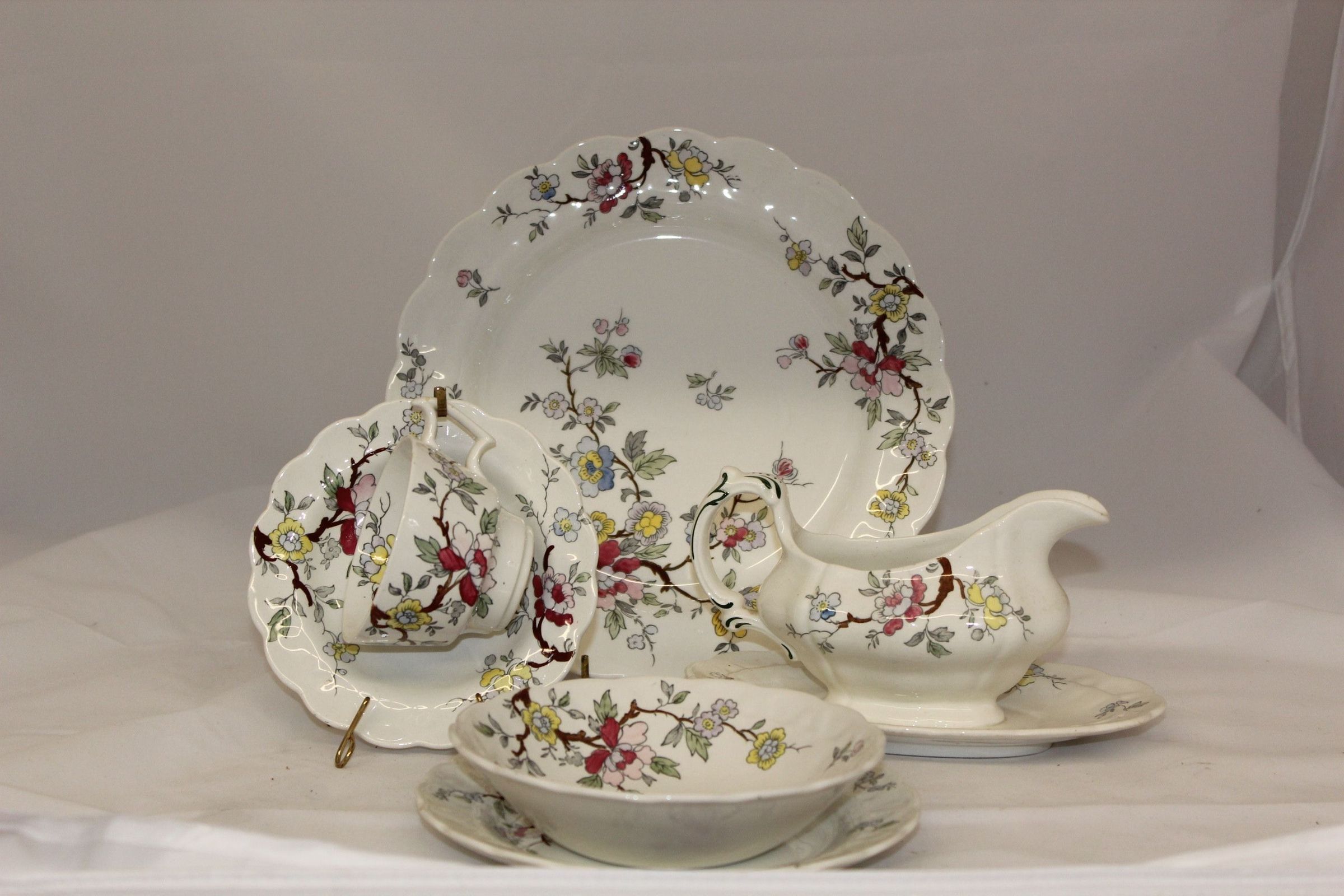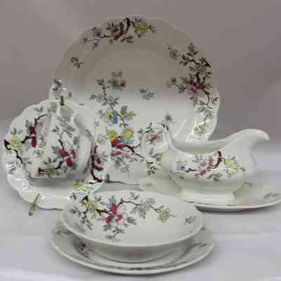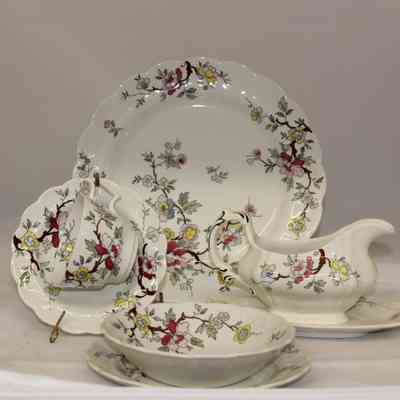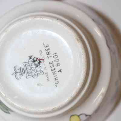 The Bromfields had an extensive set of Booth's Chinese tree china. The multicolored floral design, marked A 8001, was made in England. The remaining pieces in the Big House include platters, bowls, plates, and teacups and saucers.Cataloged By