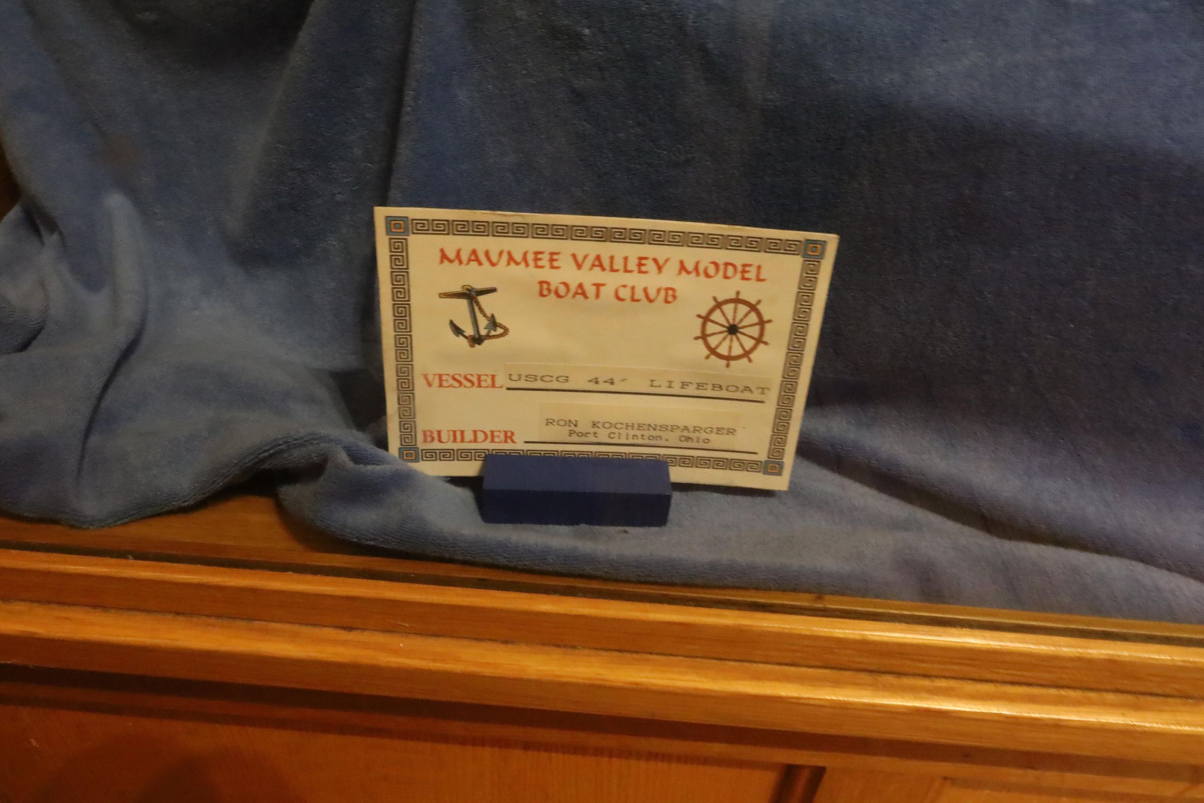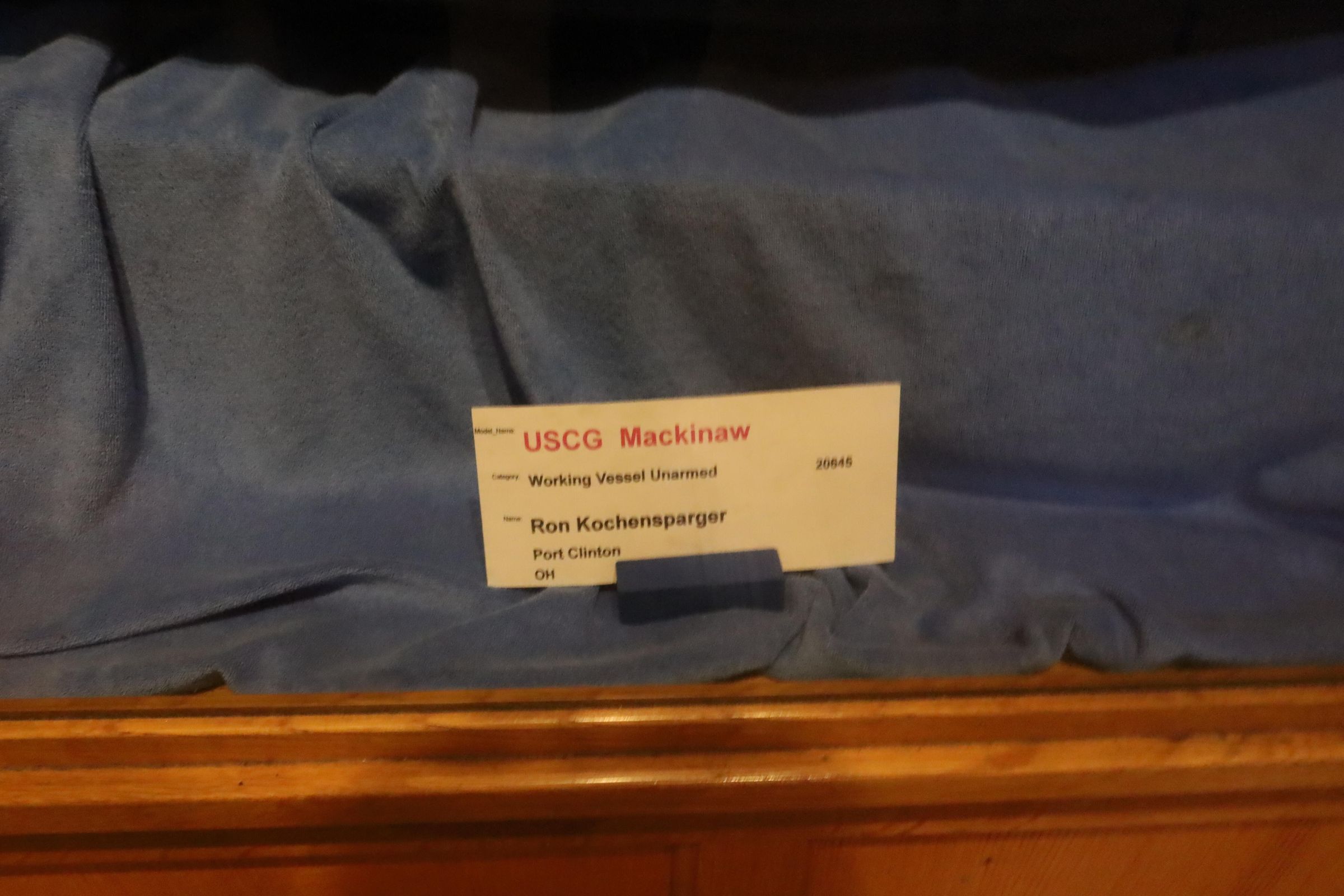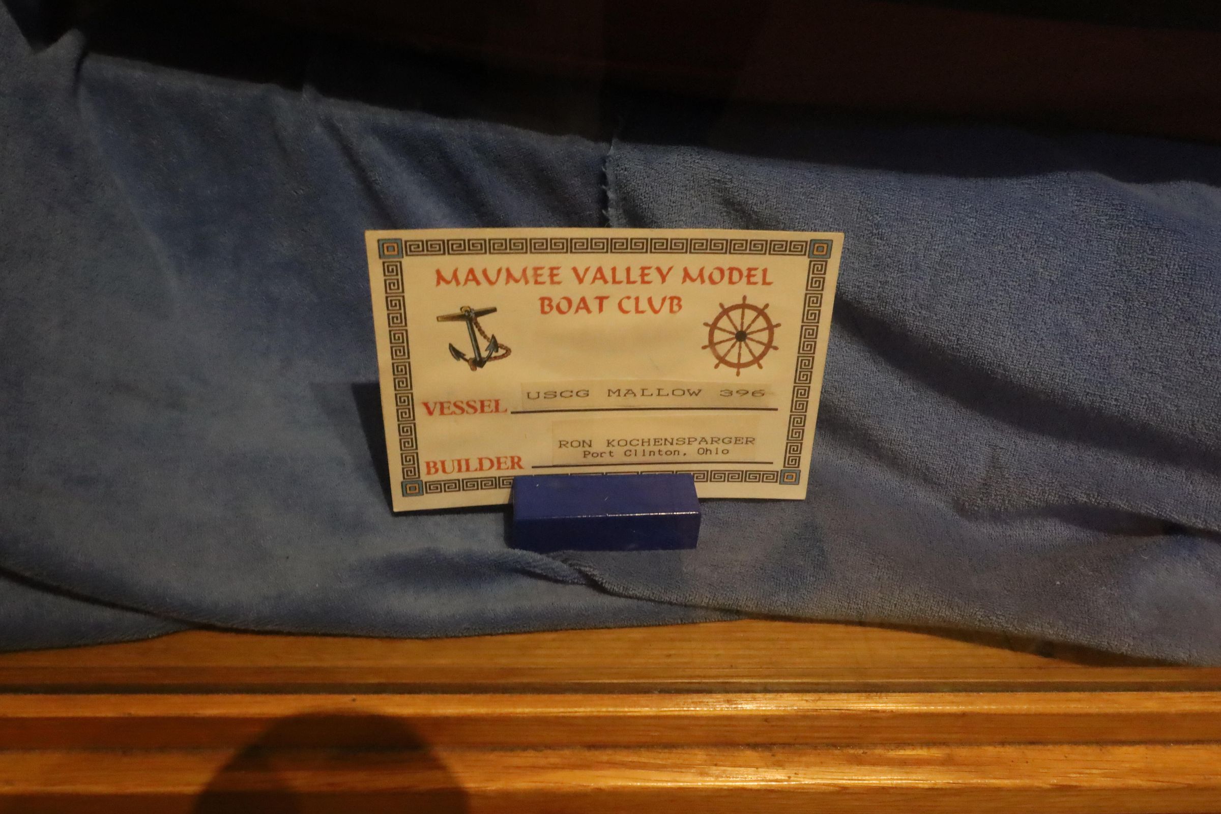 Three Coast Guard boat models on display include the USCG Mackinaw, USCG Mallow, and USCG 44' Lifeboat.