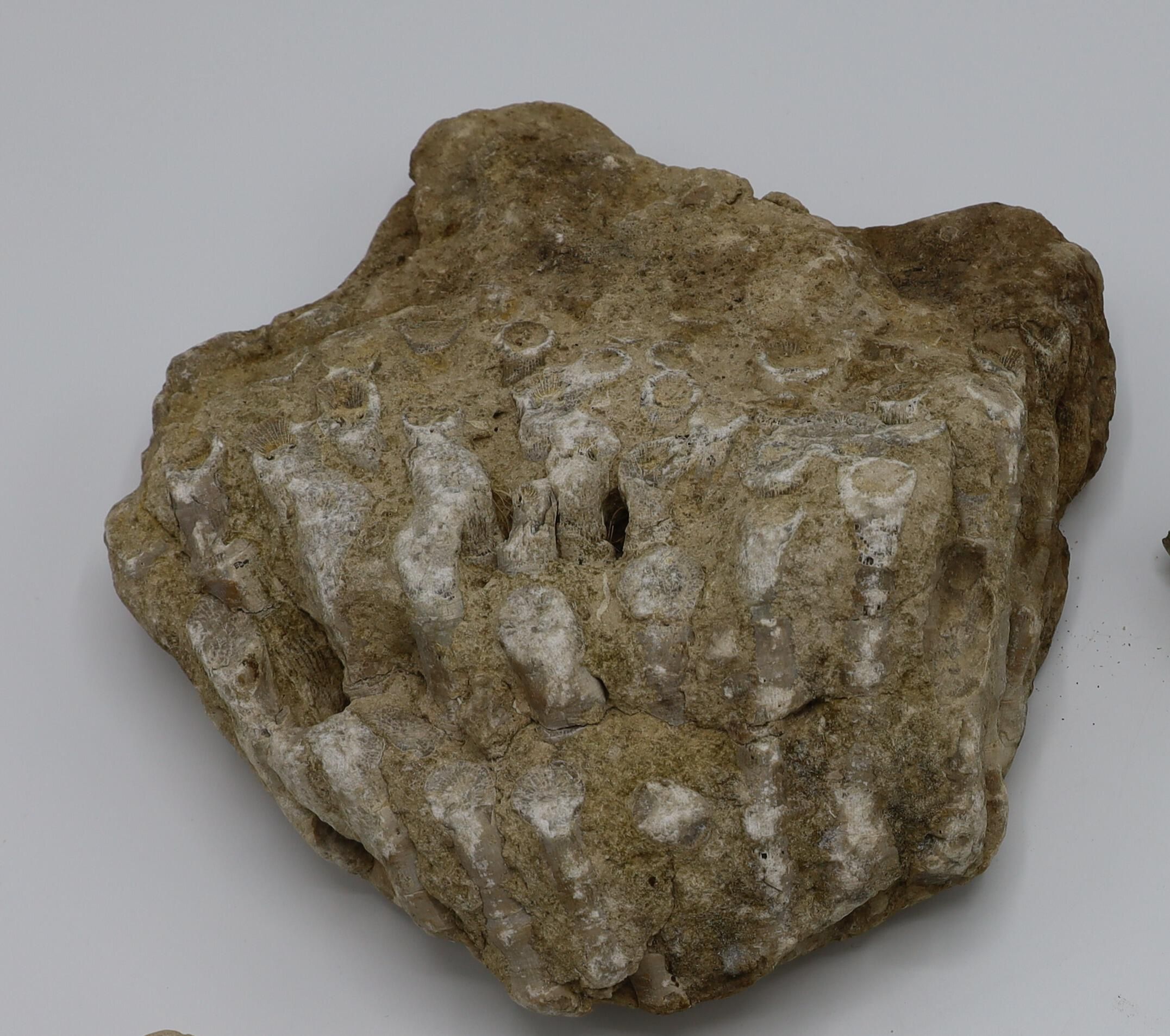 This colonial rugose “finger” coral Eridophyllum is a fossil of the Columbus Limestone originating from the Devonian Period, 360—419 million years ago.