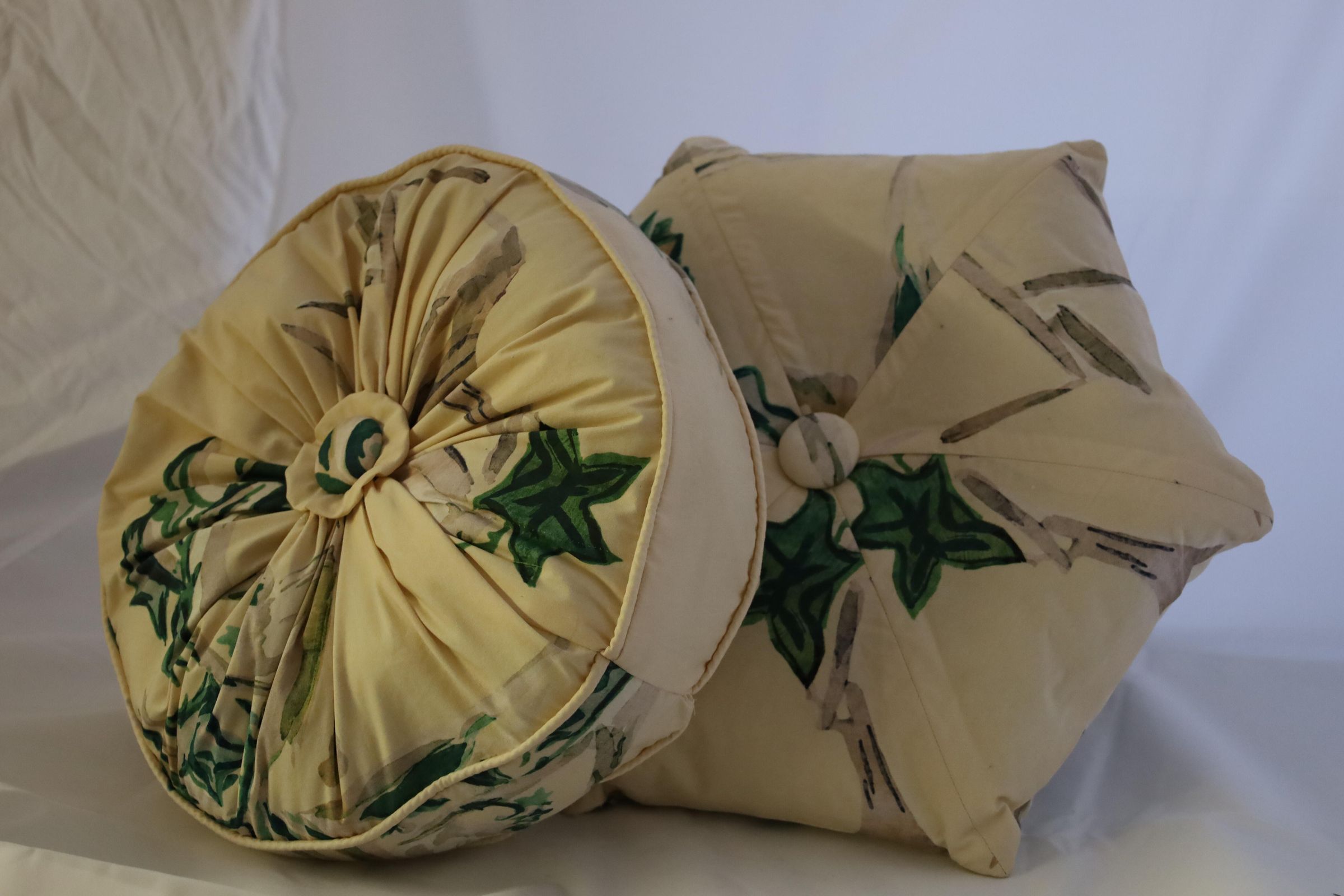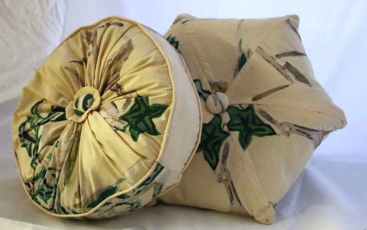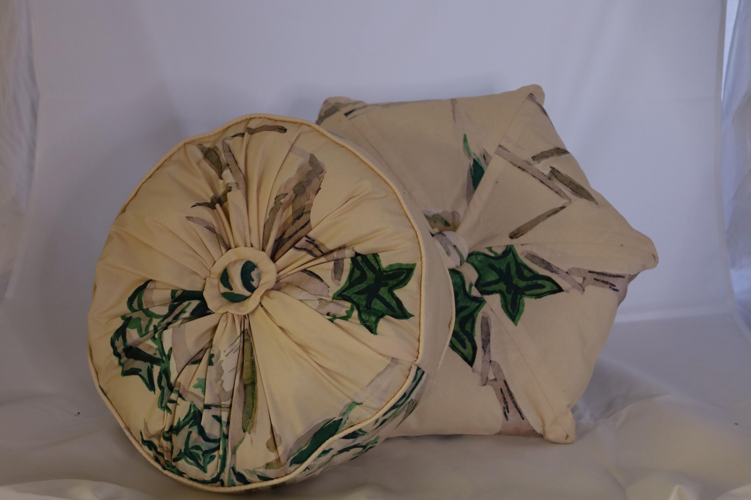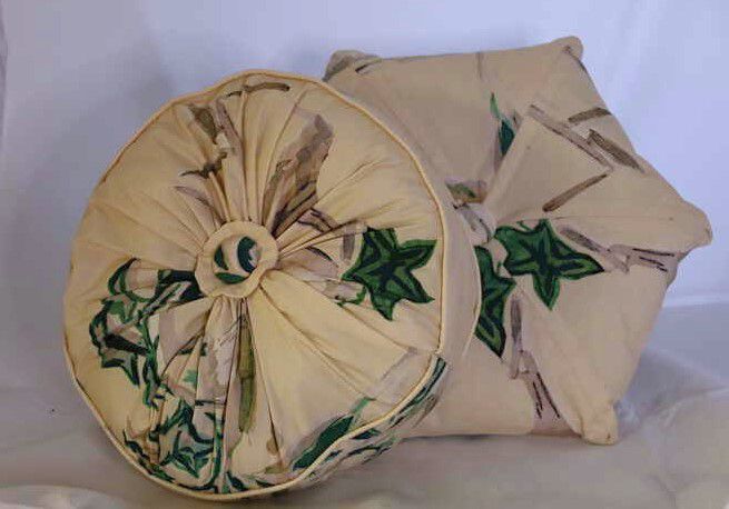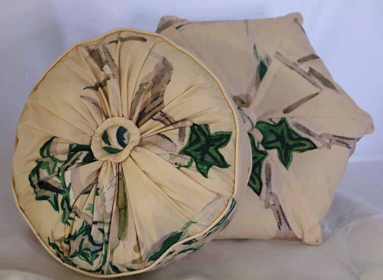 The fabric, designed by James Reynold, the artist, for the Bromfields, uses the same design as the hand-painted wallpaper. These pillows are reproductions.Location