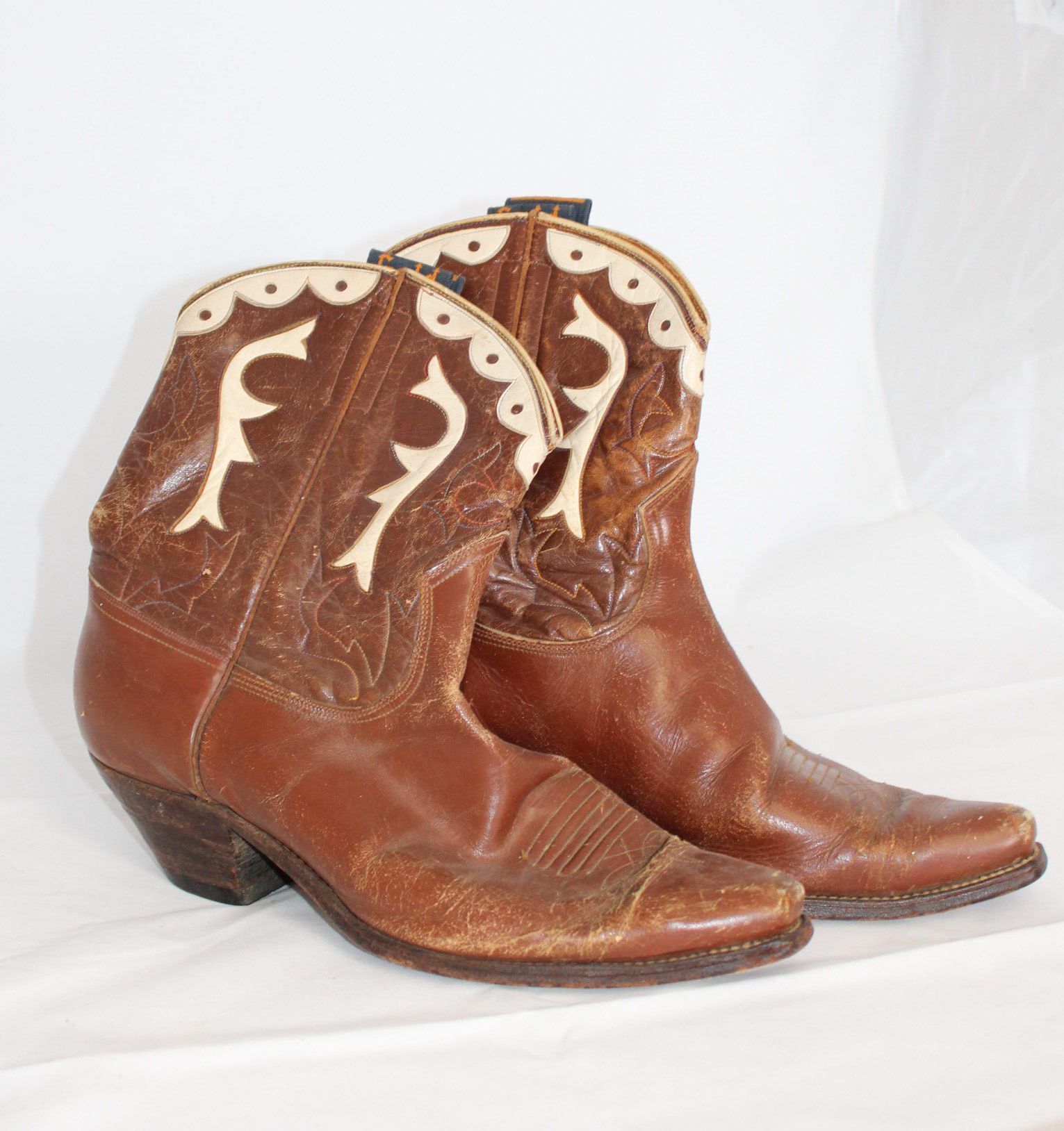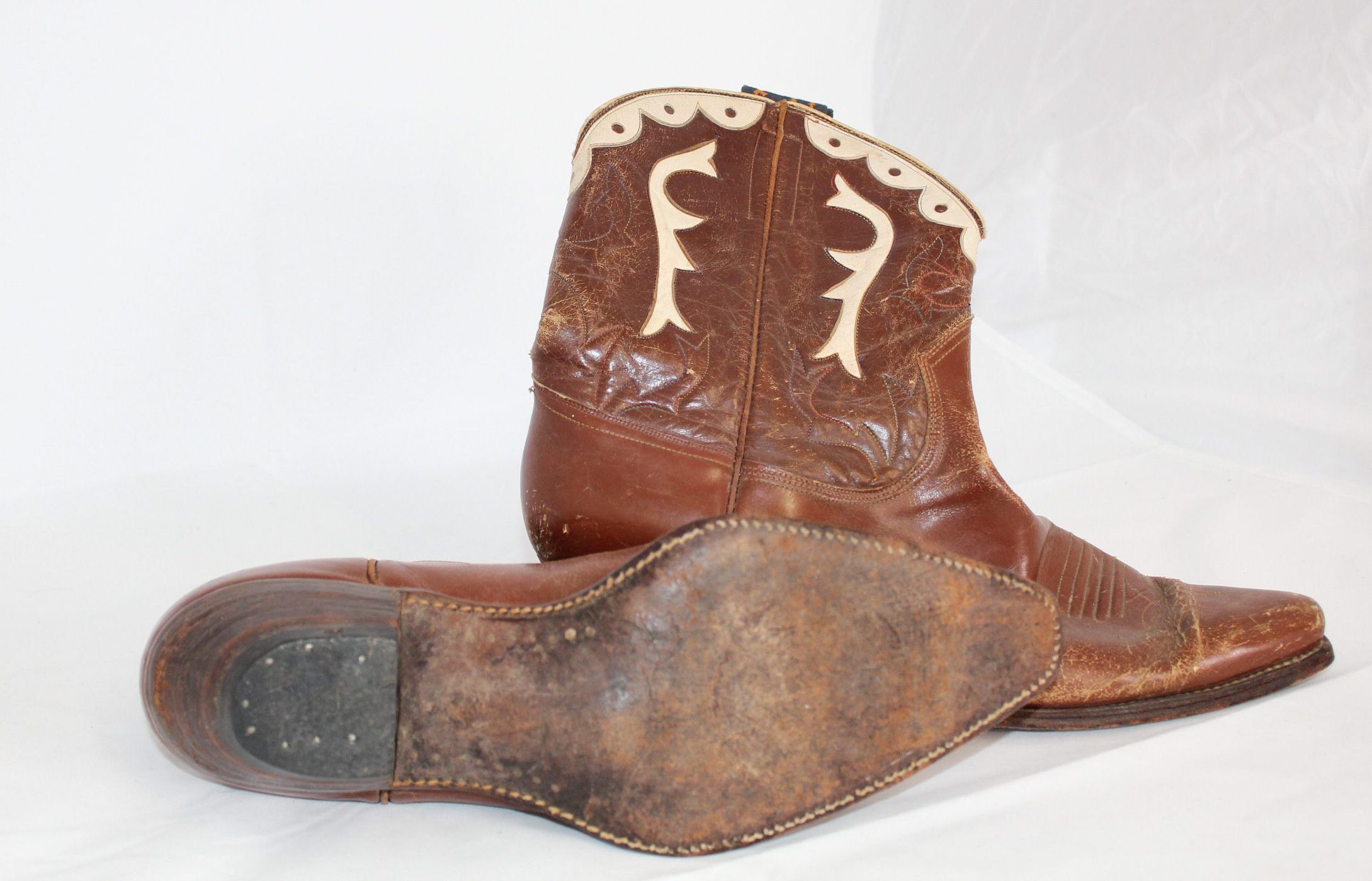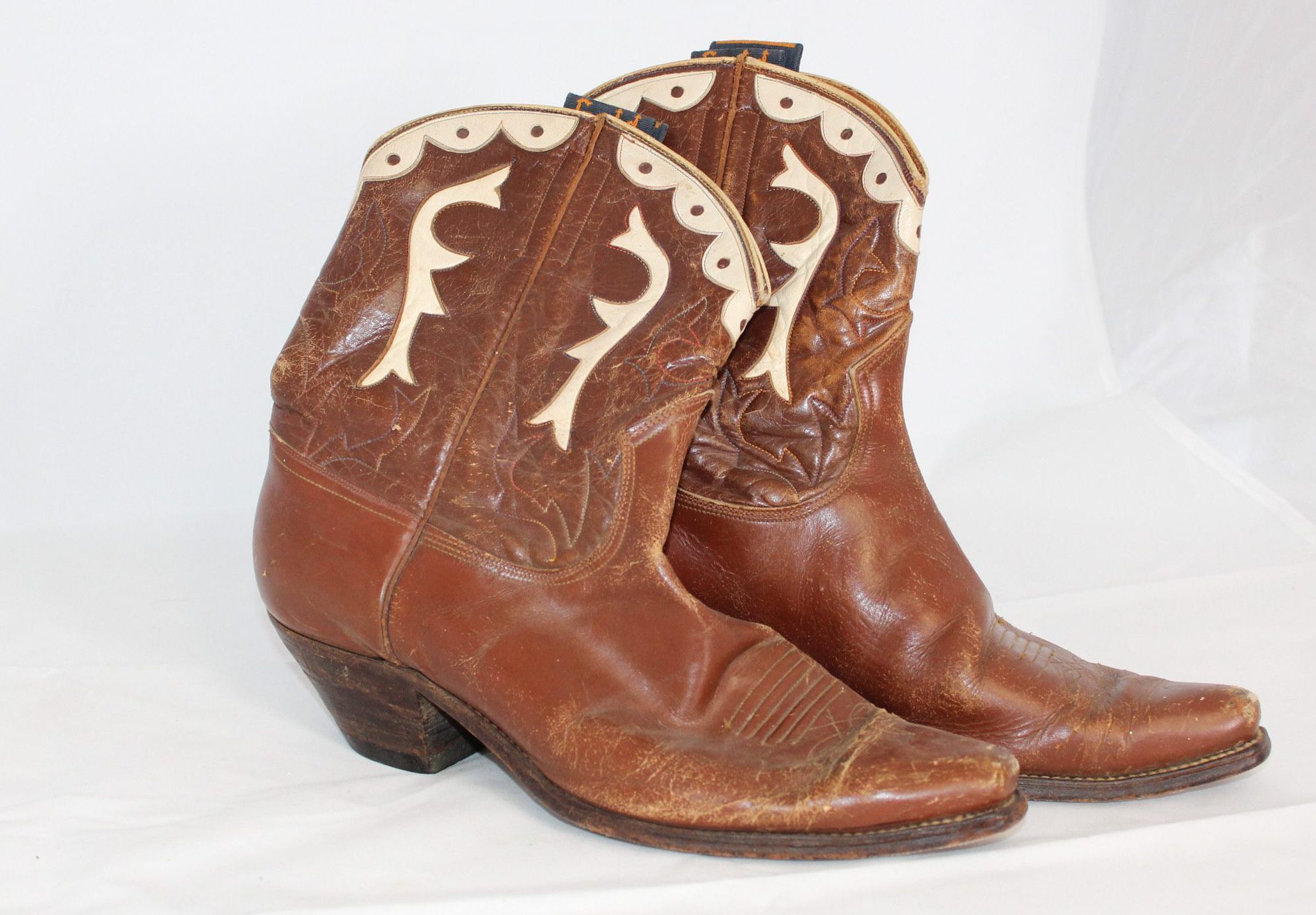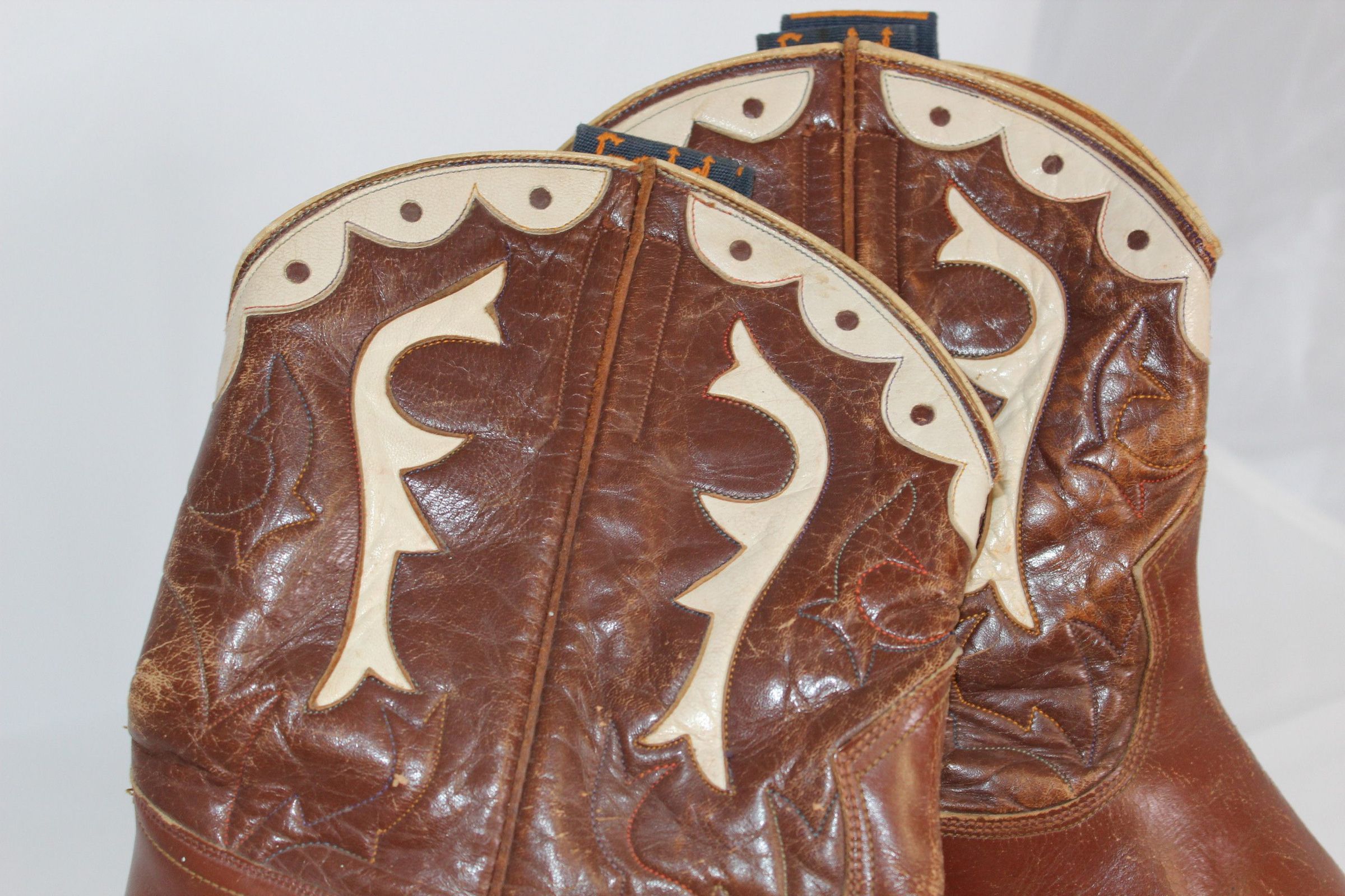 Some of the Gold Bond boots were less ornate than this example. They may not have the white leather accents, or if they did they may be simpler than this pair. The boots might have a squarer toe as well, which fit well with utilitarian boots.Context