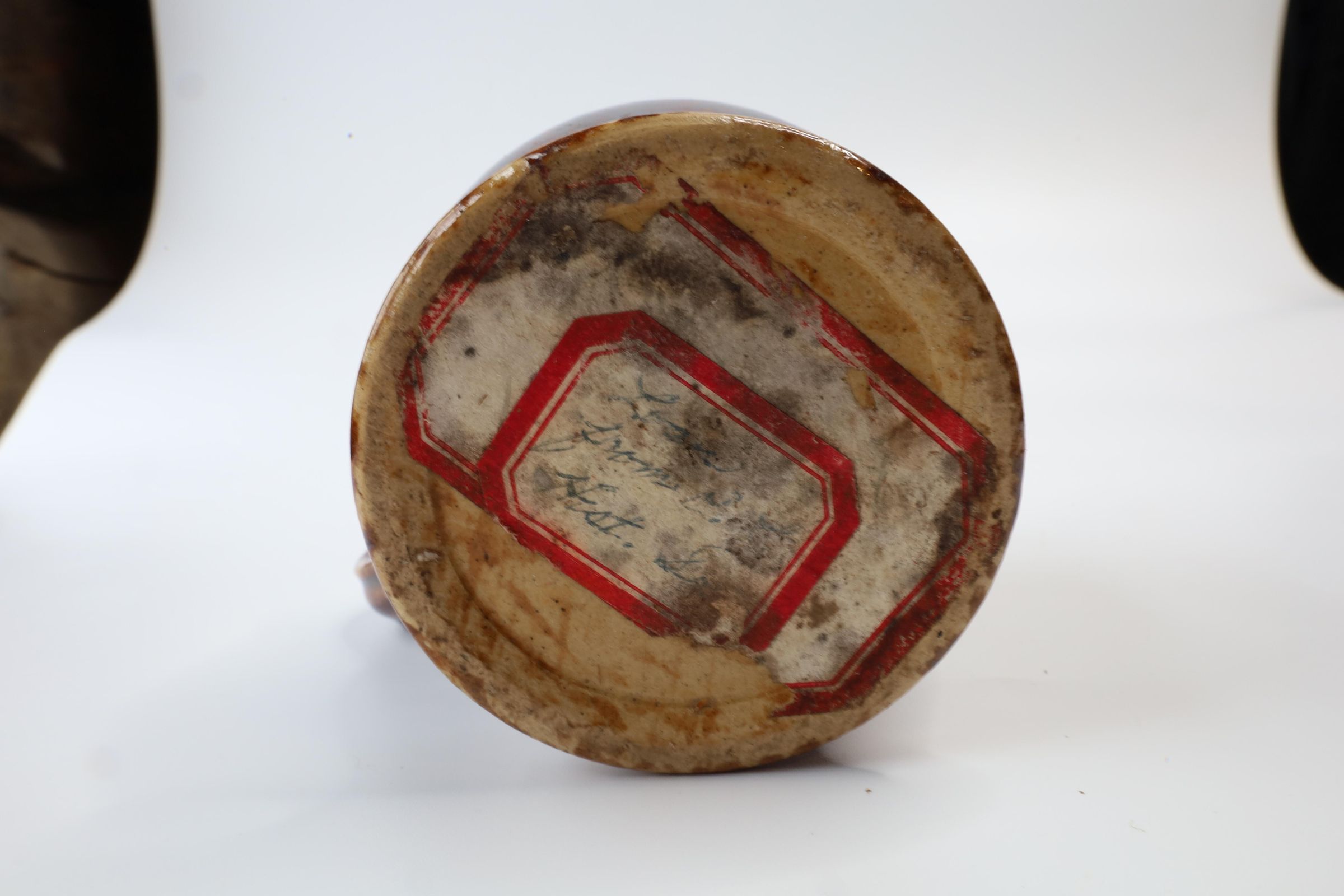 According to Edwin Atlee Barber, in his book “The Pottery and Porcelain of the United States” (1883), American Rockingham is yellowware covered with a dark-brown glaze and often mottled by spattering the glaze before it is fired. The name Rockingham was first applied to pottery made in England about 1796.