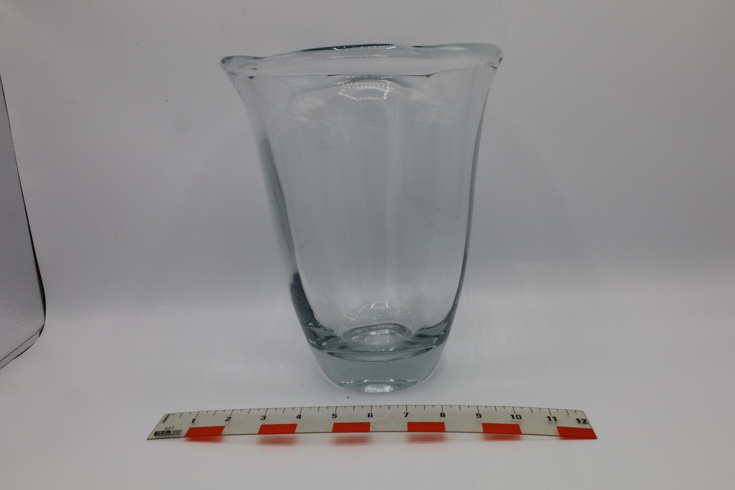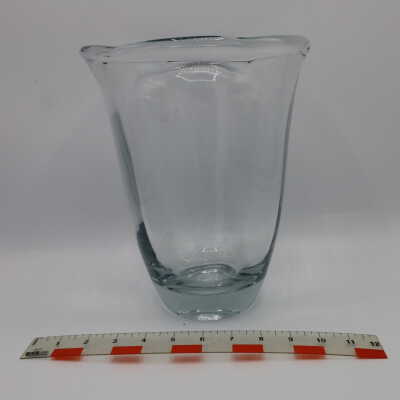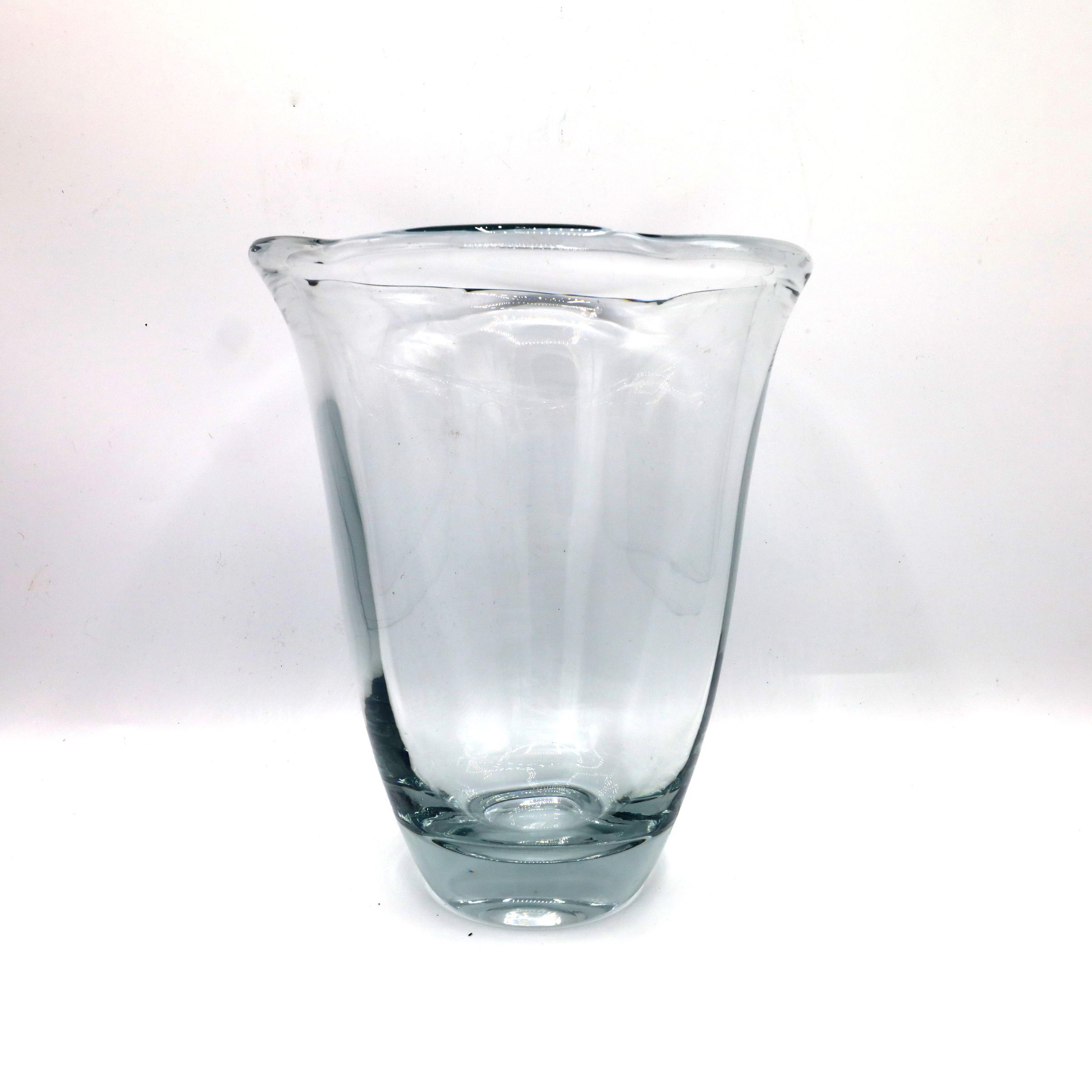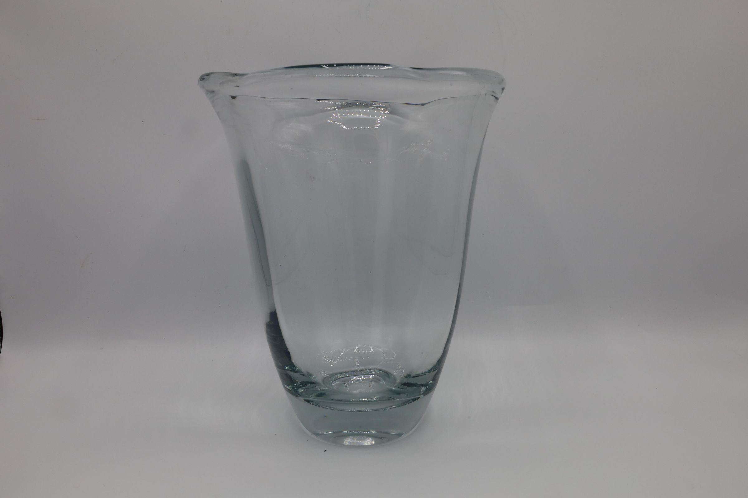 Colorless crystal vase, no decoration, heavy and thick. Daum Dahm glass, possibly