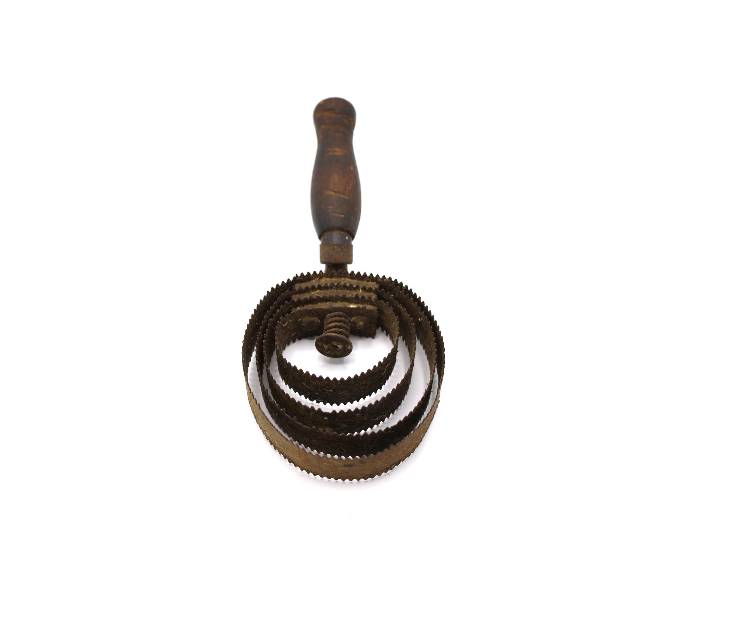 Wood-handle curry comb, 8.5-inch long with four circular blades and teeth. Curry combs remove mud, dust, and winter coat from a horse's hair.Location