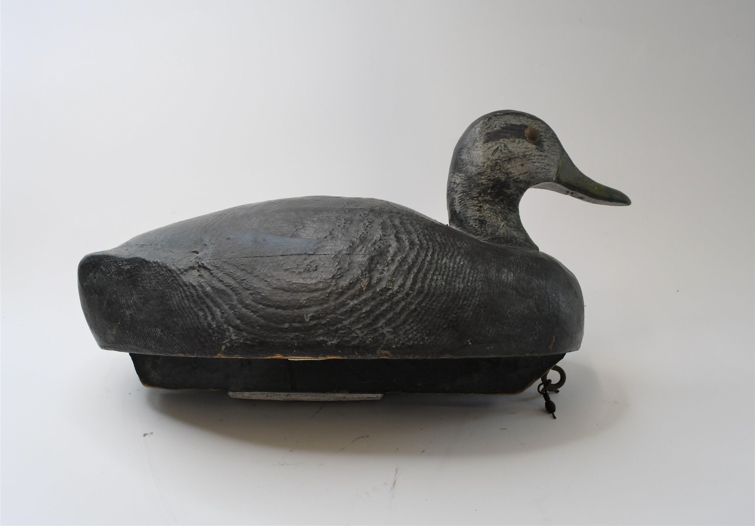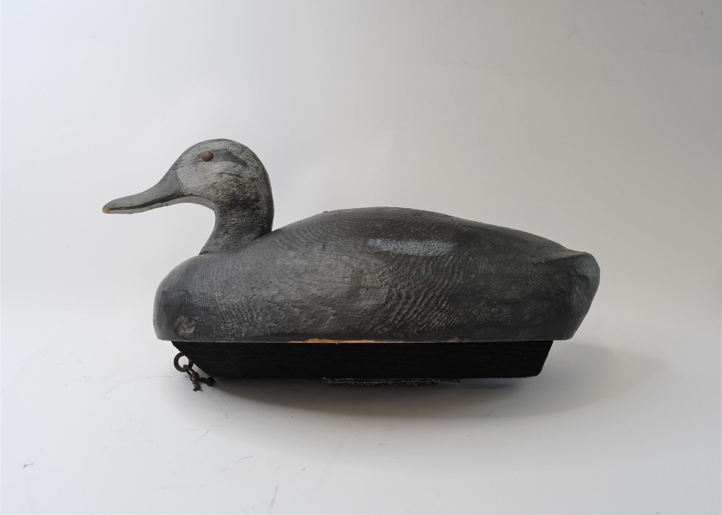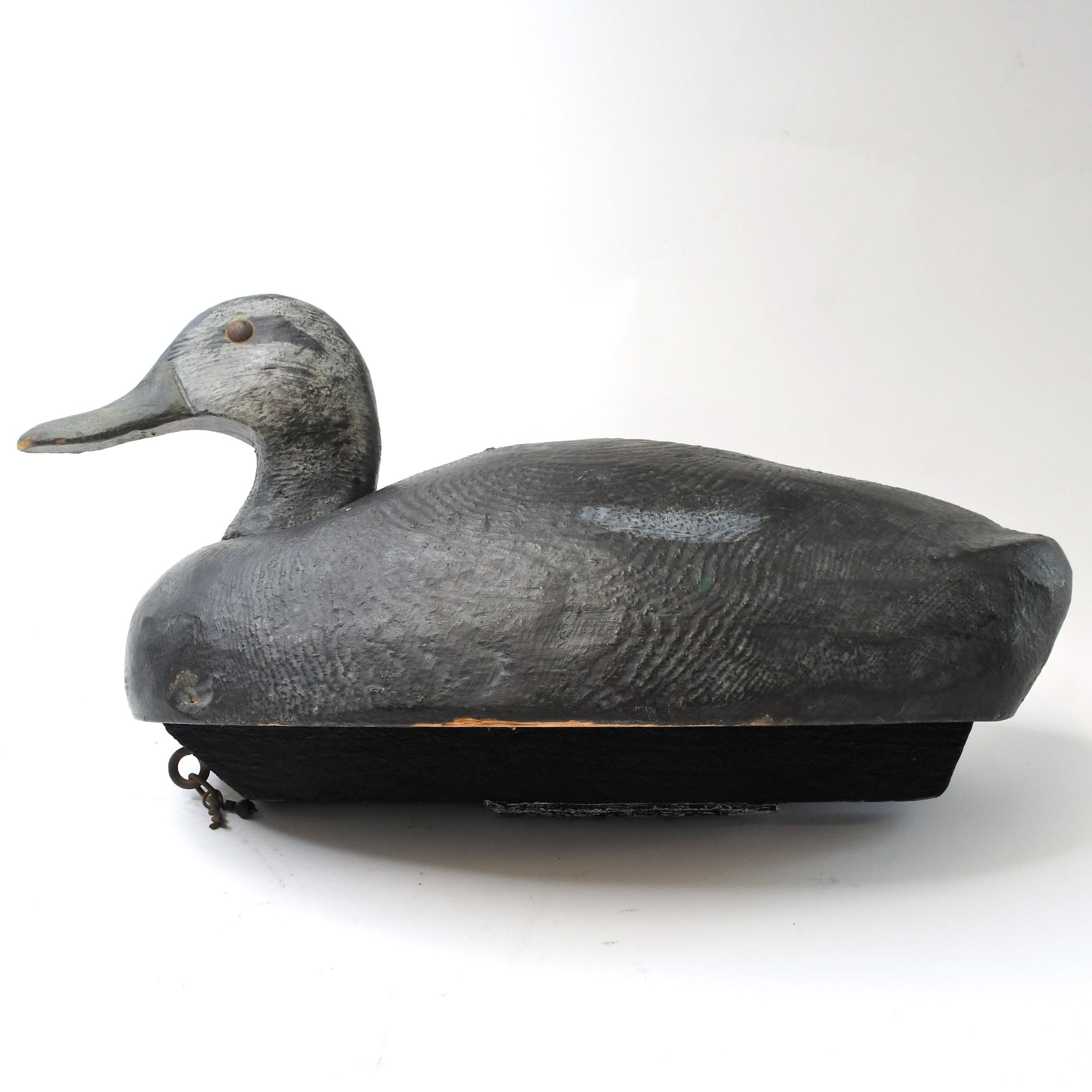 The American Black Duck has a wide range in the United States, and they are closely related to the Mallard. Jack Rider of Port Clinton, Ohio carved decoys in the mid-twentieth century. A black duck decoy like this one would have the body carved from one piece of wood, and the head carved separately and attached later because the grain lines on the wood would cause a chipped bill if the bird was made from a single section.Location