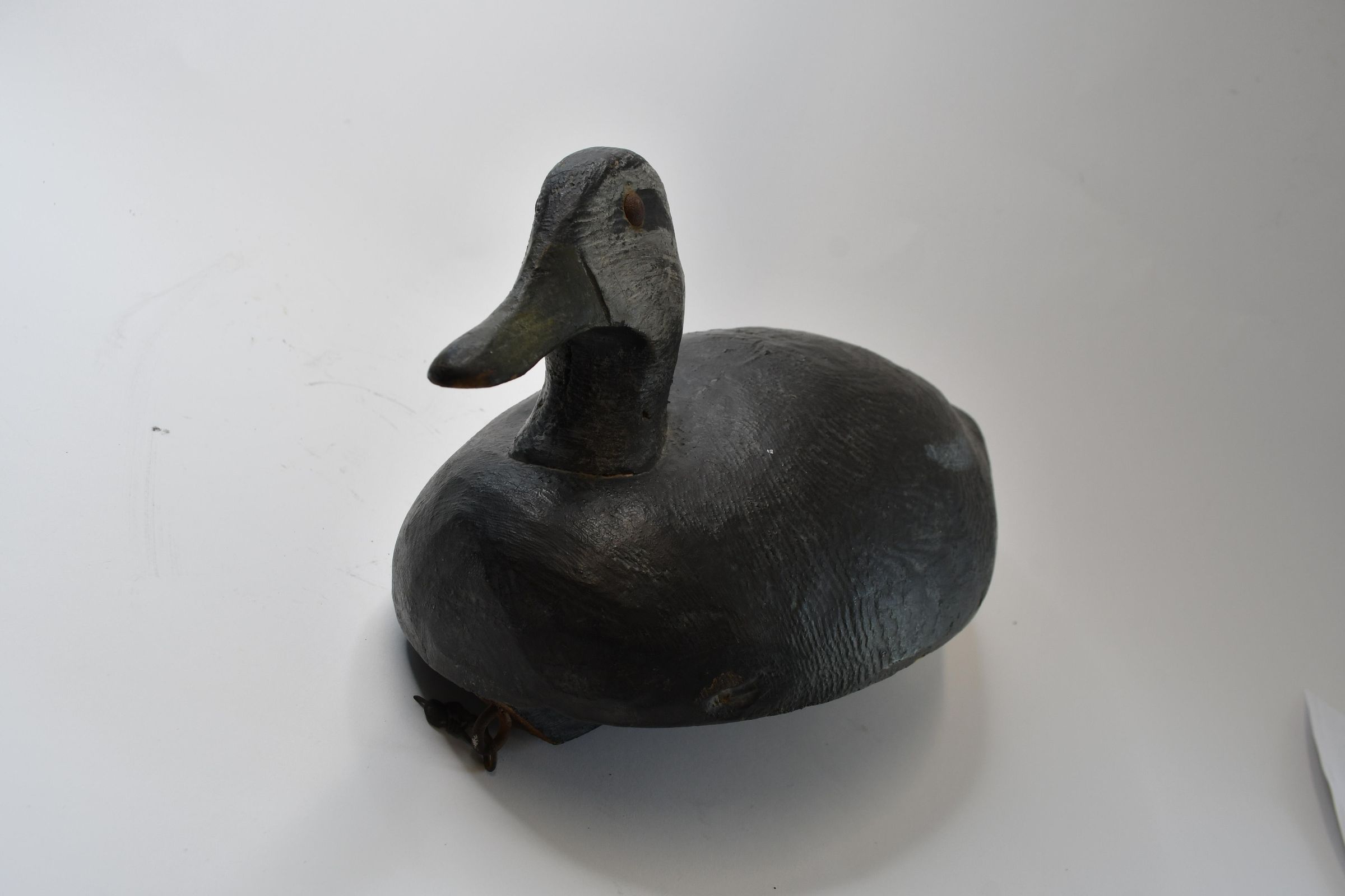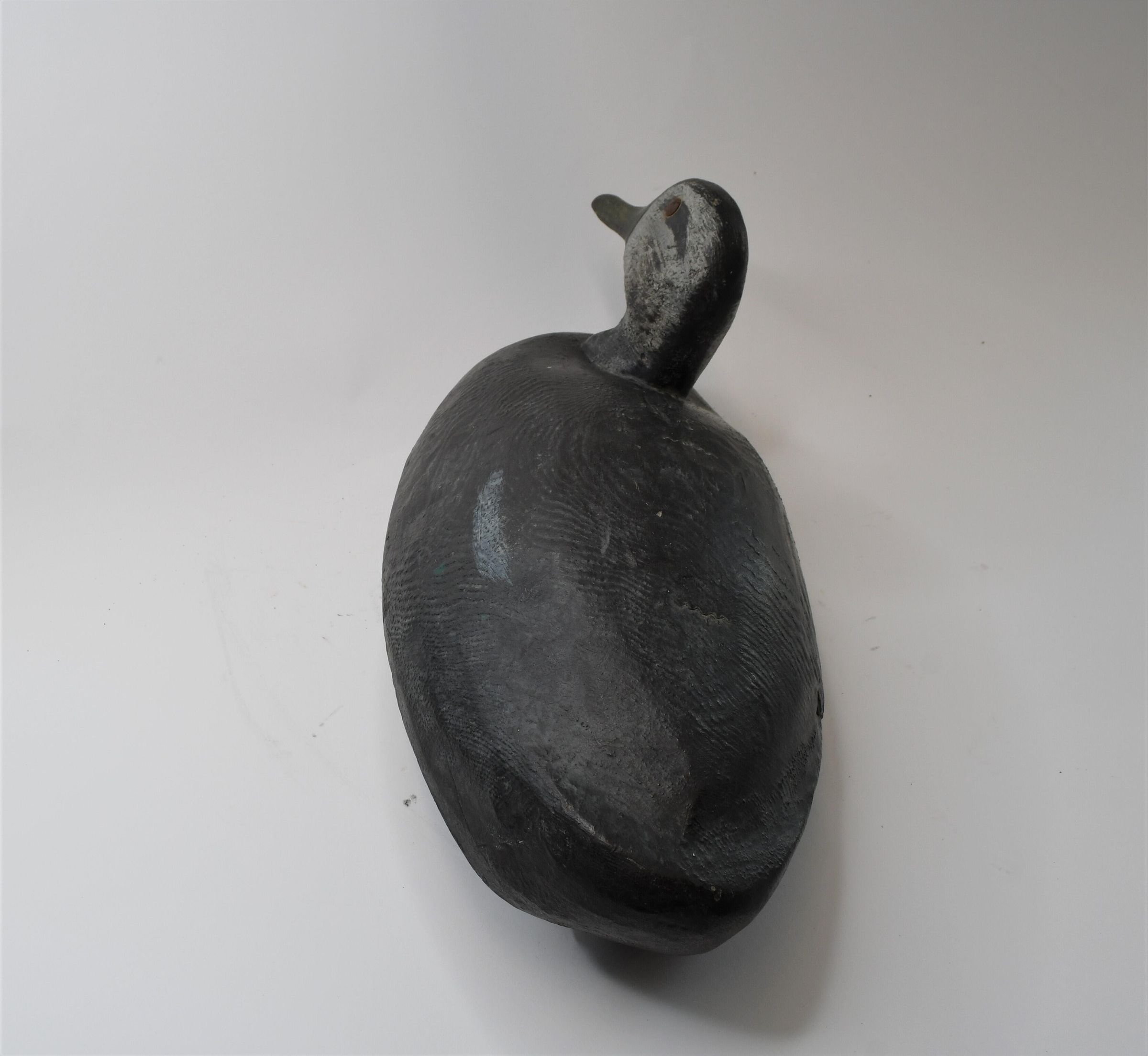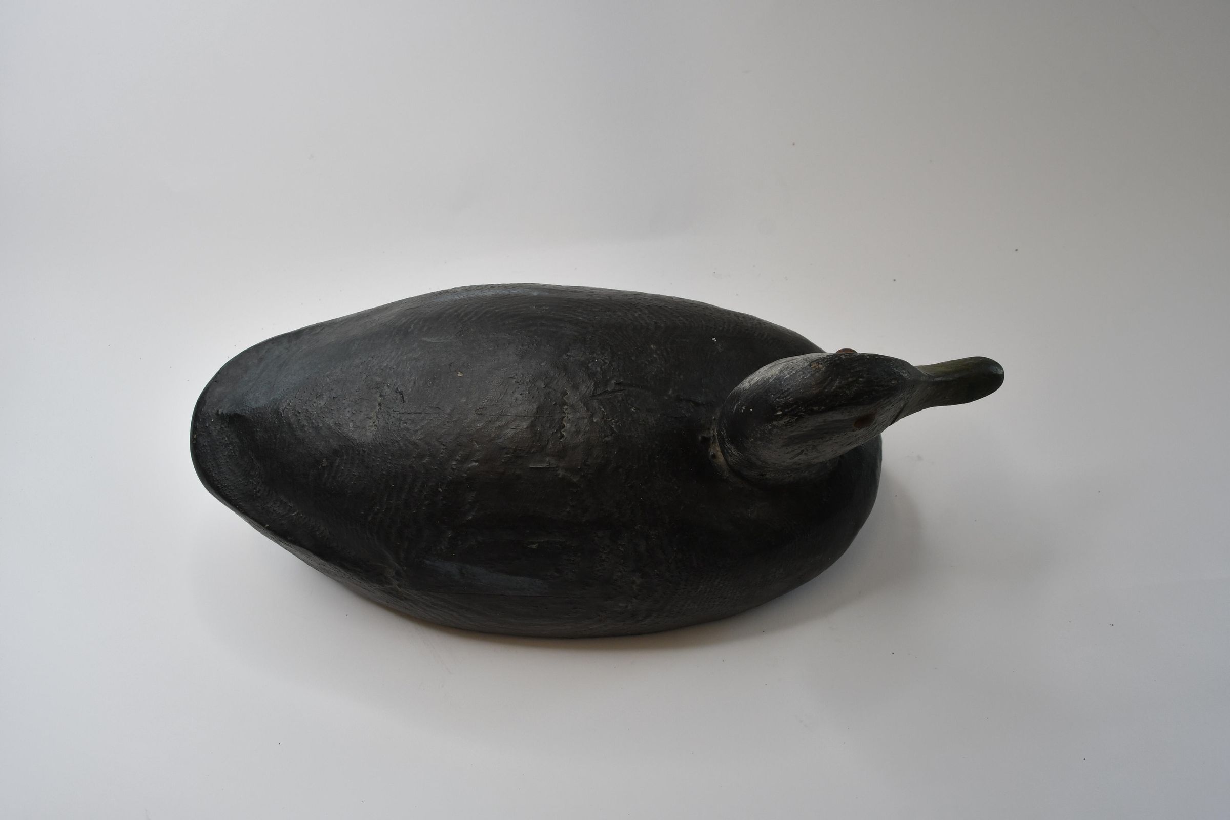 The American Black Duck has a wide range in the United States, and they are closely related to the Mallard. Jack Rider of Port Clinton, Ohio carved decoys in the mid-twentieth century. A black duck decoy like this one would have the body carved from one piece of wood, and the head carved separately and attached later because the grain lines on the wood would cause a chipped bill if the bird was made from a single section.Location