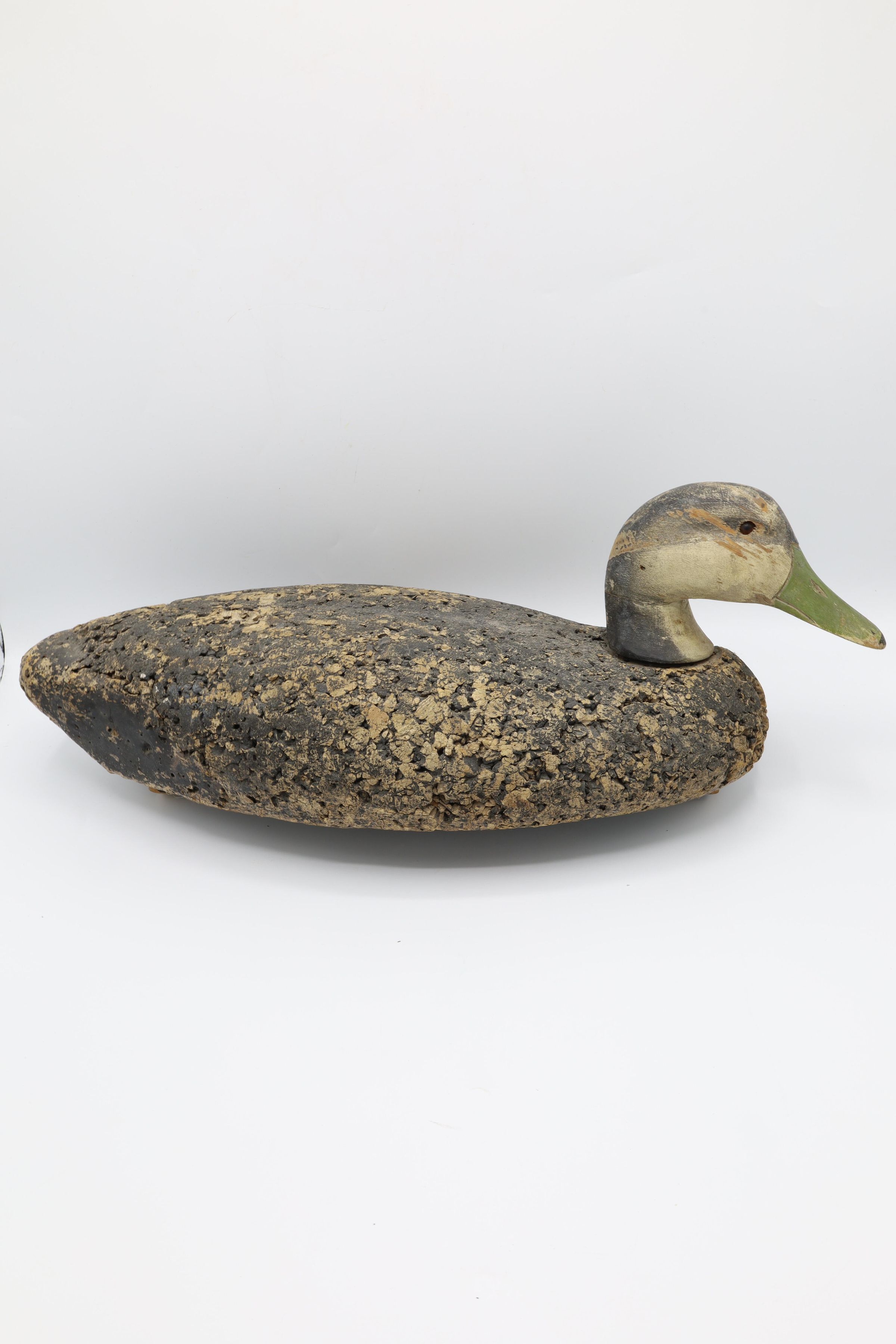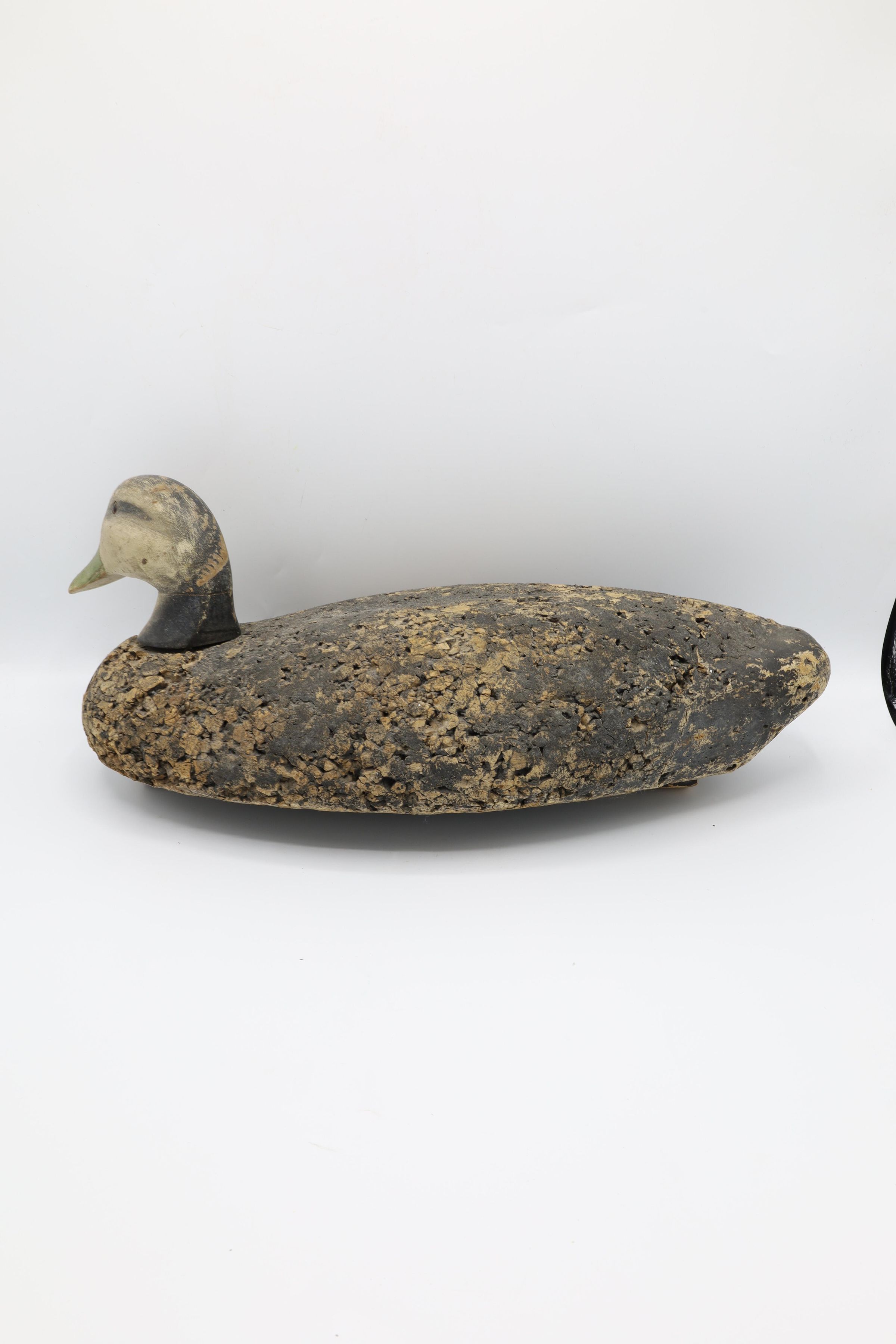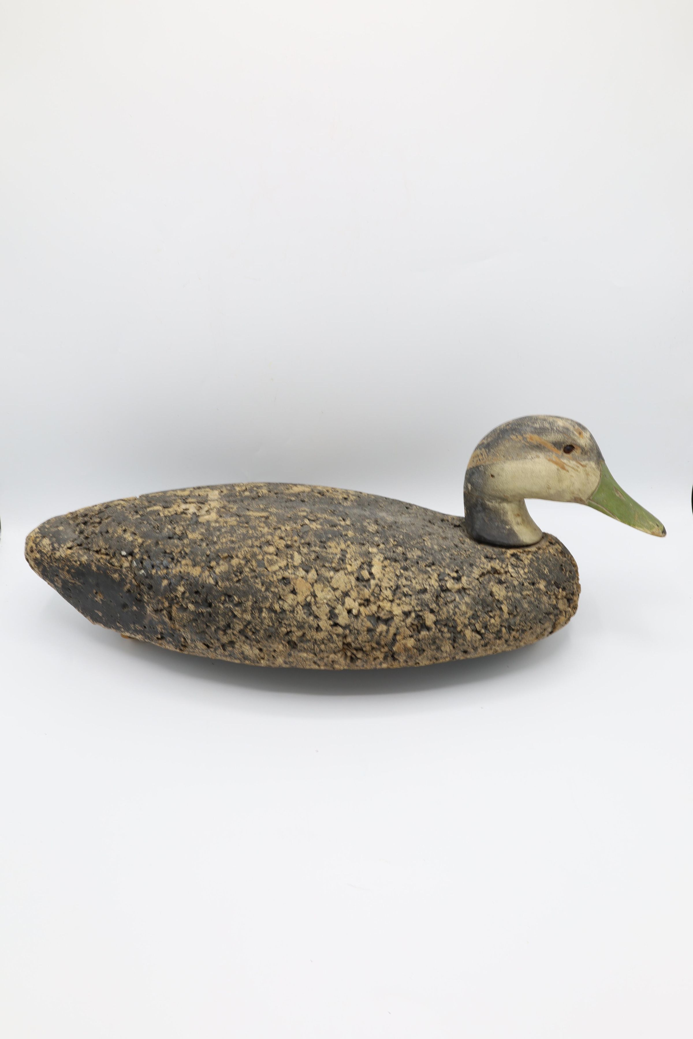 This American Black Duck decoy from the 1960s is traced to the LL Bean decoys of the time. LL Bean began selling decoys after the founder went duck hunting with George Soule. Unimpressed with the quality of the decoys Leon Bean was using that day, Soule convinced Bean to use his. As a result, Bean added the cork decoys to his 1941 catalog.