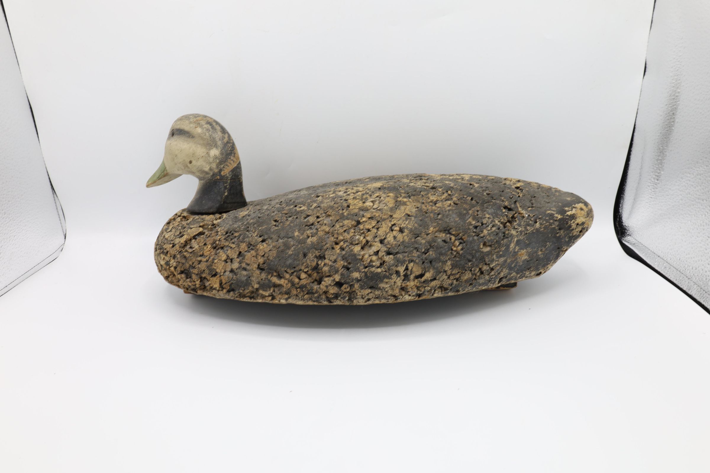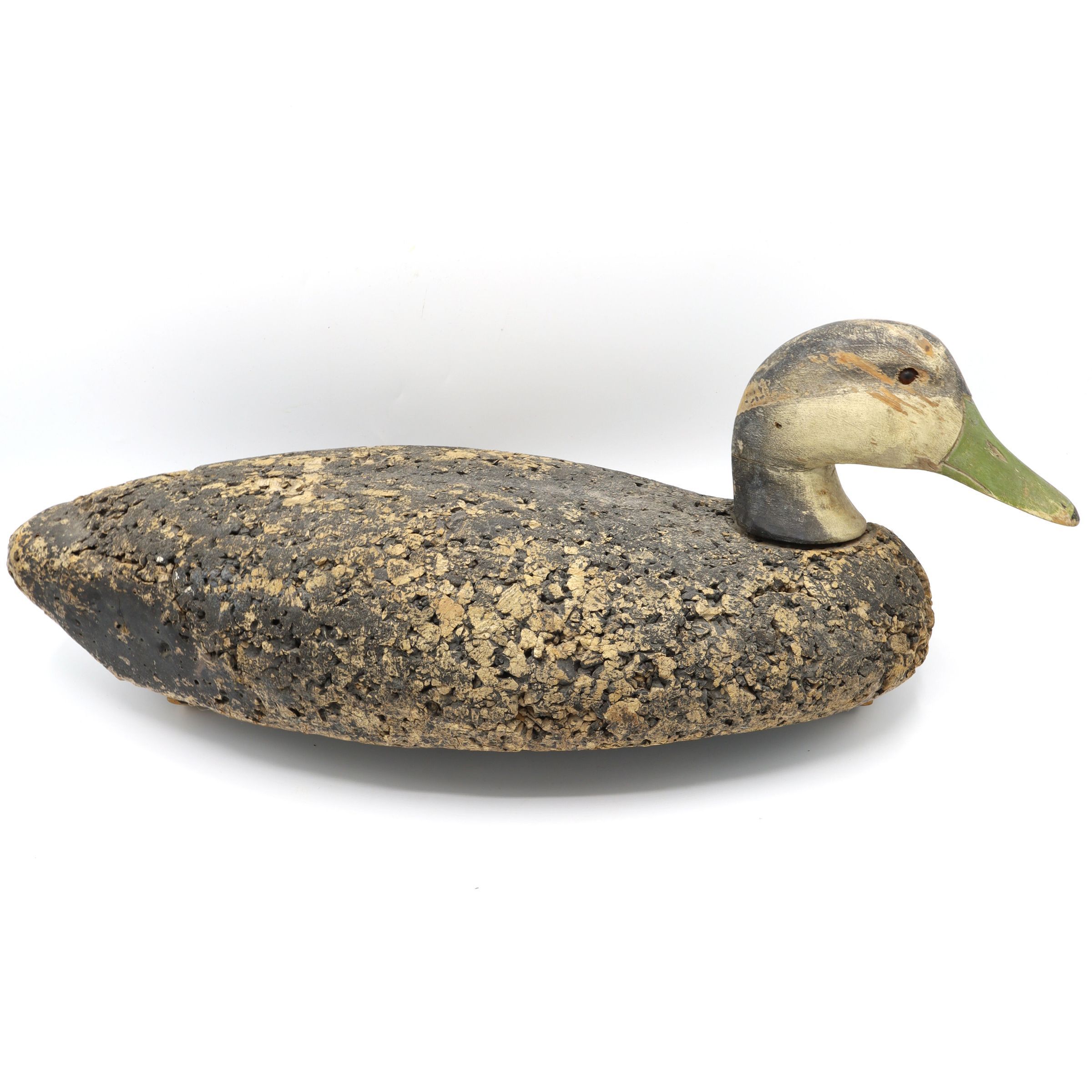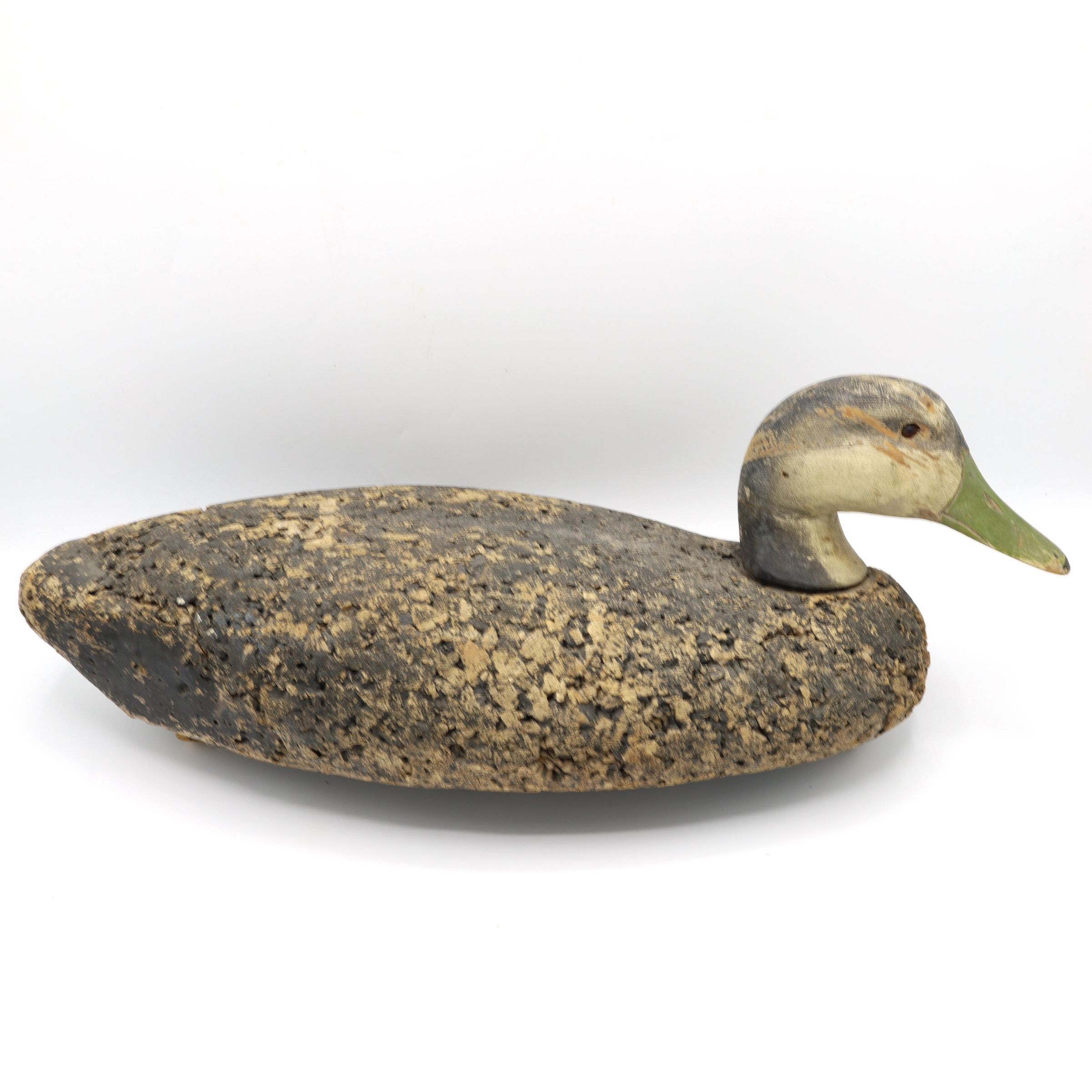 This American Black Duck decoy from the 1960s is traced to the LL Bean decoys of the time. LL Bean began selling decoys after the founder went duck hunting with George Soule. Unimpressed with the quality of the decoys Leon Bean was using that day, Soule convinced Bean to use his. As a result, Bean added the cork decoys to his 1941 catalog.