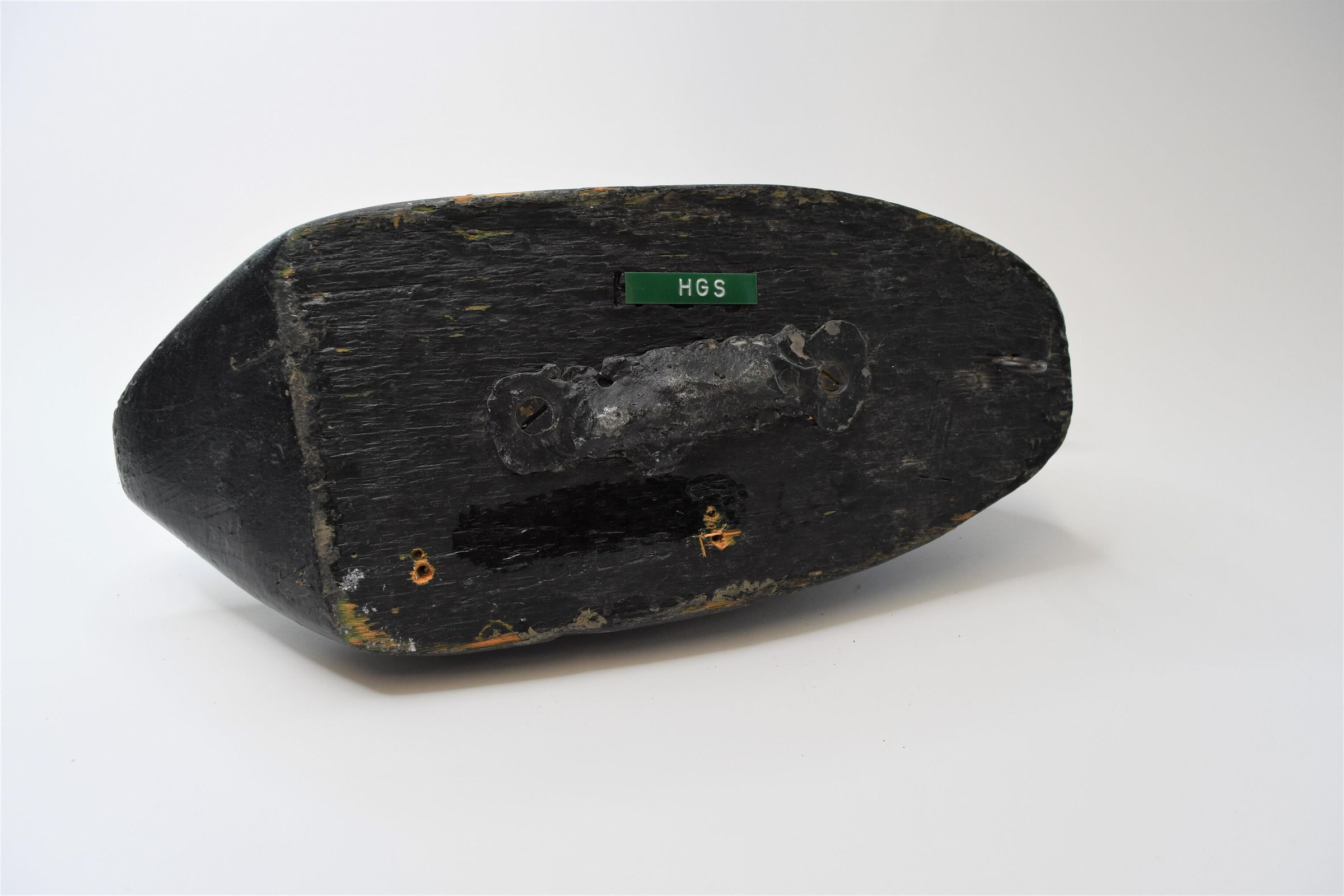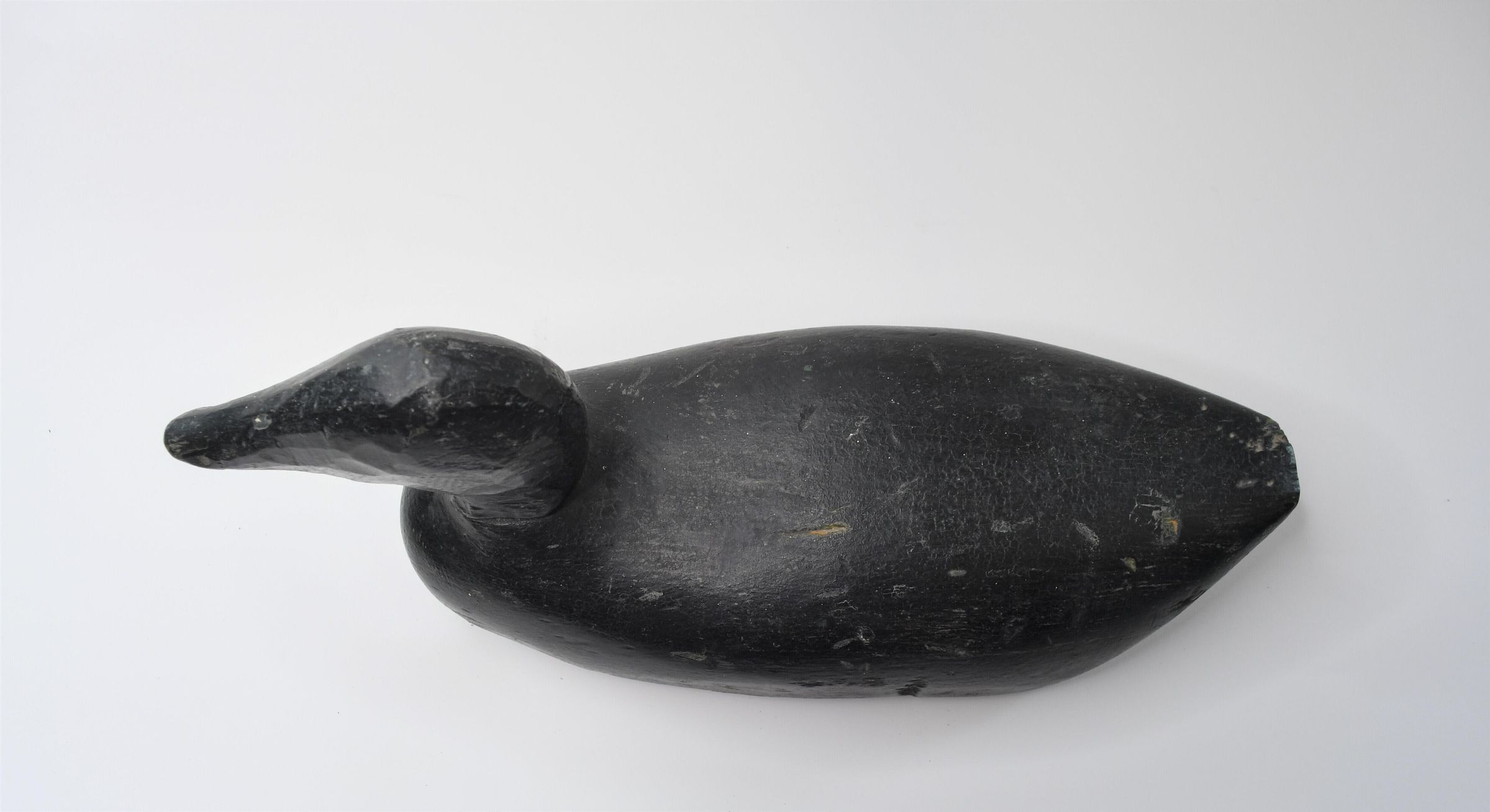 This stylized decoy doesn't give many hints as to the species it is supposed to represent, but a close look at the bill reveals the distinctive sloping bill and forehead of a Canvasback. These ducks will dive for plant tubers in lakes and ponds.Location