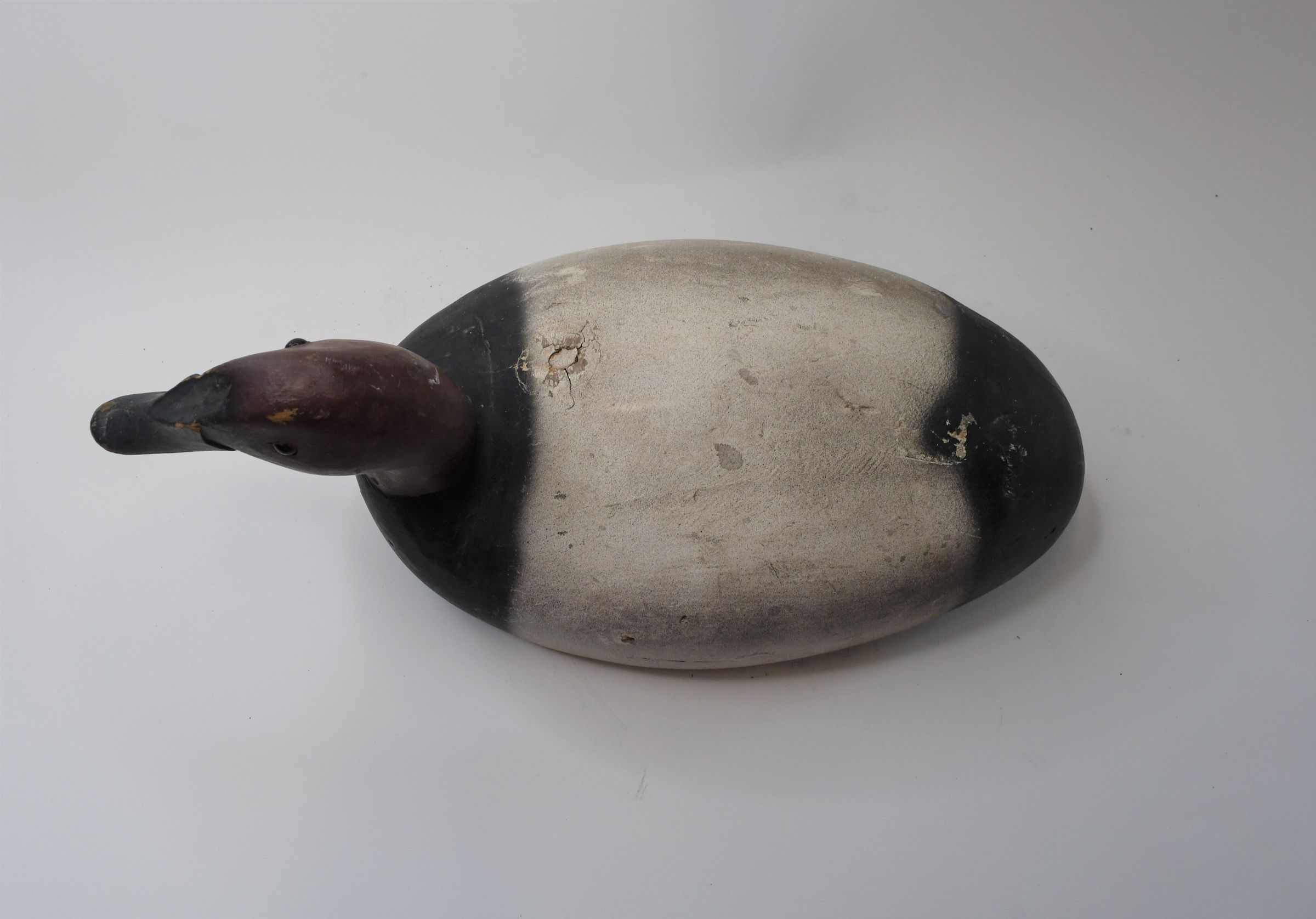 Produced by an unknown carver, this Canvasback decoy was used in the Sandusky Bay from the 1940s to the 1960s. The bold coloration of a Canvasback Duck has been stylized in the decoy's paint job, but it still would attract birds to the water it floated in.Location