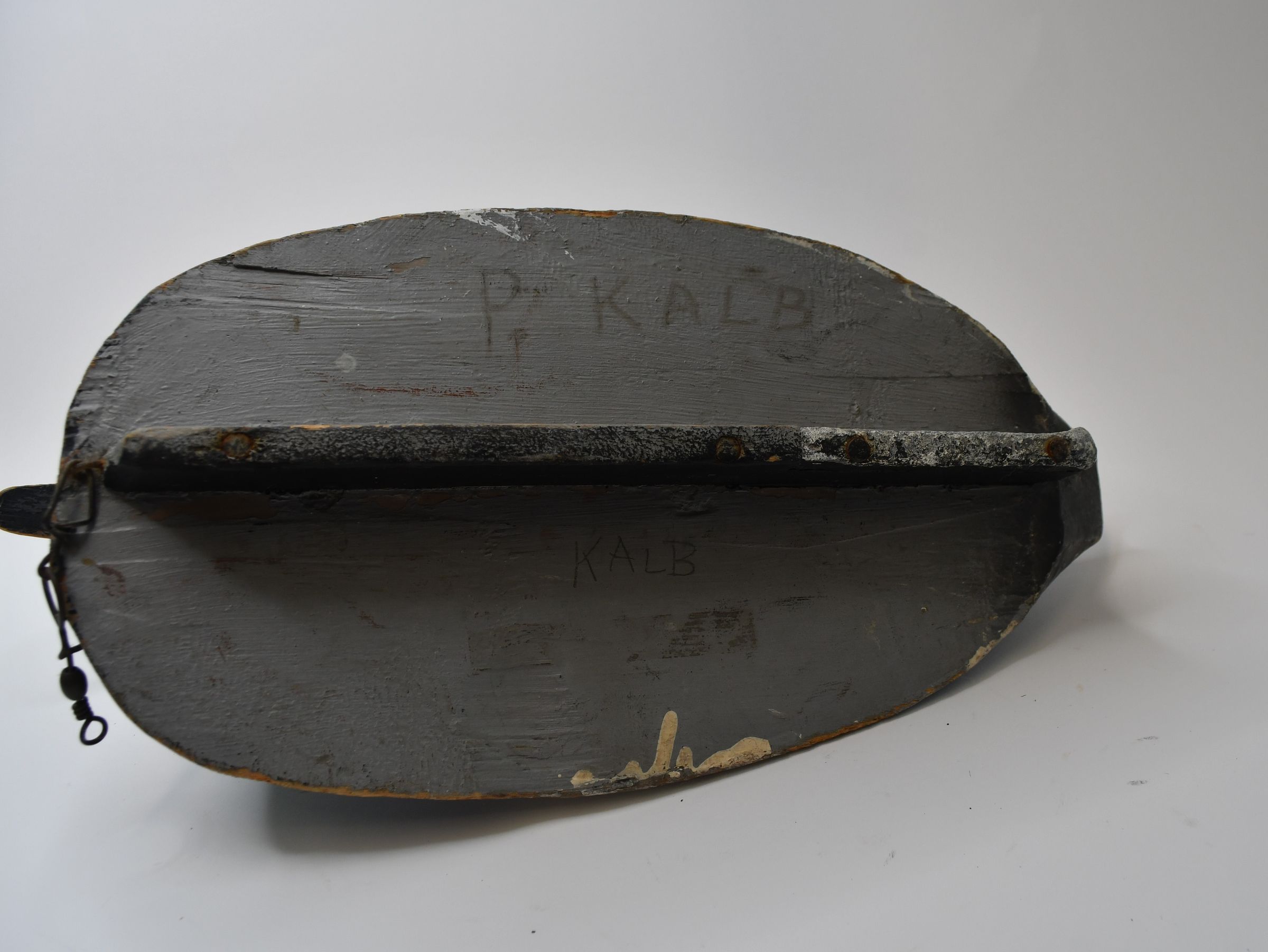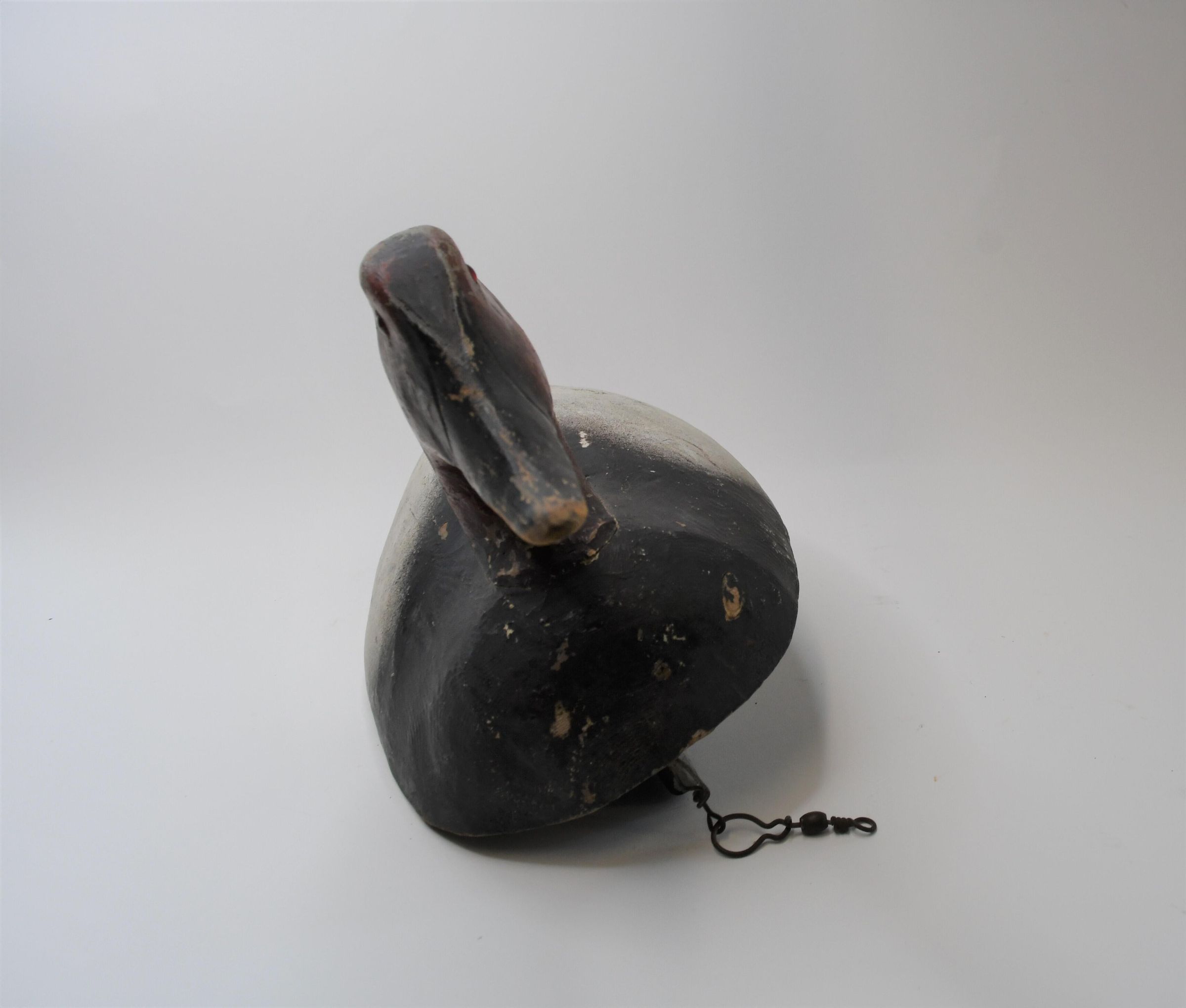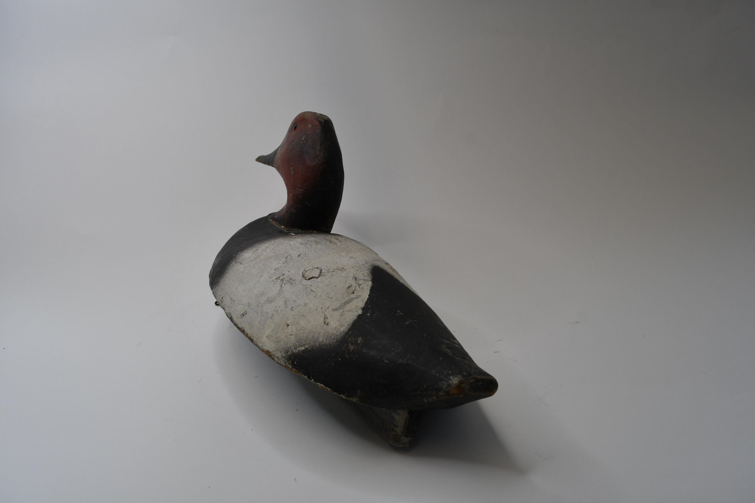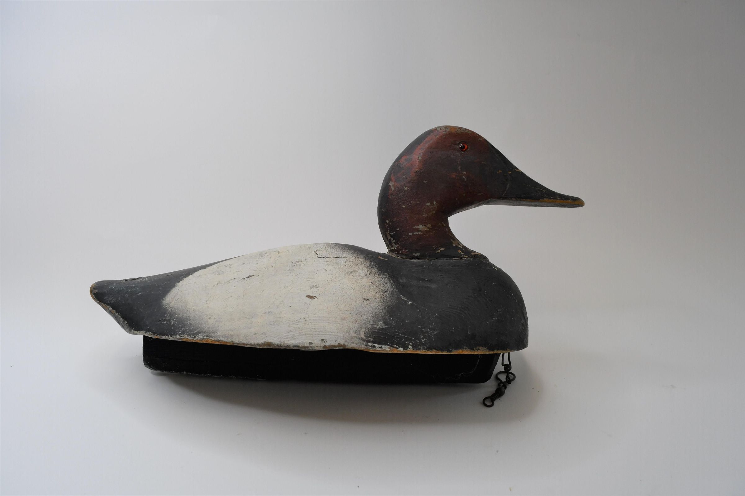 Attributed to the Wildfowler Decoy Company, which opened in Saybrook, Connecticut in 1939, this Canvasback has a pine body and glass eyes. The underside of the decoy shows the full-length keel and the swivel used to connect the decoy to a line of others when deployed in the water.Location