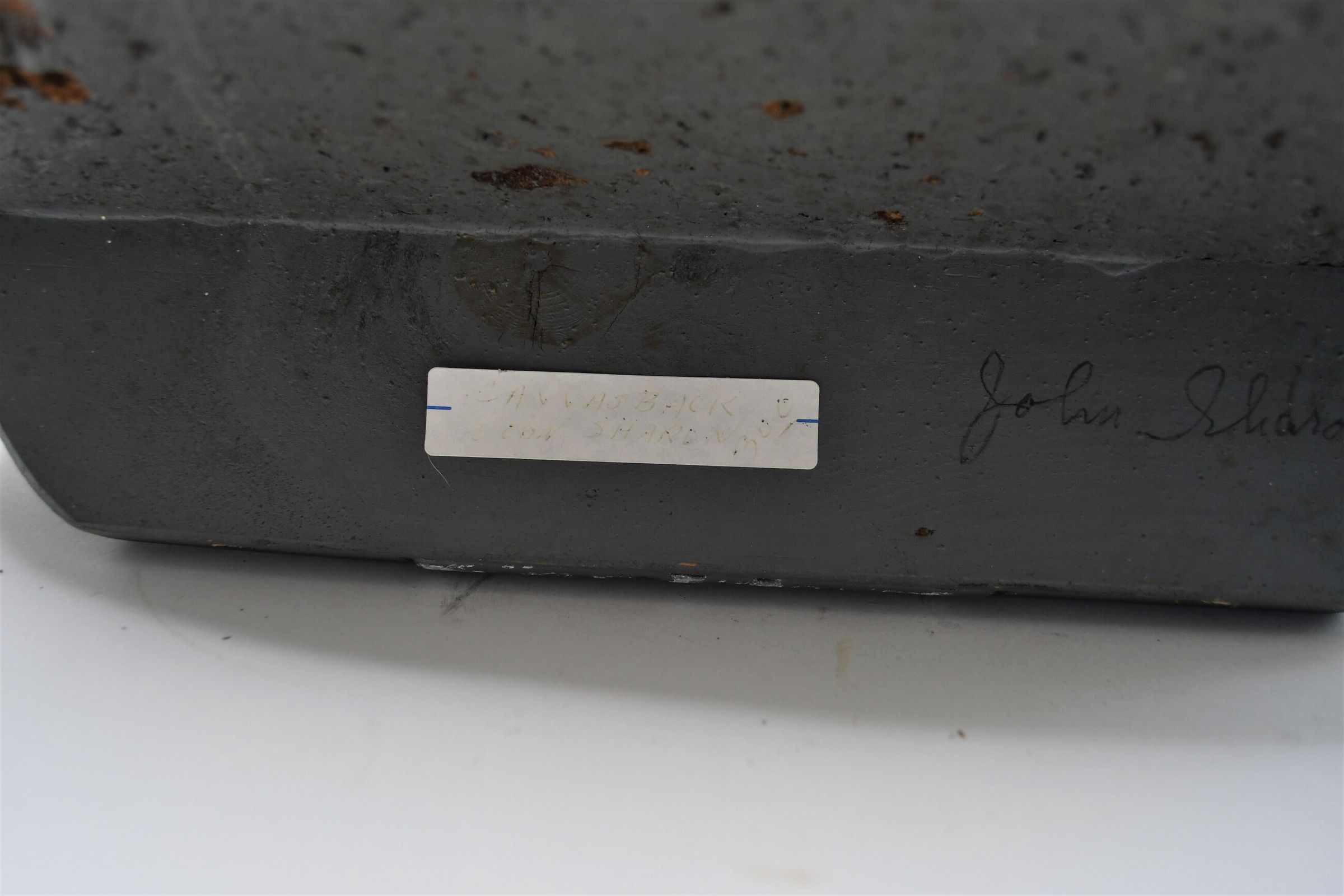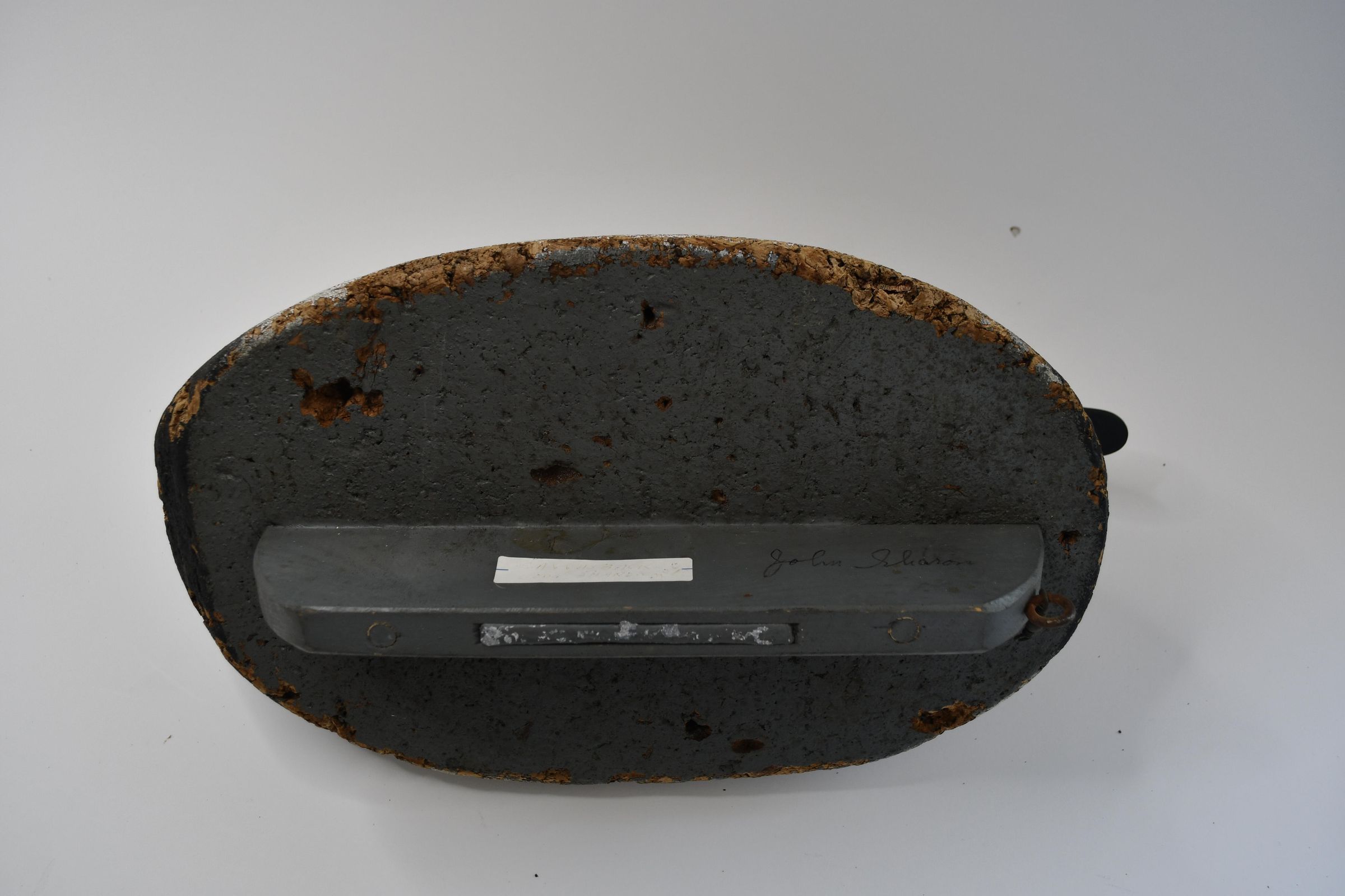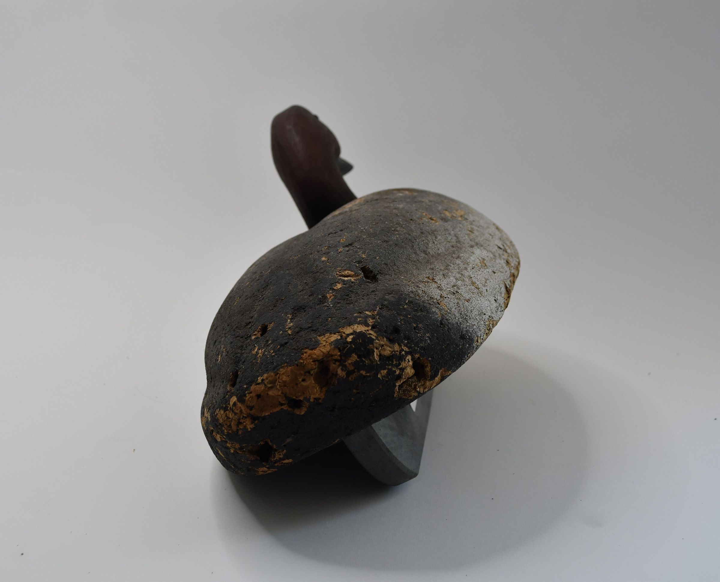 This Canvasback decoy's deep keel is signed by John Sharon, an influential waterfowl carver from Sandusky, Ohio. The cork bodied decoy dates from approximately 1945 to 1965, when John Sherman was actively creating decoys for himself and to sell.Location