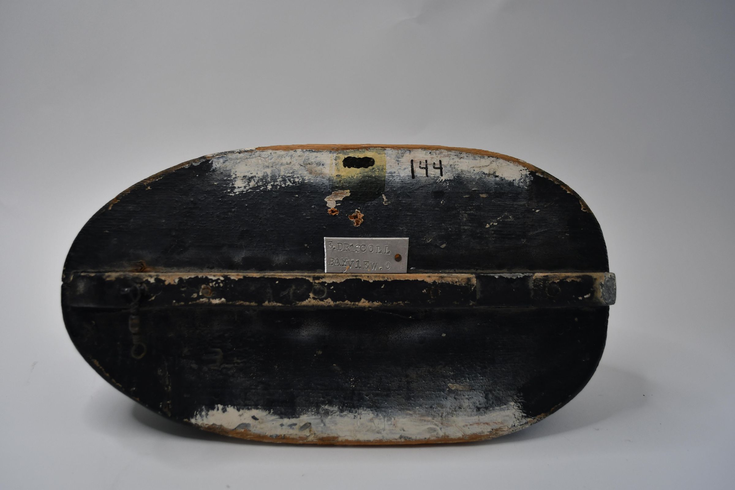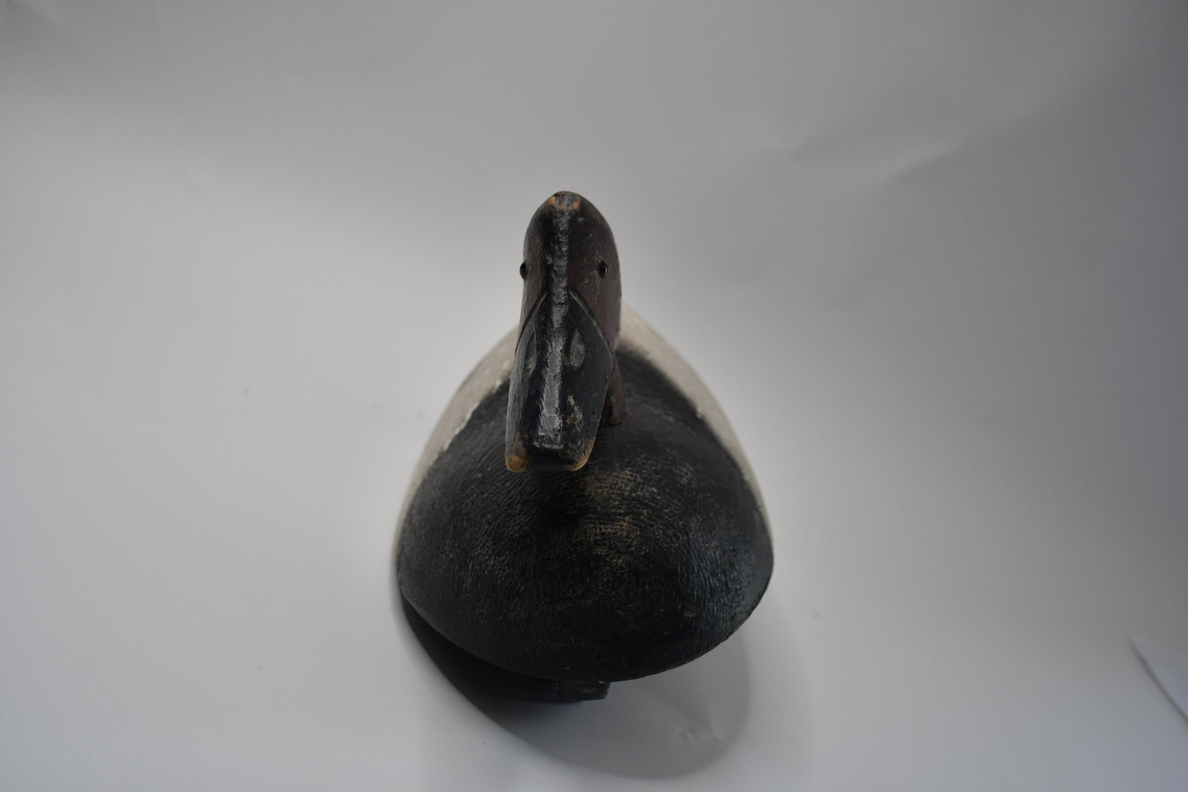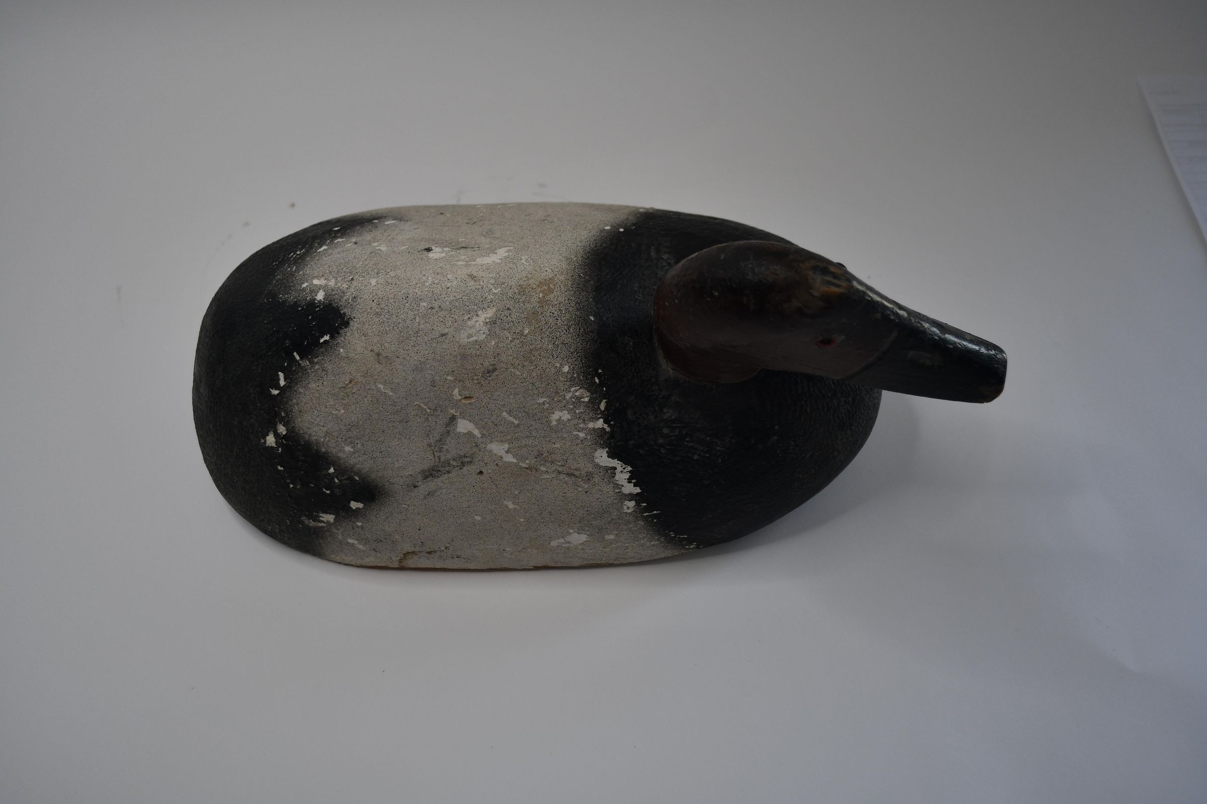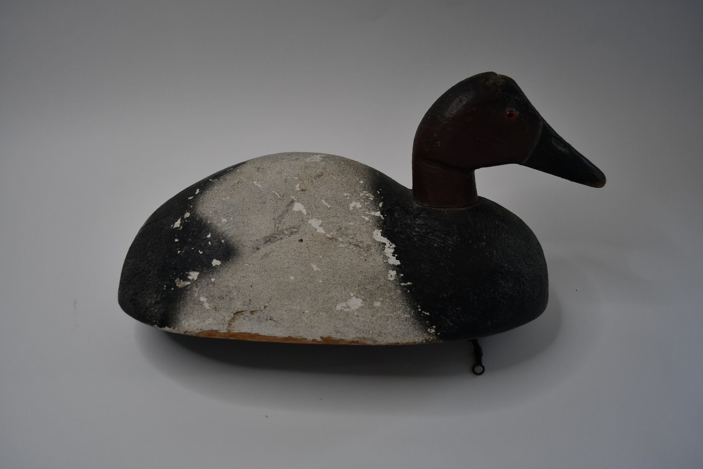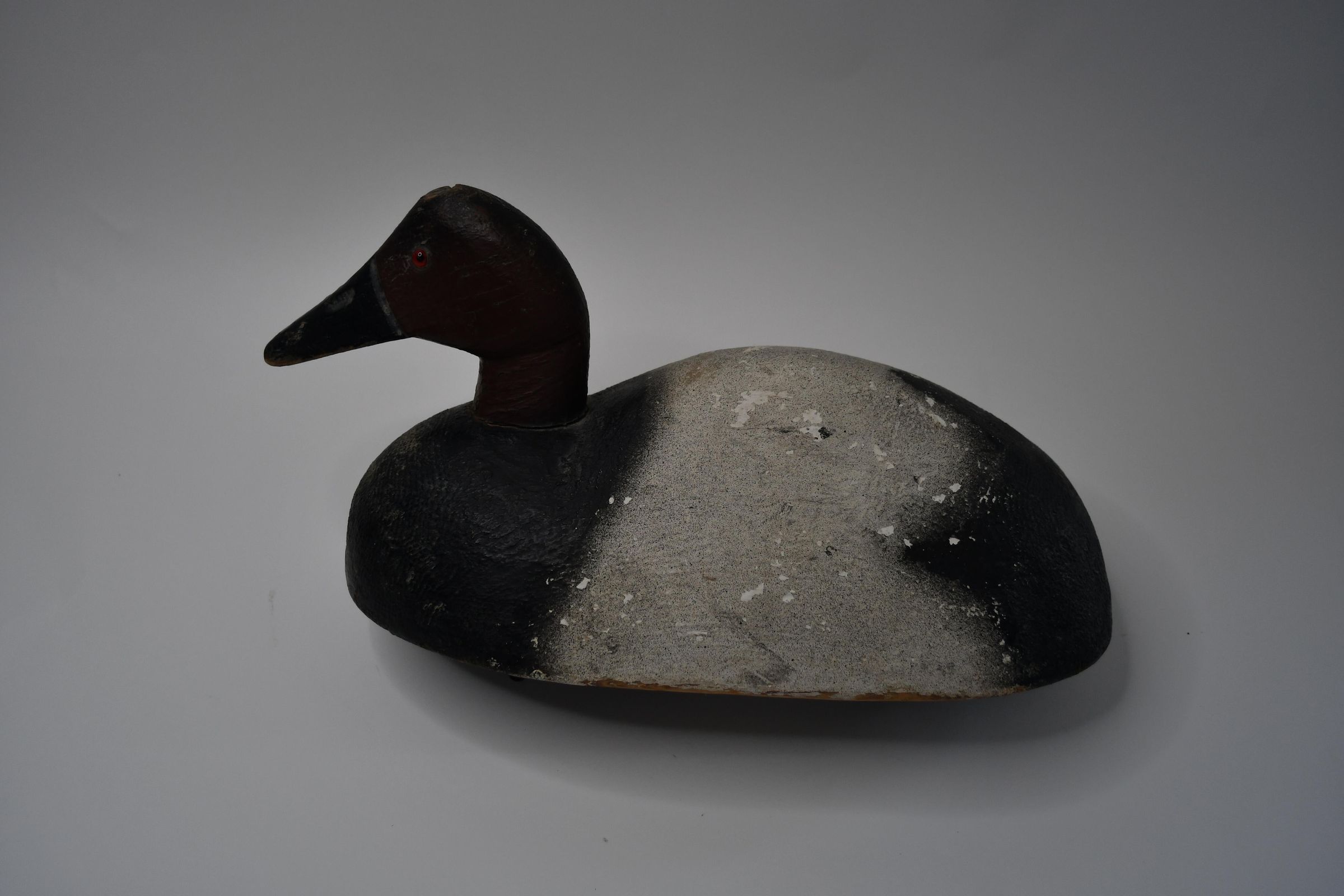 Toledo, Ohio carver Ed Driscoll created this decoy circa 1950. Made of cedar, it is painted to resemble a Canvasback drake, and includes the distinctive red eye of the breed. The decoy has been repainted.Location