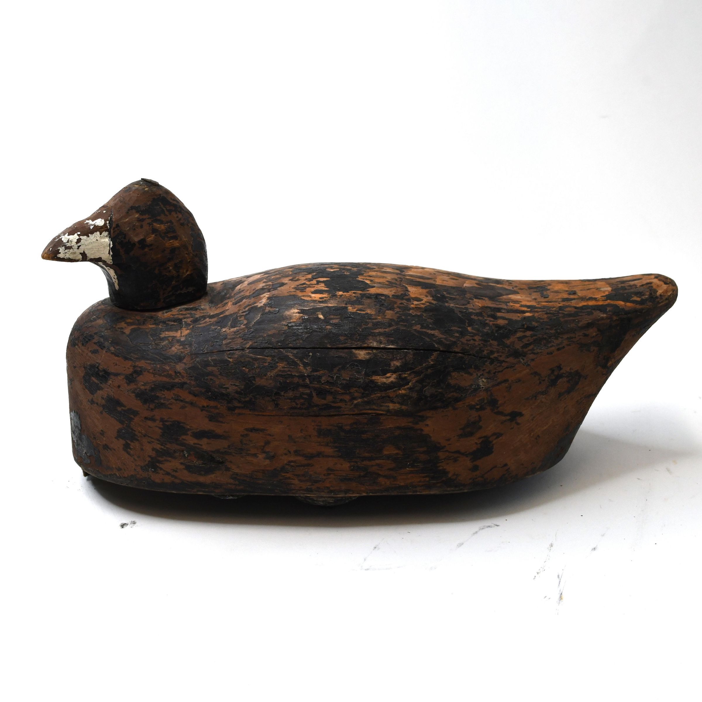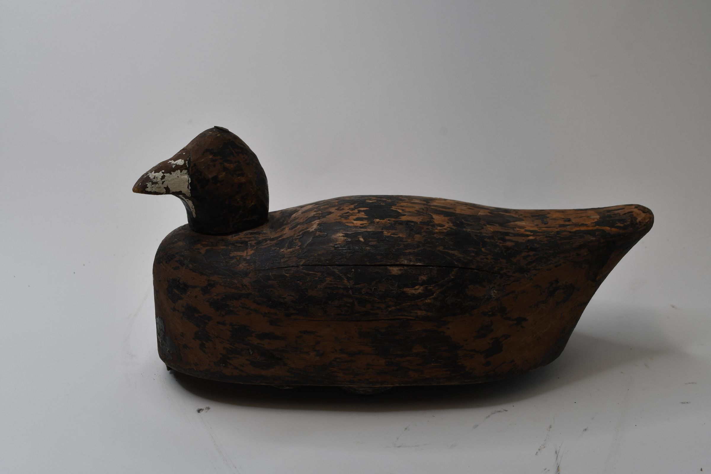 An unknown maker carved this Coot decoy in the 1920s from pine wood. Hunters would add Coot decoys to their decoy spread to add a note of realism to the display, all to increase the wild ducks' impression that this would be a safe place to land.Location